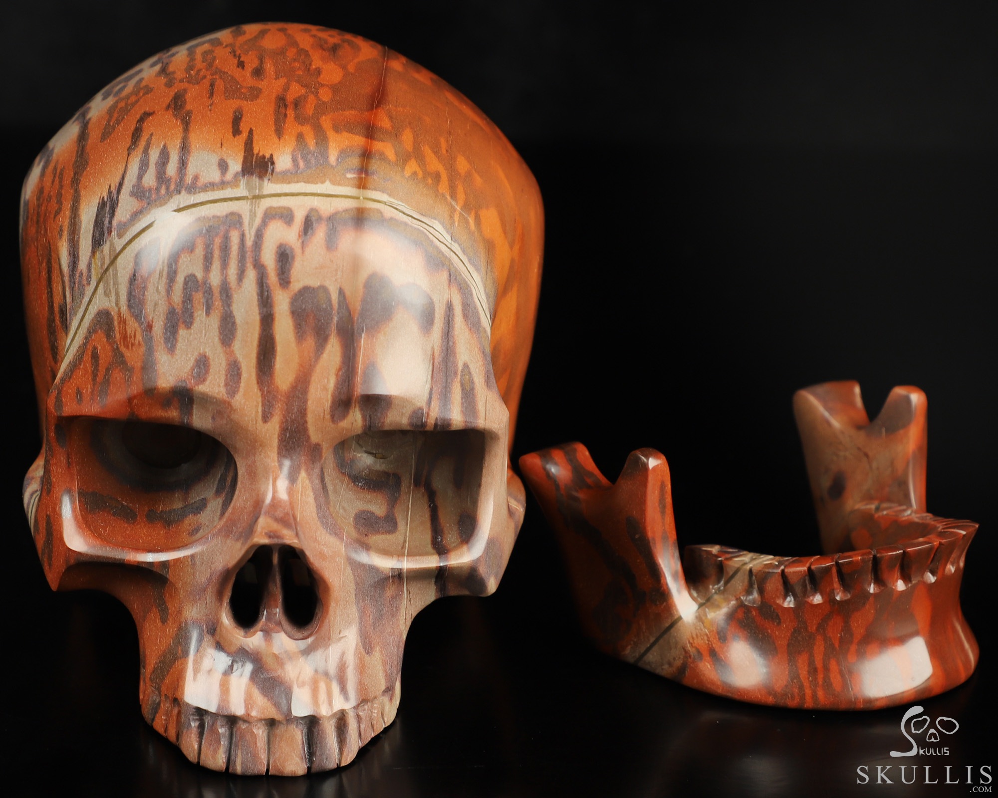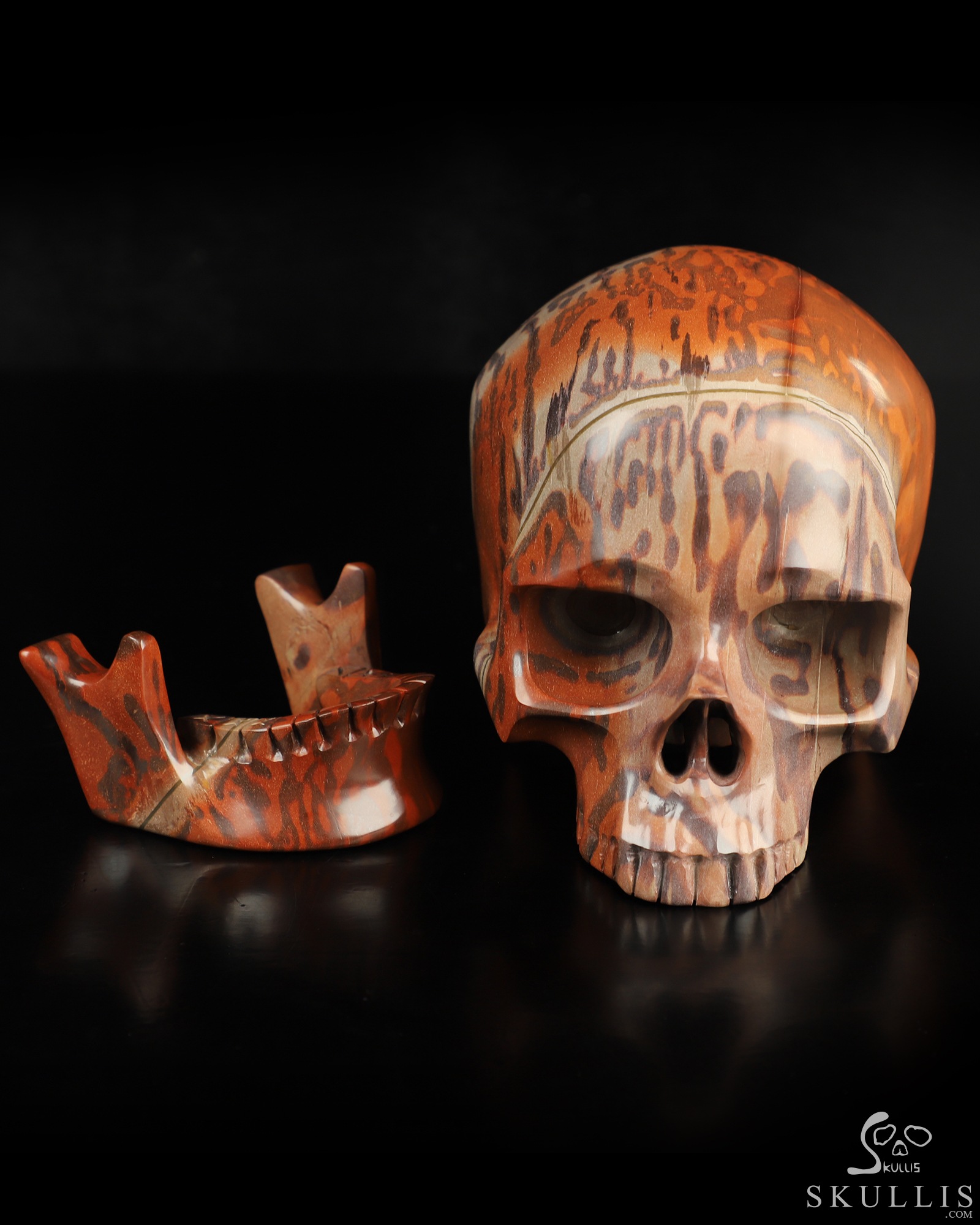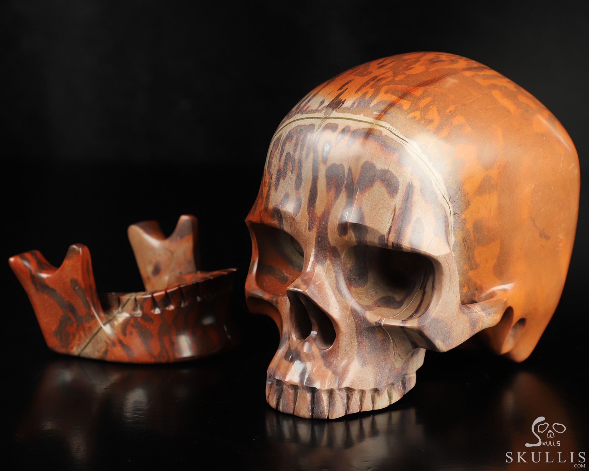 5.9" Australian Print Stone Hand Carved Crystal Detachable Skull Sculpture, Crystal Healing