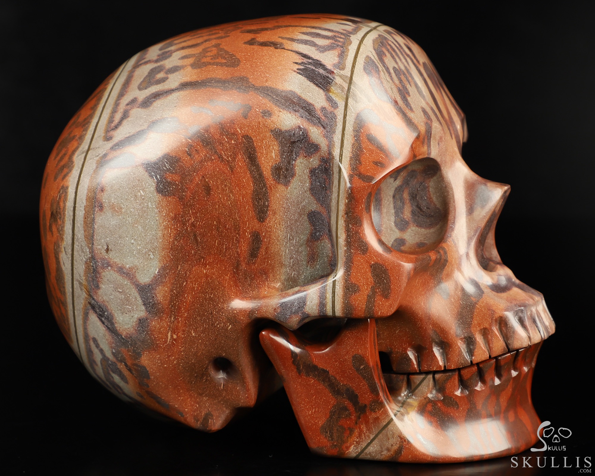 Huge 5.4" Australian Print Stone Carved Crystal Skull,Super Realistic, Crystal Healing