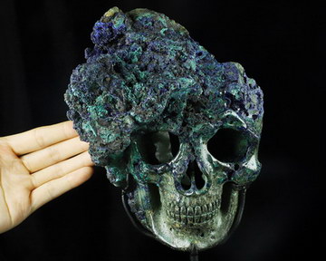 You are looking at a Azurite & Malachite skull. The skull is 5.9 inches long from front to back.