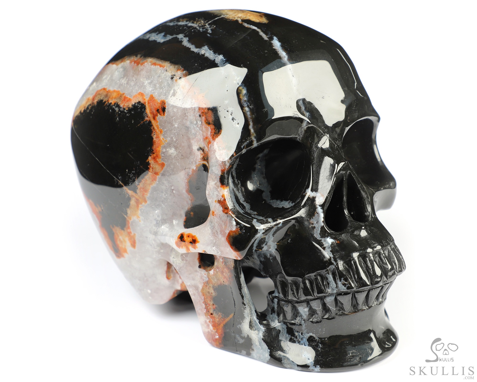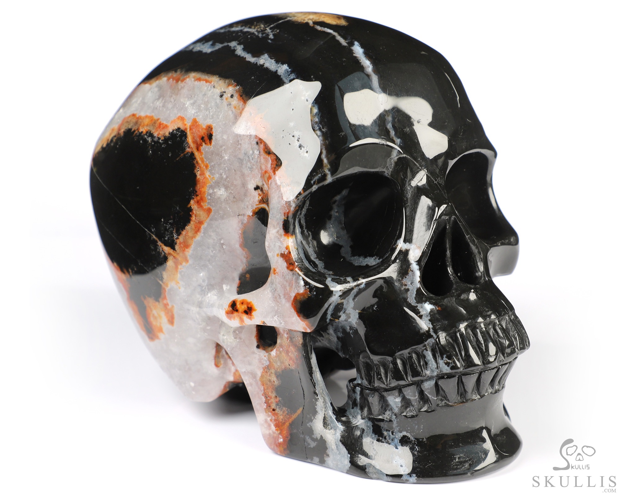 GEMSTONE 5.0" Black Zebra Agate Carved Crystal Skull,Super Realistic, Crystal Healing