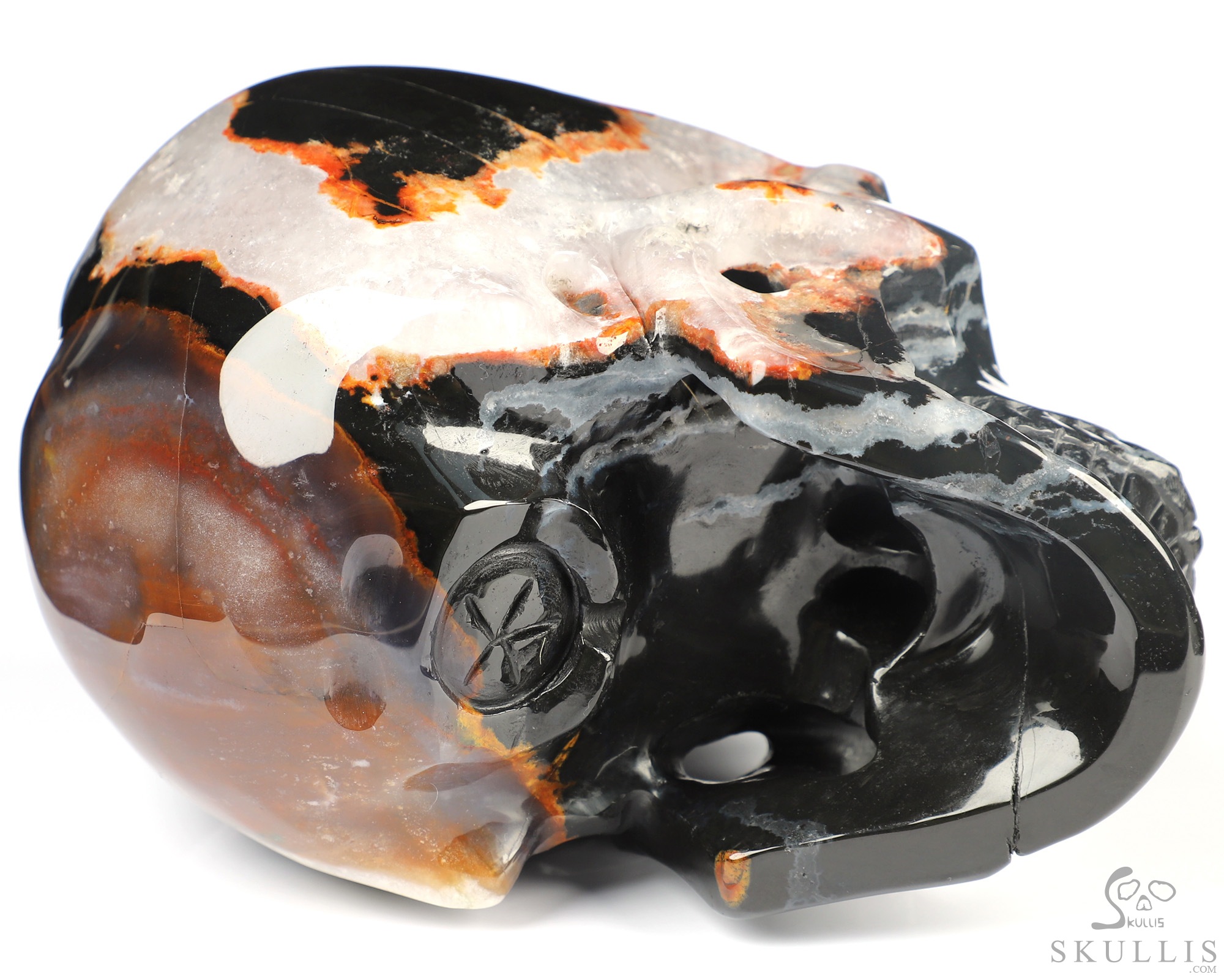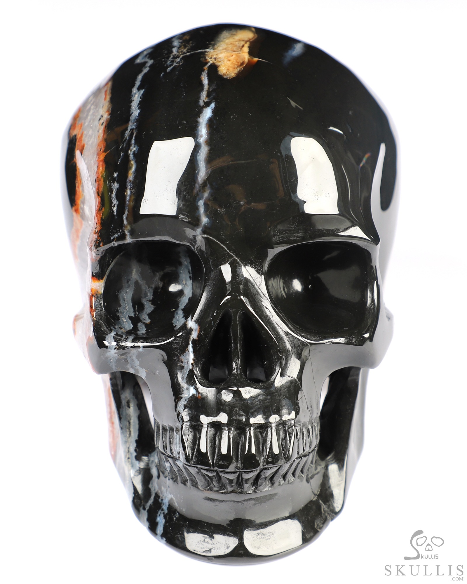 5.9" Black Zebra Agate Hand Carved Crystal Skull, Super Realistic, Crystal Healing