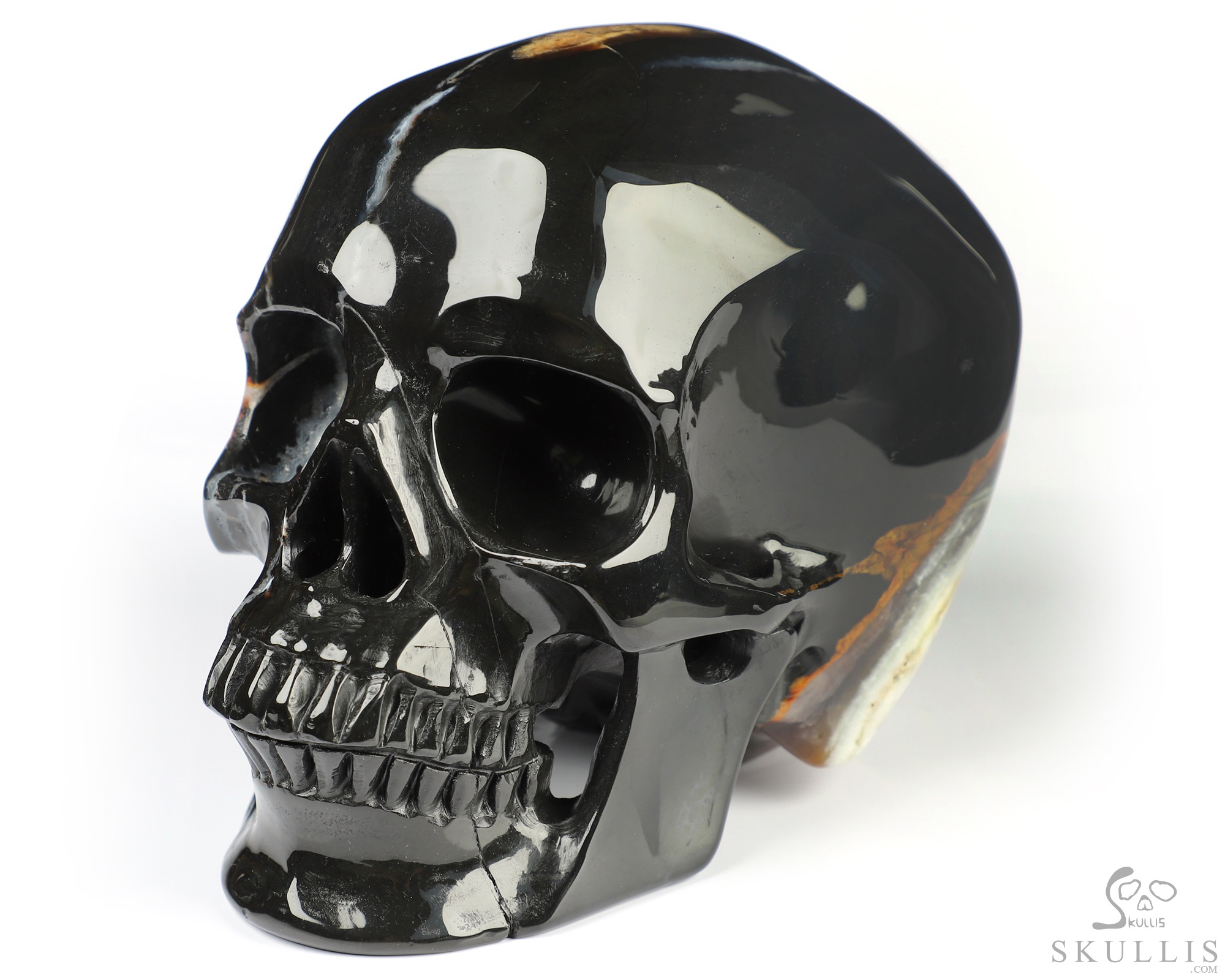 HUGE 4.7" Black Zebra Agate Carved Crystal Skull, Super Realistic