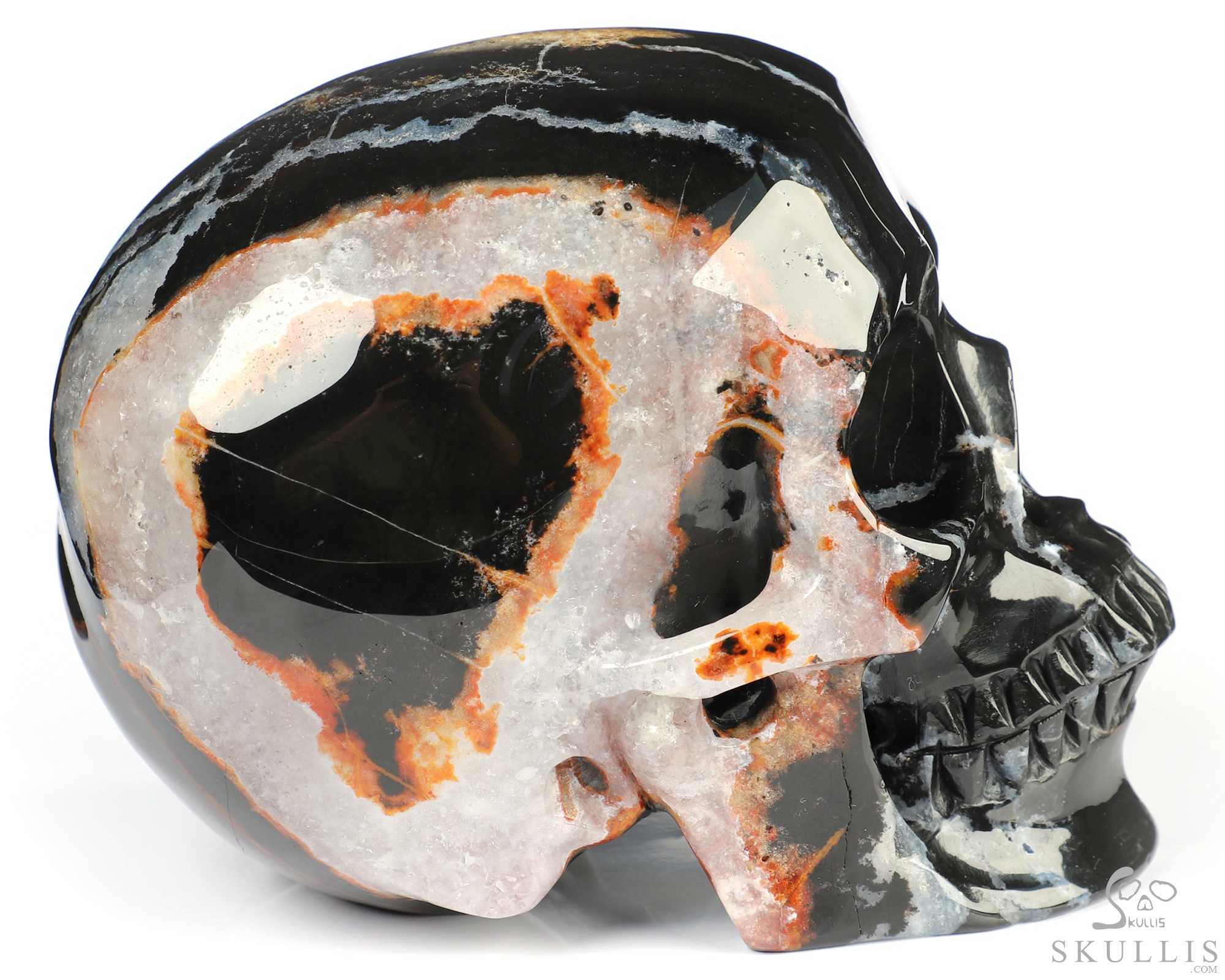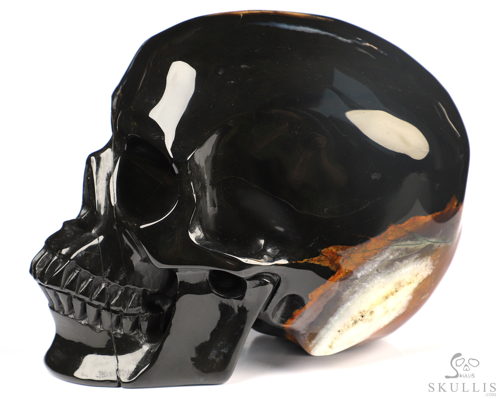 RARE GEODE LIFESIZED 6.8" Black Zebra Agate Carved Crystal Skull Super Realistic