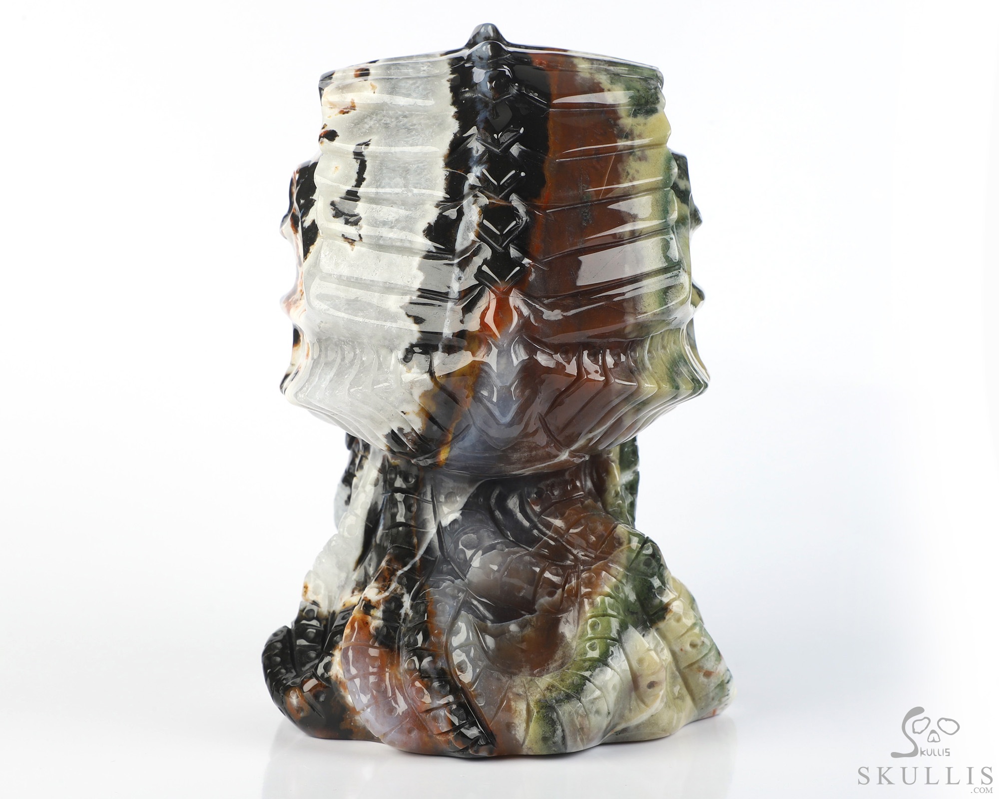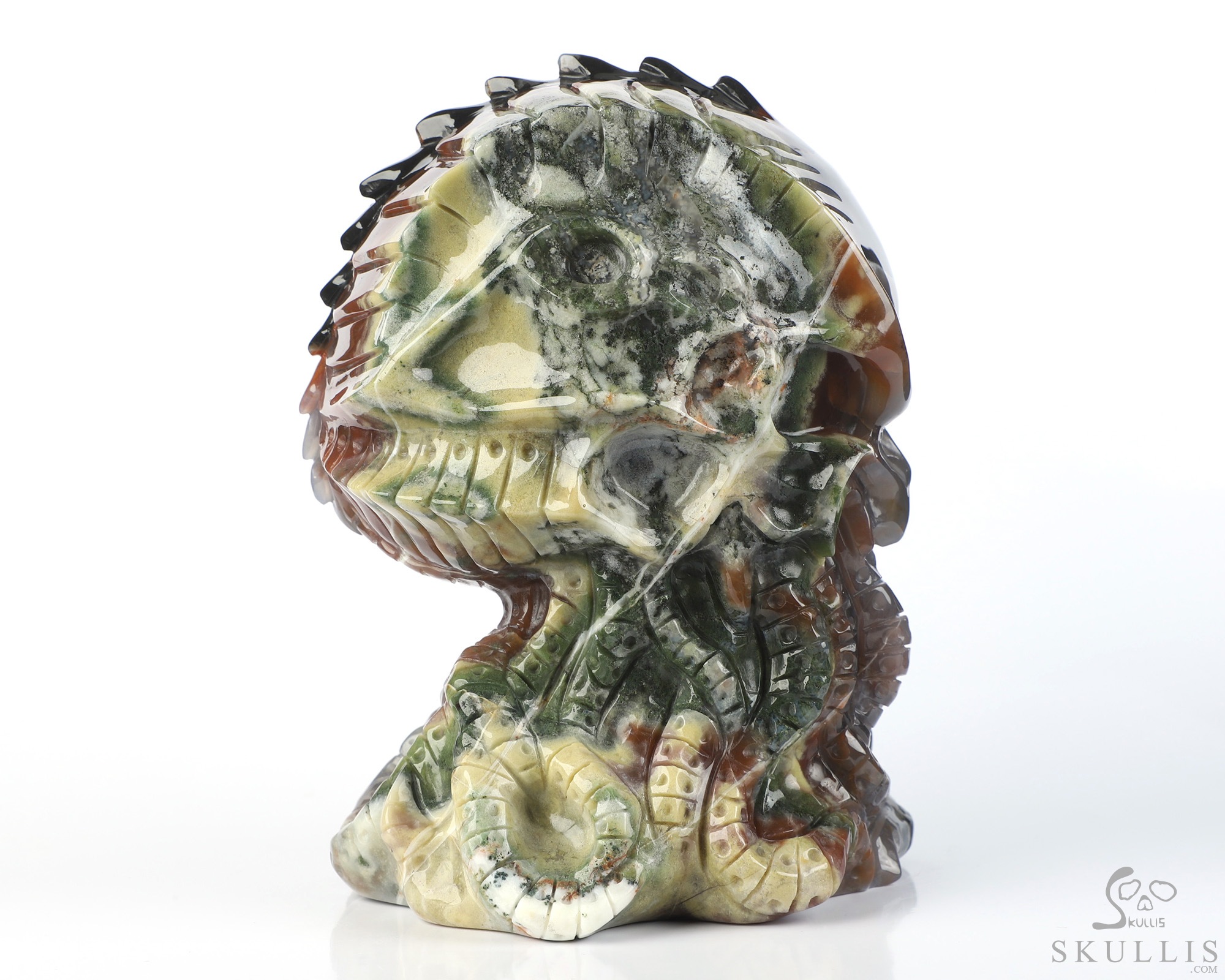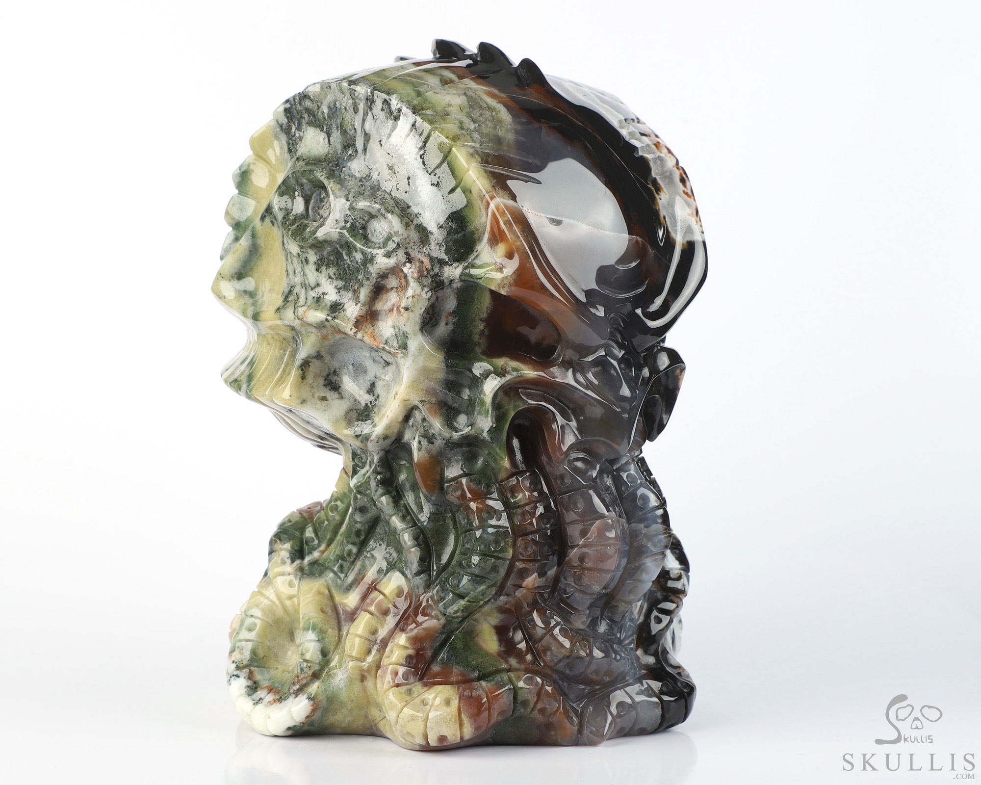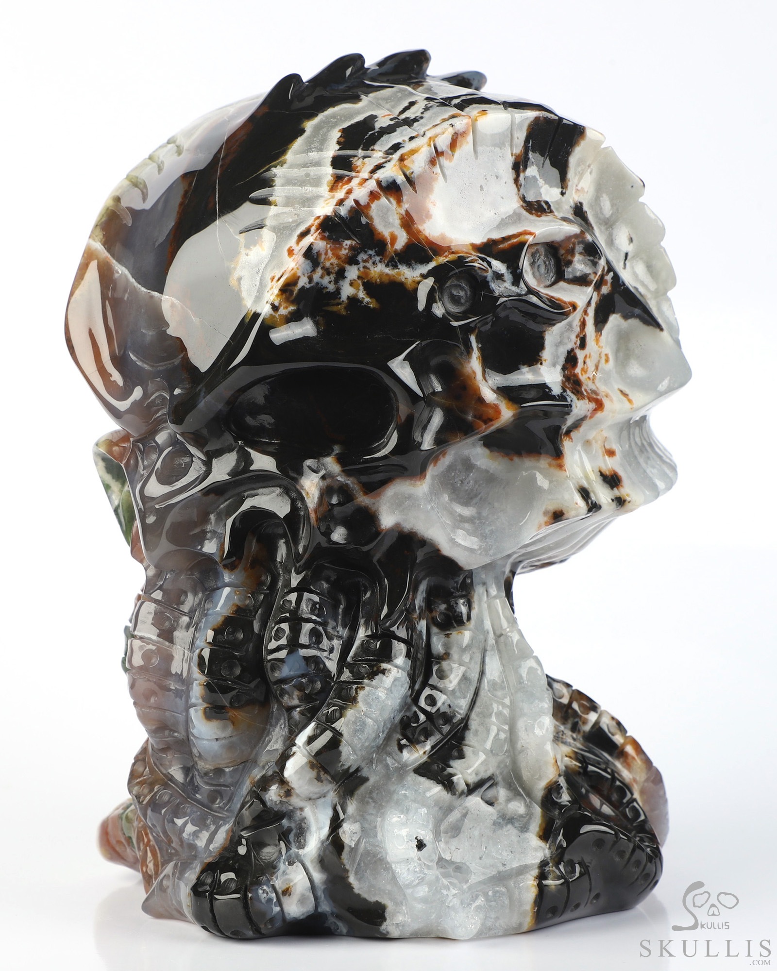 5.9" Black Zebra Agate Hand Carved Crystal Skull and Octopus Sculpture, Crystal Healing
