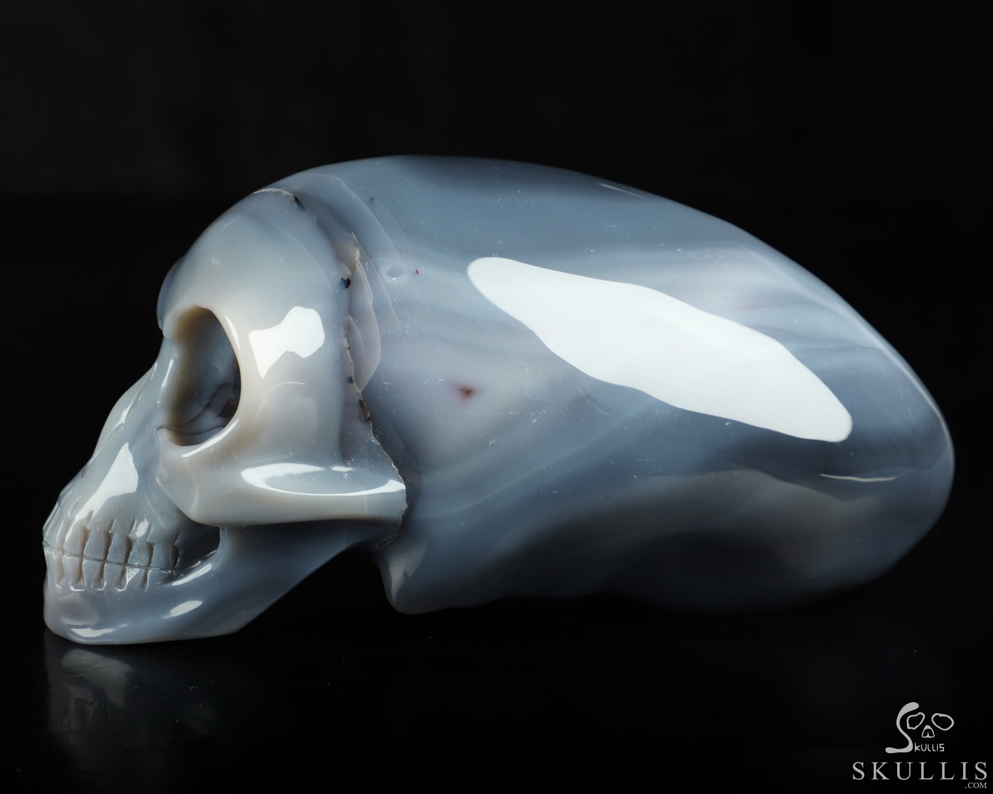 You are looking at a Gray & White Agate skull. The skull is 5.9 inches from front to back.