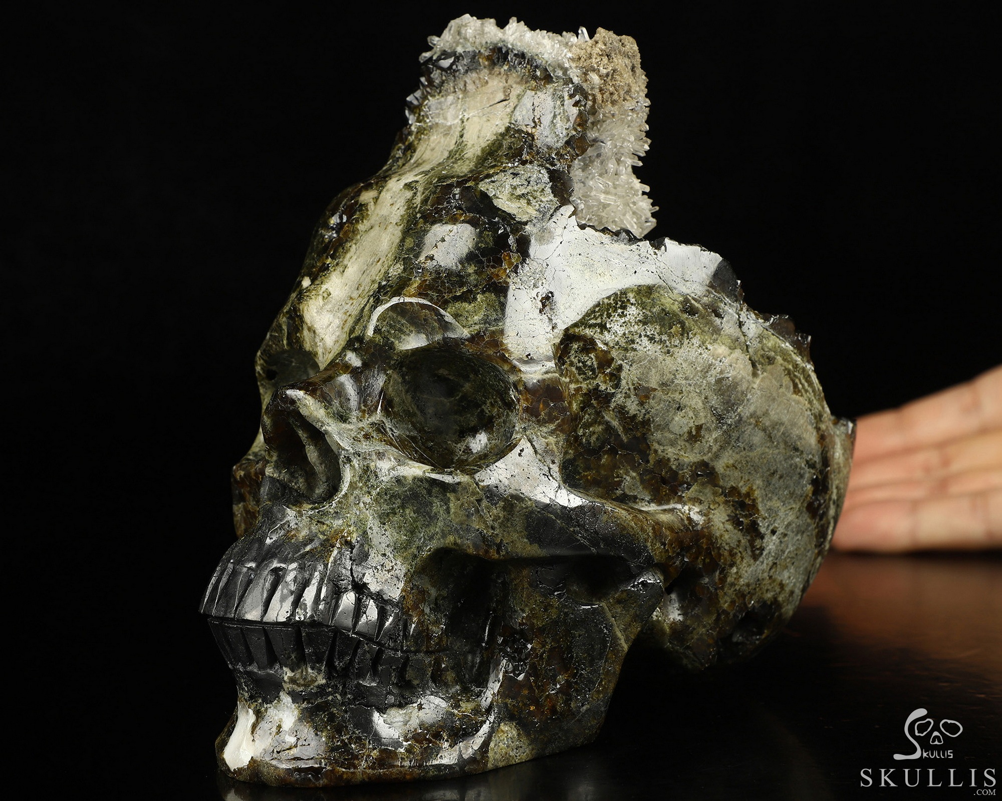 23.7LB TITAN GEODE 10.3" Green Tourmaline Quartz Carved Crystal Skull, Realistic