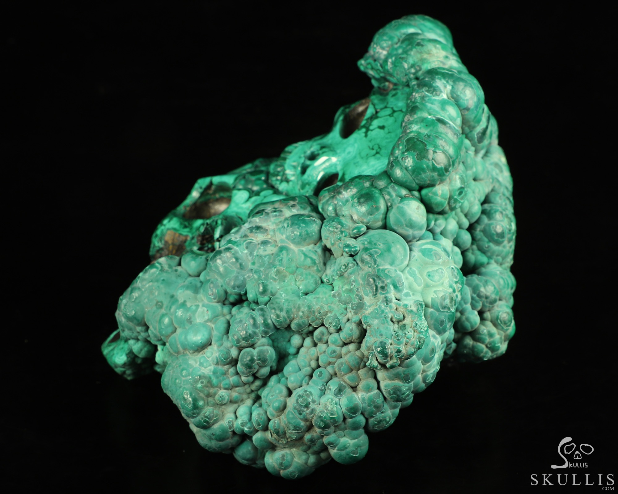 Amazing Lifesized 8.7" Malachite Hand Carved Crystal Skull, Super Realistic, Crystal Healing