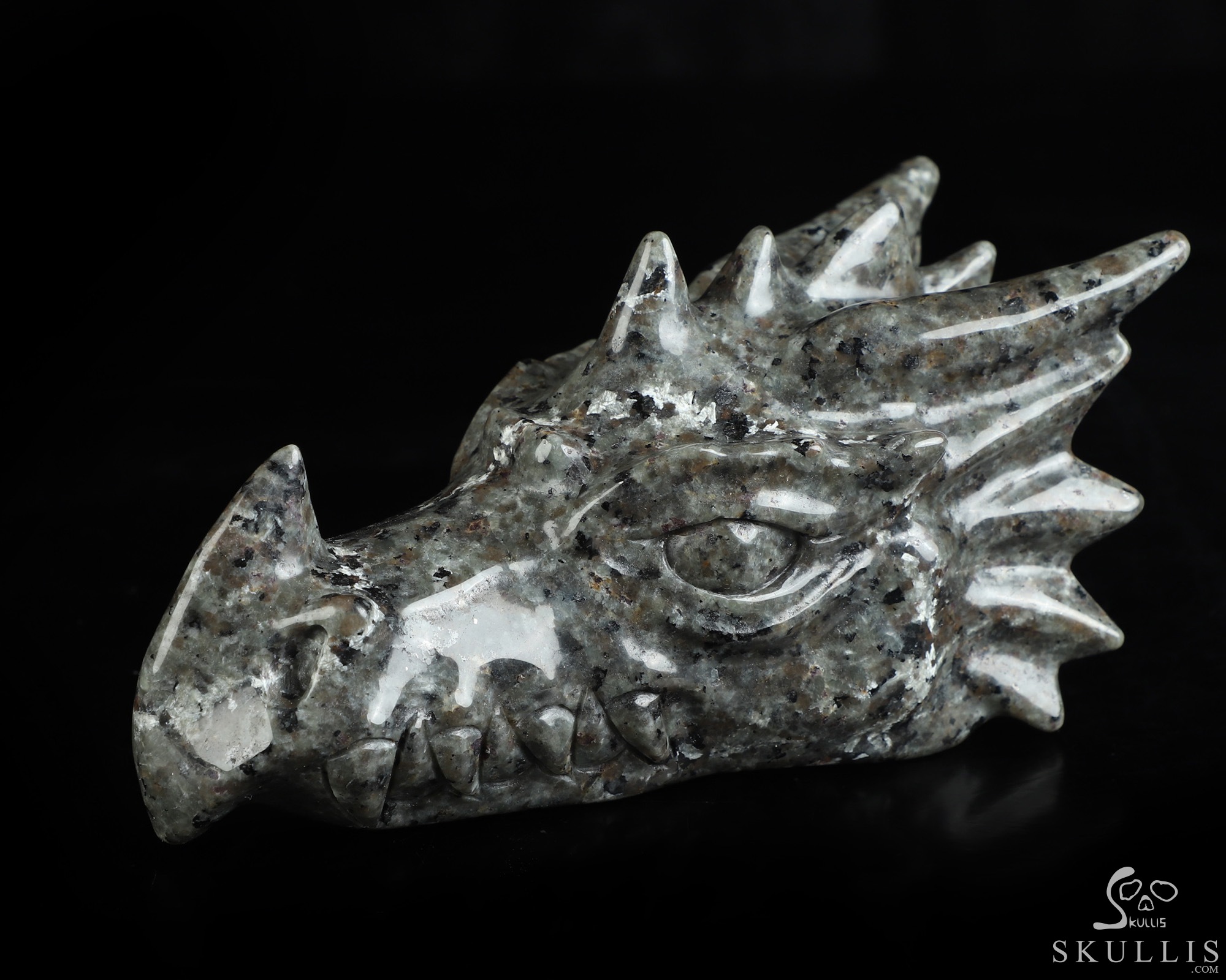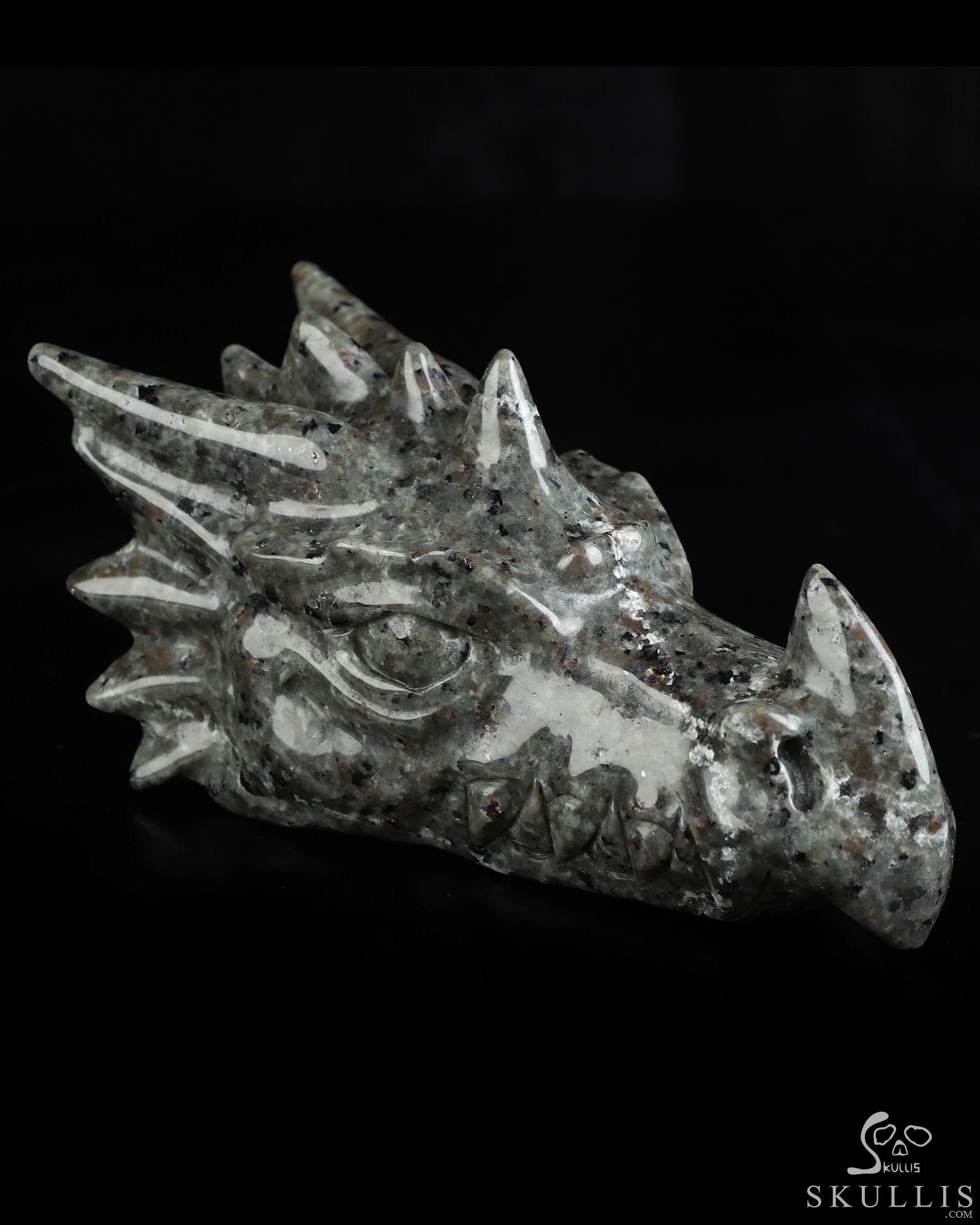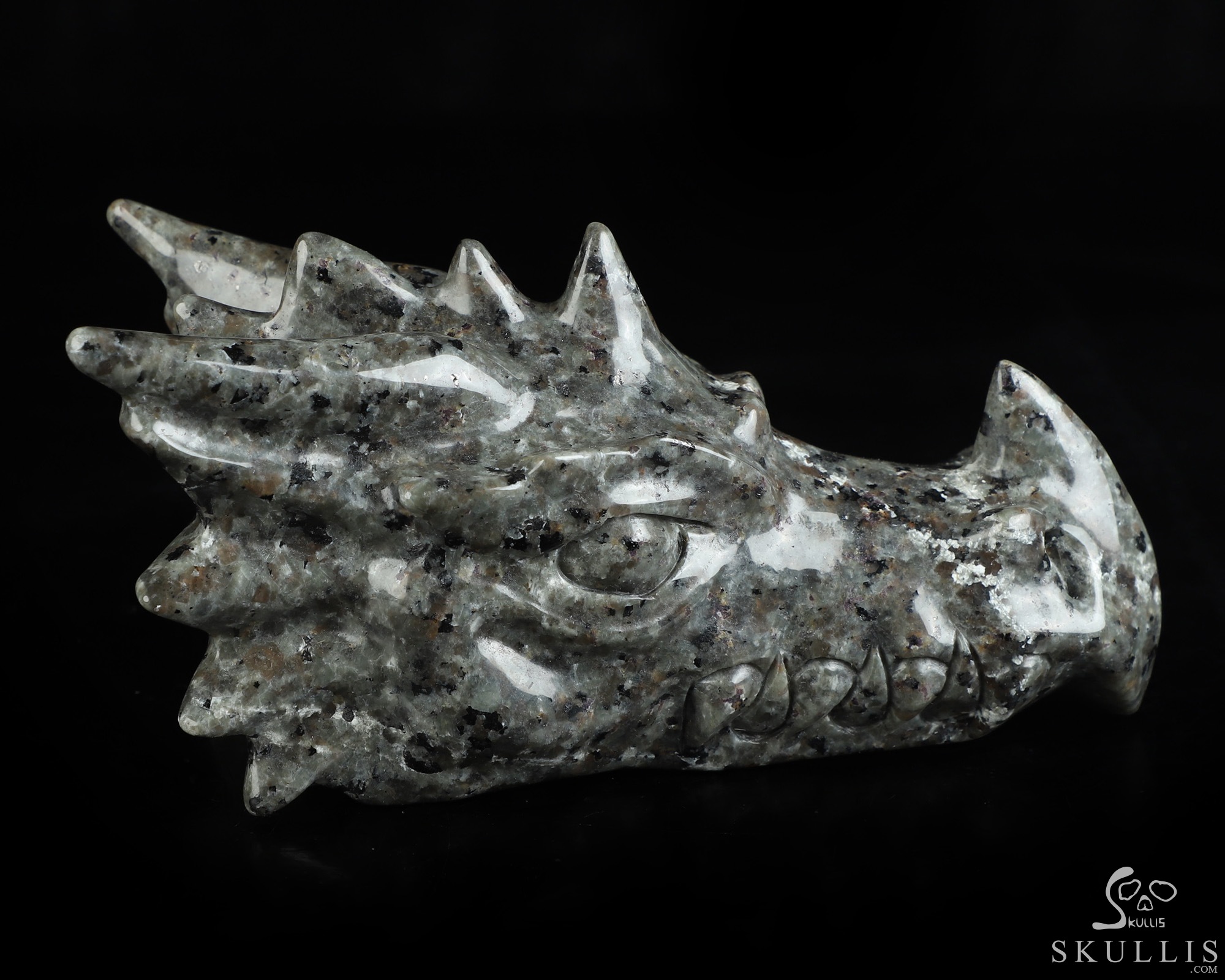 5.9" Yooperlites Hand Carved Crystal Dragon Head Skull Sculpture, Crystal Healing