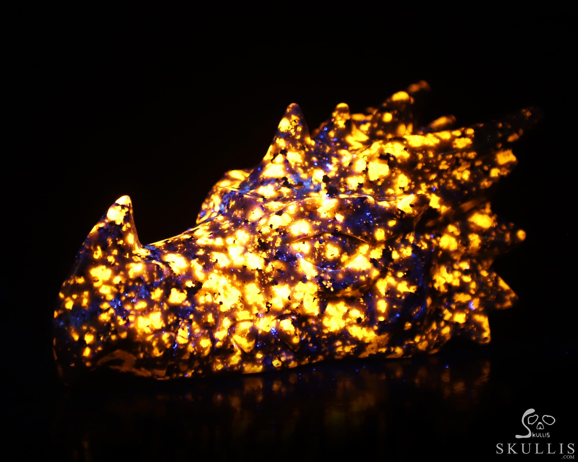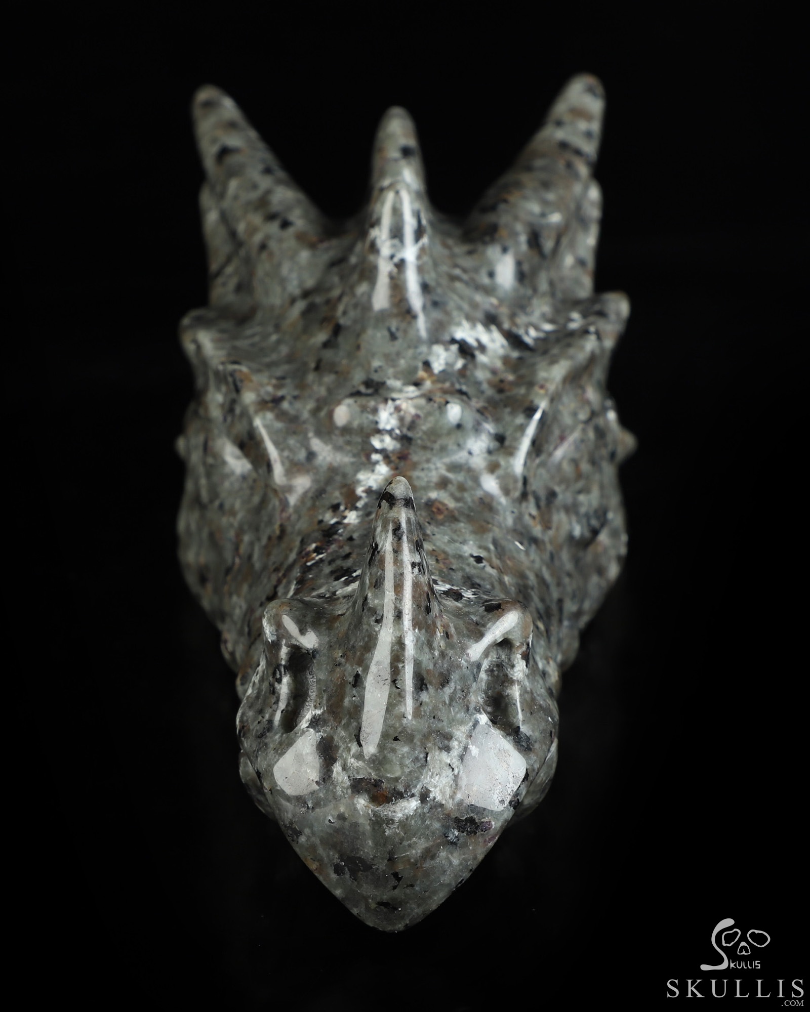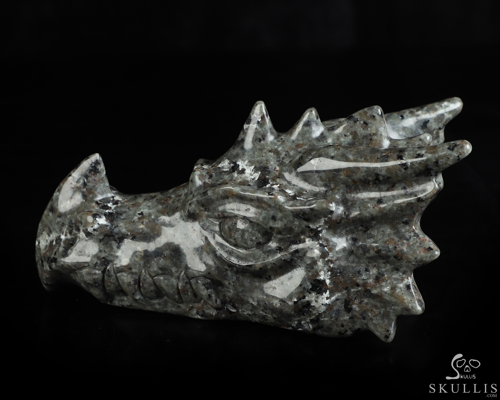 5.9" Yooperlites Hand Carved Crystal Dragon Head Skull Sculpture, Crystal Healing