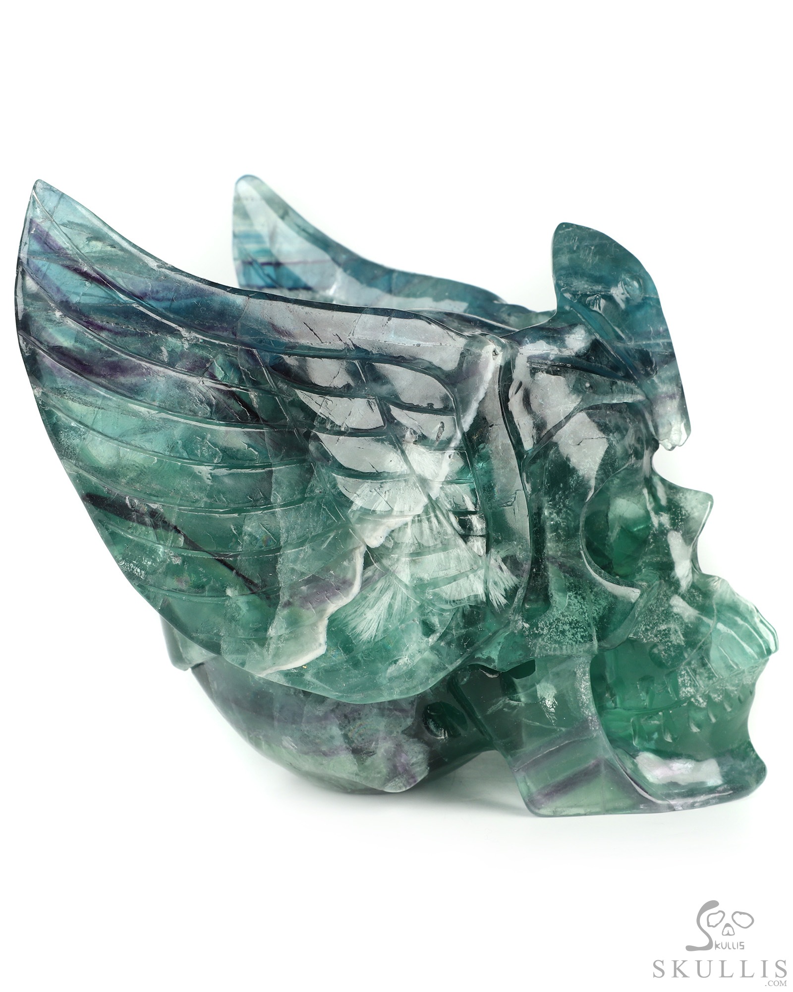 5.7" Fluorite Hand Carved Crystal Skull Fine Art Sculpture, Crystal Healing
