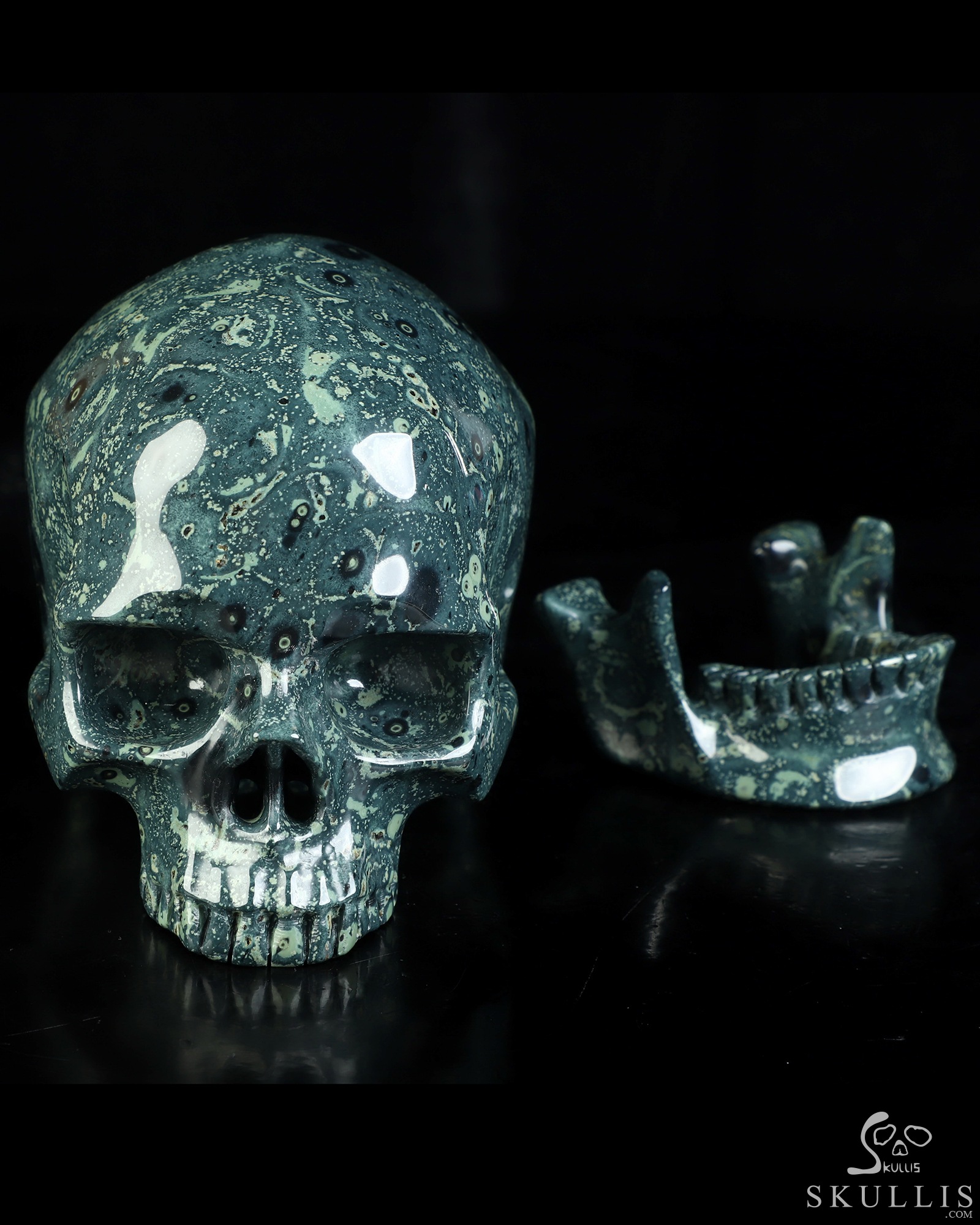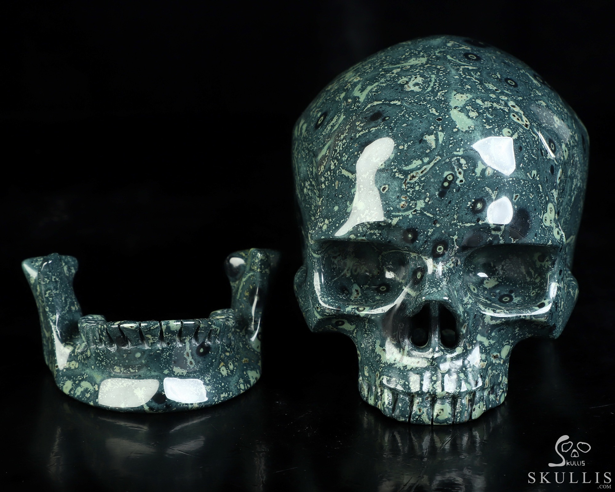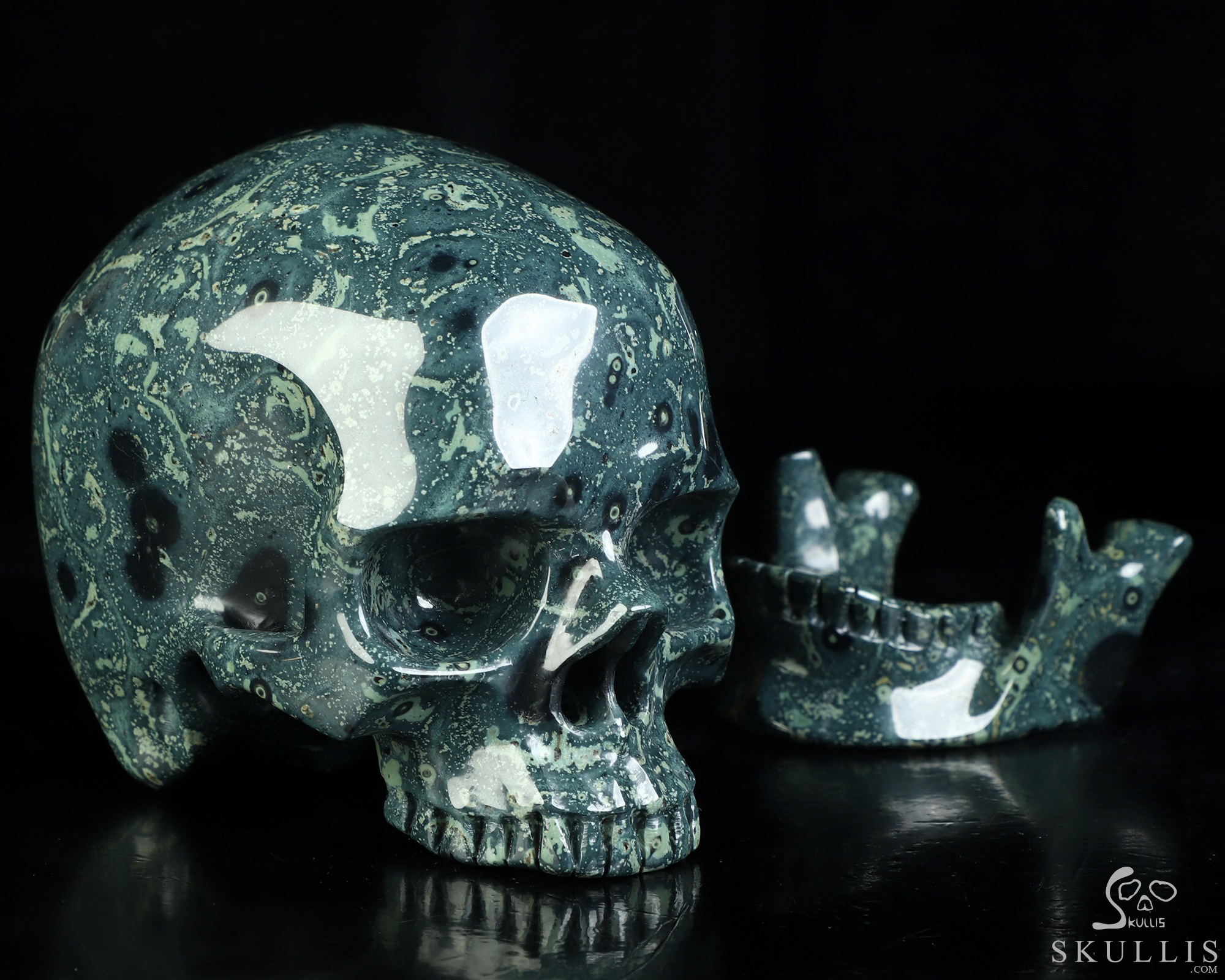6.0" Kambaba Jasper Hand Carved Crystal Detachable Skull Sculpture, Crystal Healing