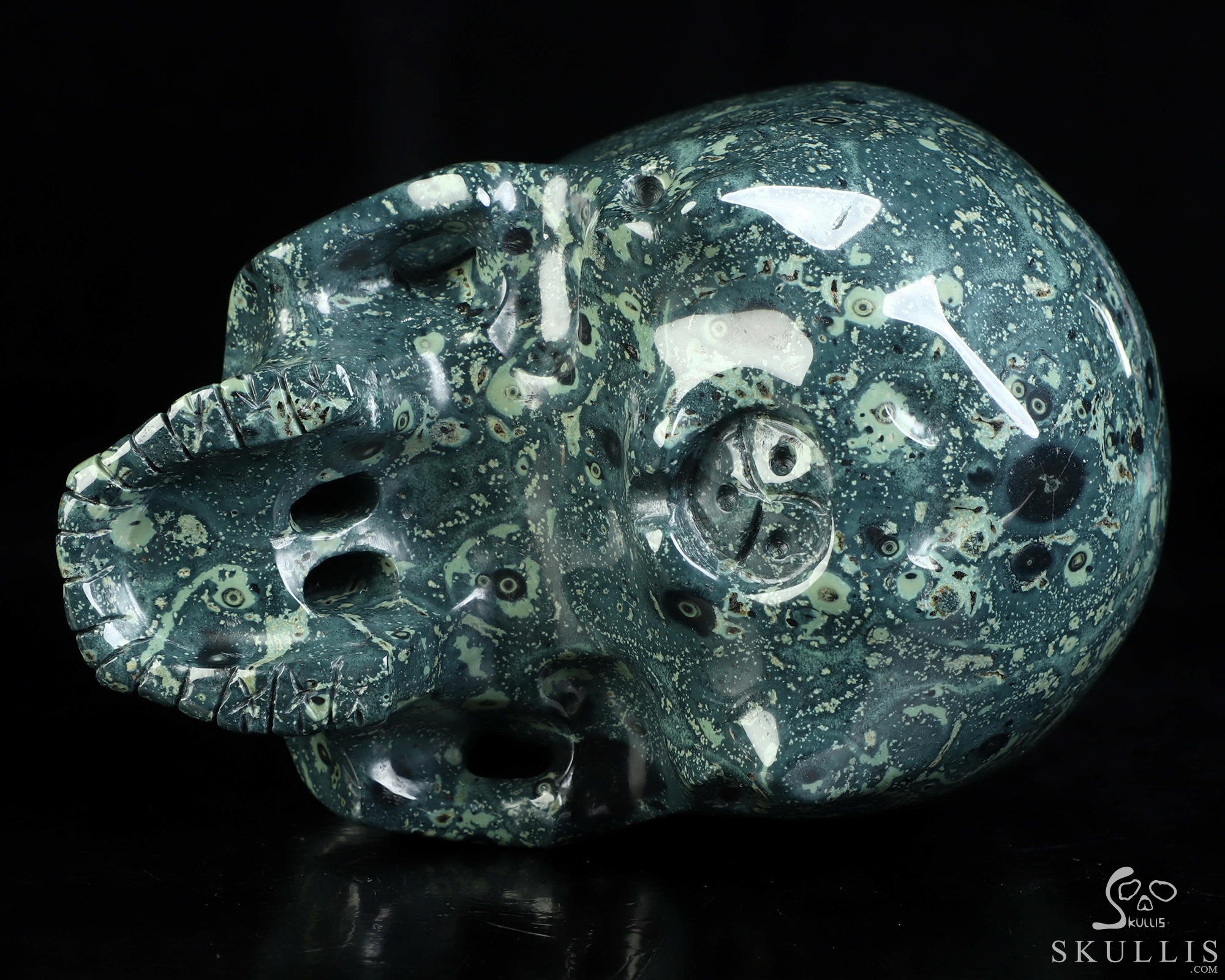 4.4" Kambaba Jasper Carved Crystal Skull Storage tank, Crystal Healing
