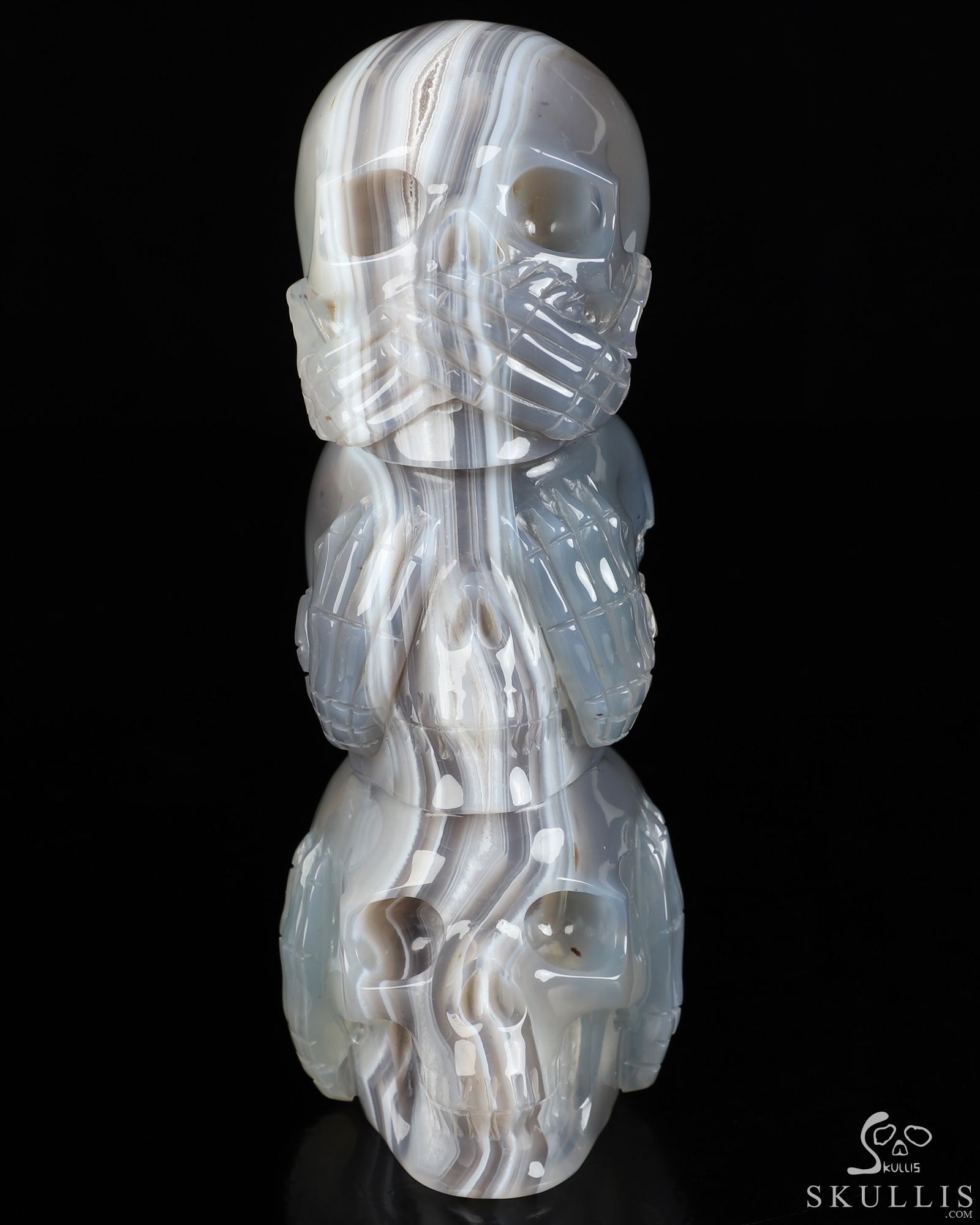 5.2" Banded Agate Carved Crystal Skull, Super Realistic, Crystal Healing