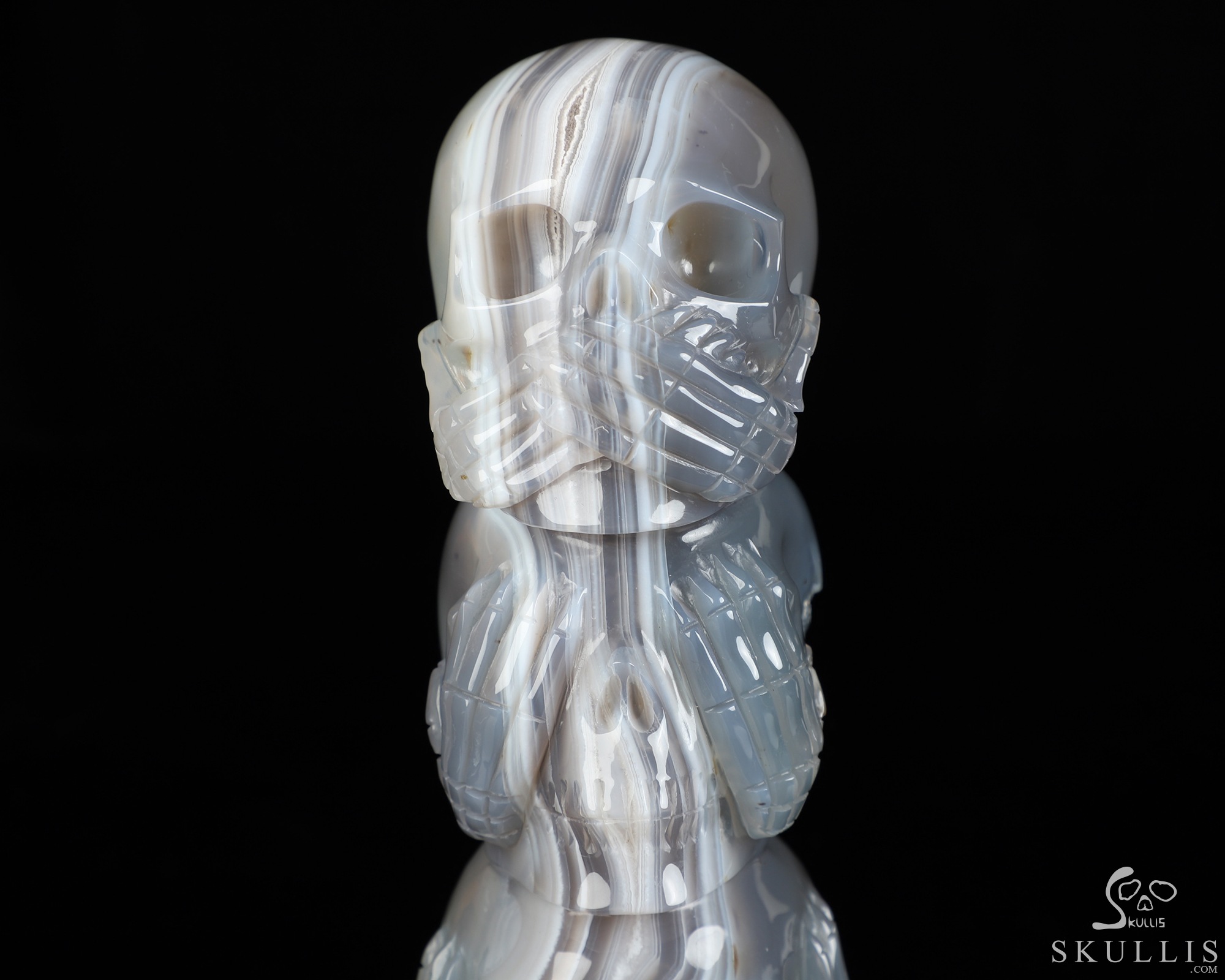 3.0" Banded Agate Hand Carved Crystal Skull, Super Realistic, Crystal Healing