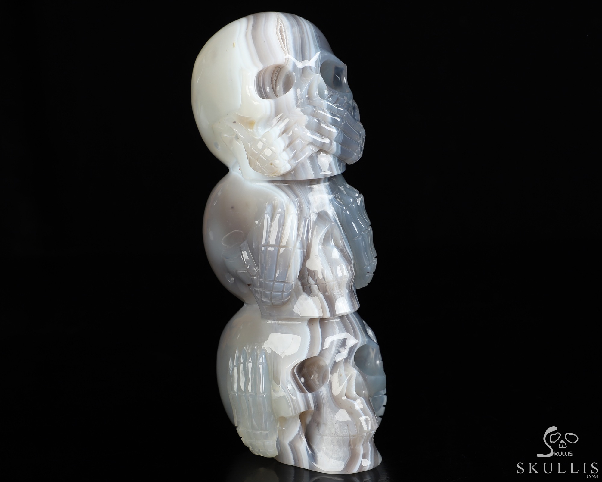 5.0" Banded Agate Hand Carved Crystal Skull, Super Realistic, Crystal Healing