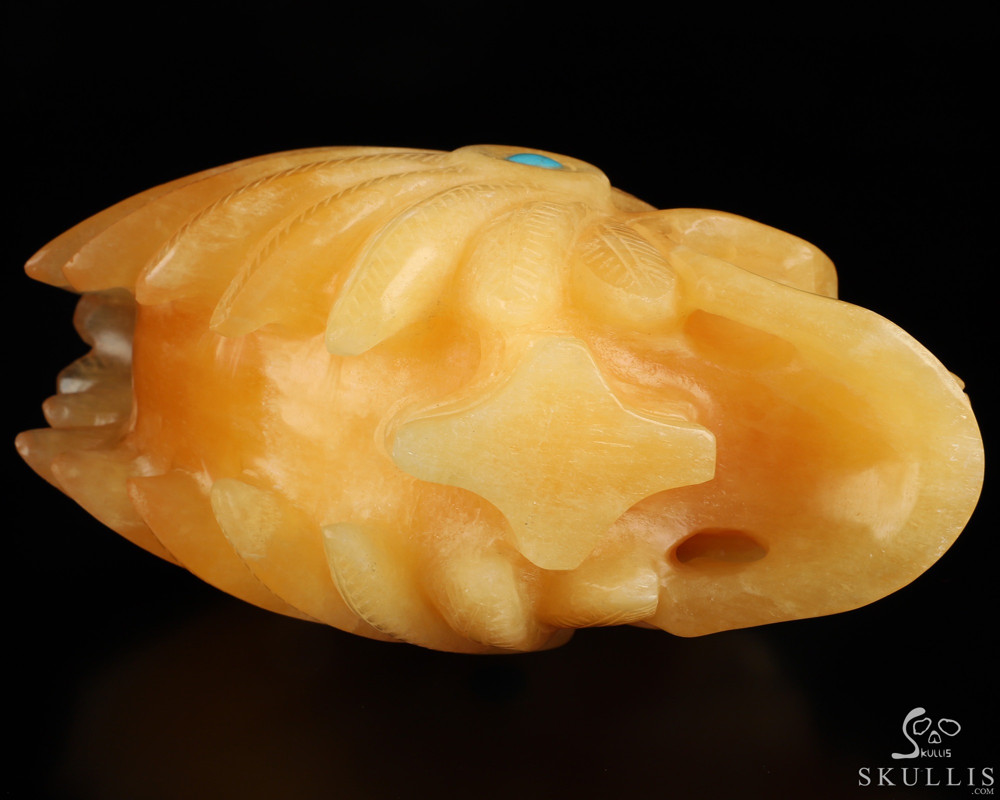 5.1" Beeswax Jade Hand Carved Crystal Dragon Skull with Labradorite Eyes Sculpture, Crystal Healing