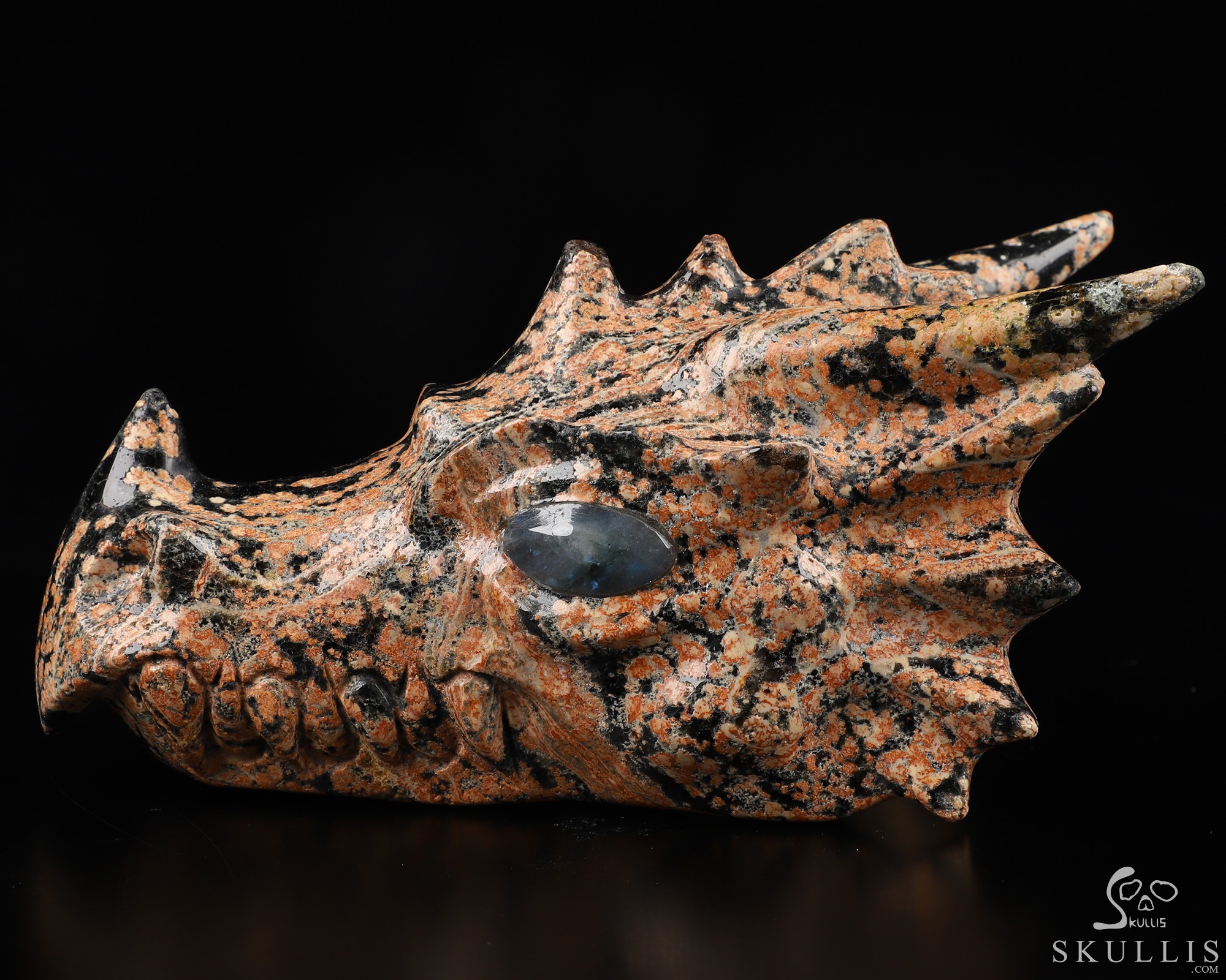 5.0" Ocean Jasper Hand Carved Crystal Dragon Skull with Labradorite Eyes Sculpture, Crystal Healing