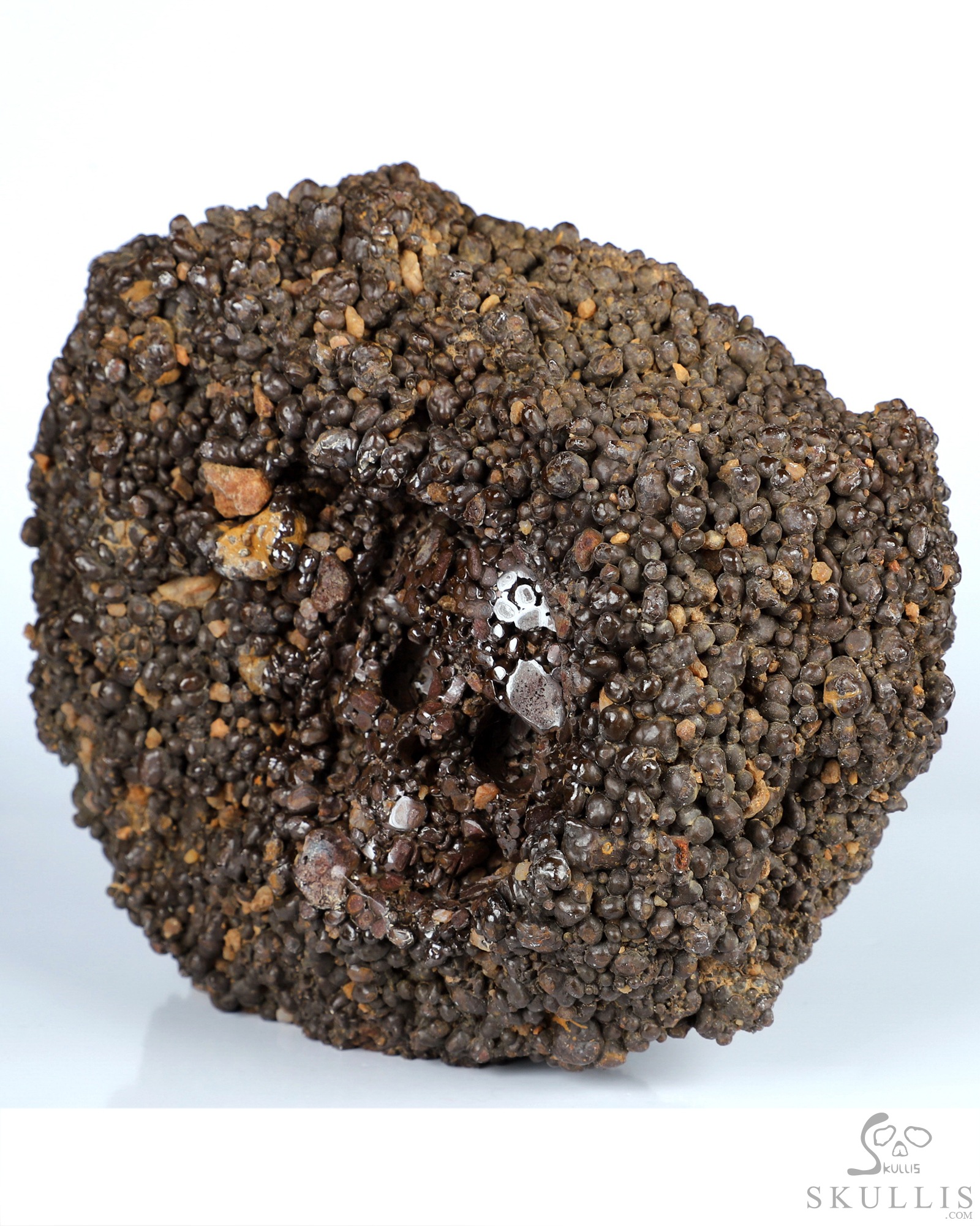 Lifesized 5.9" Limonite and Quartz Druse Hand Carved Crystal Skull, Crystal Healing