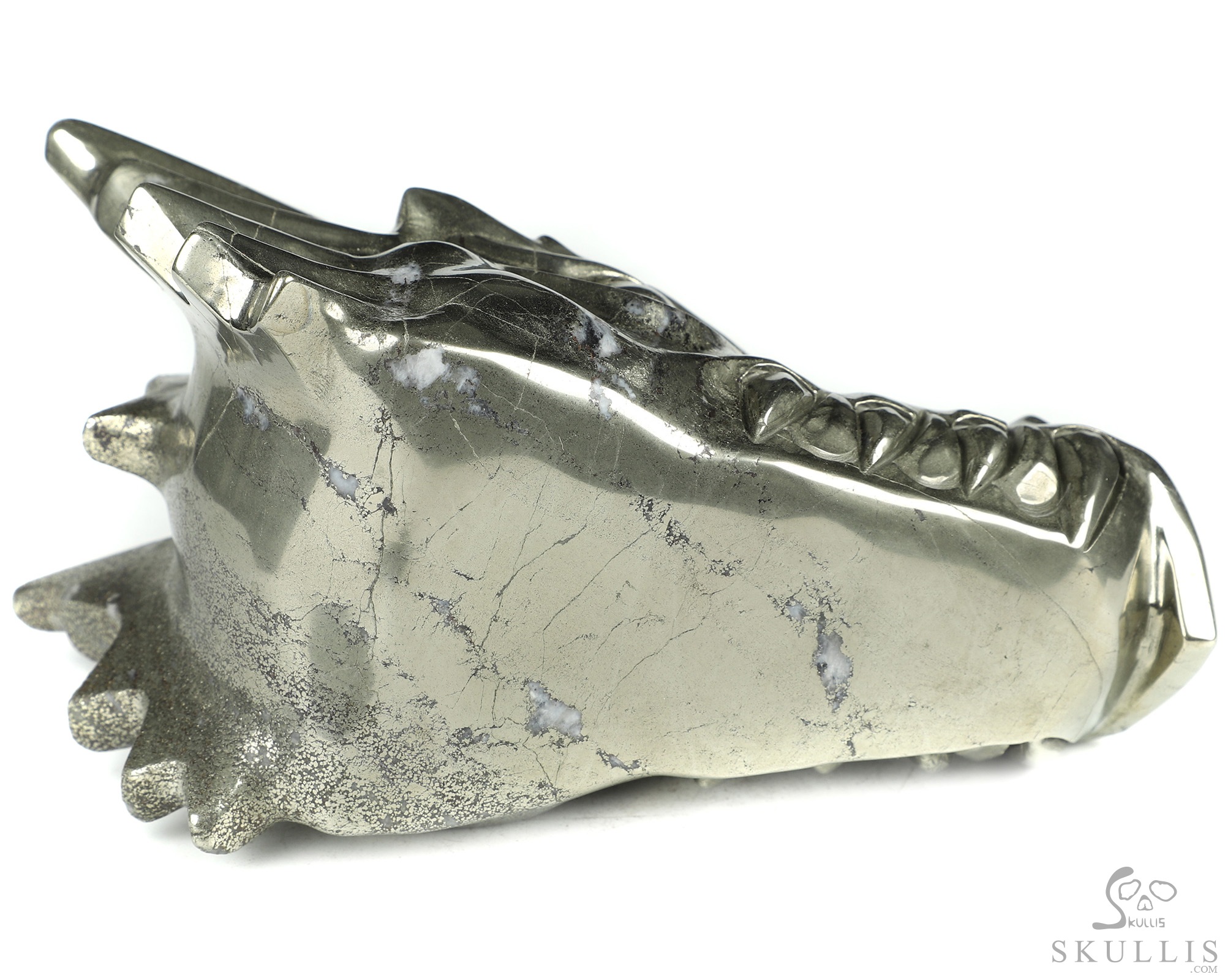 6.1" Pyrite Hand Carved Crystal Dragon Head Skull Sculpture, Crystal Healing