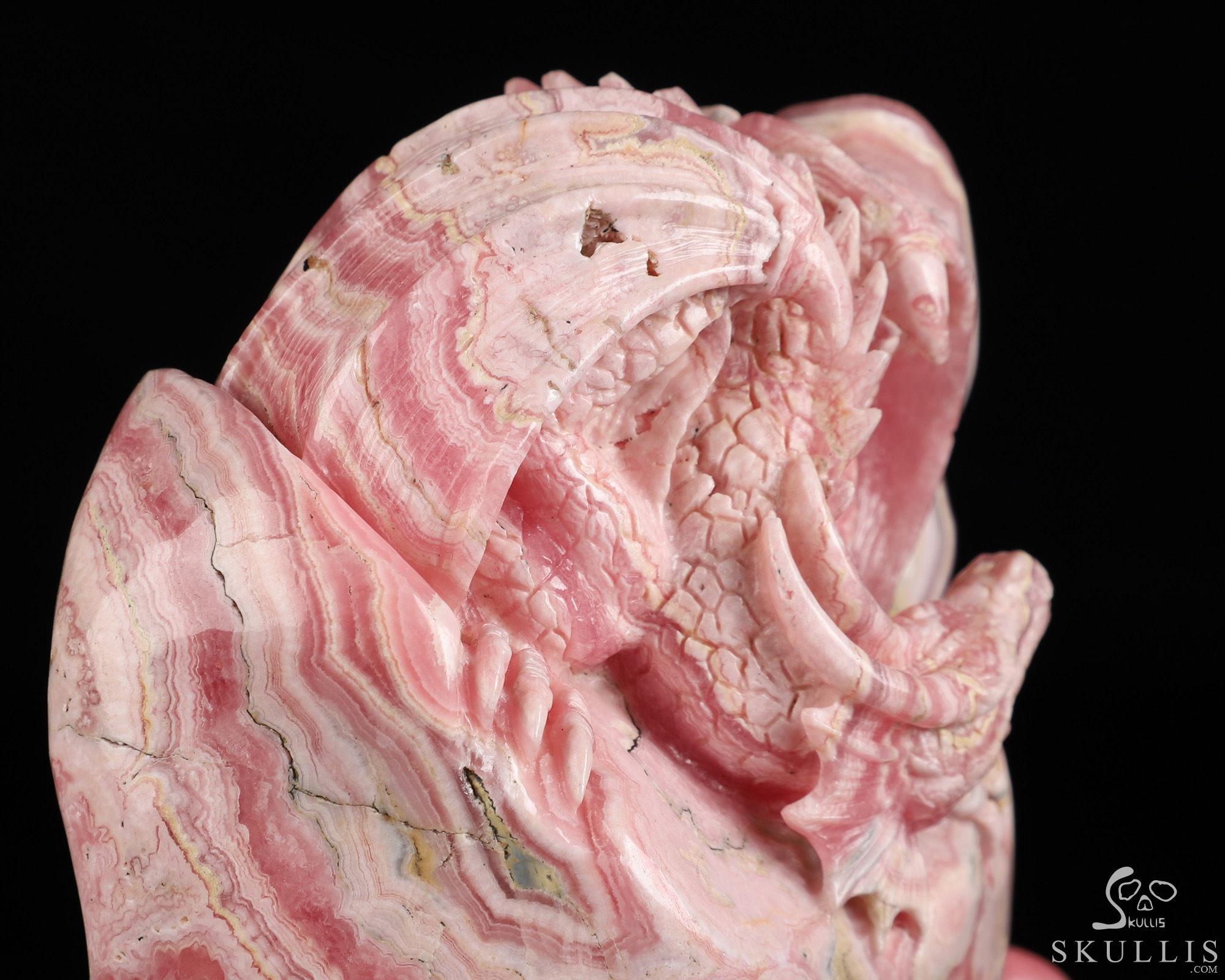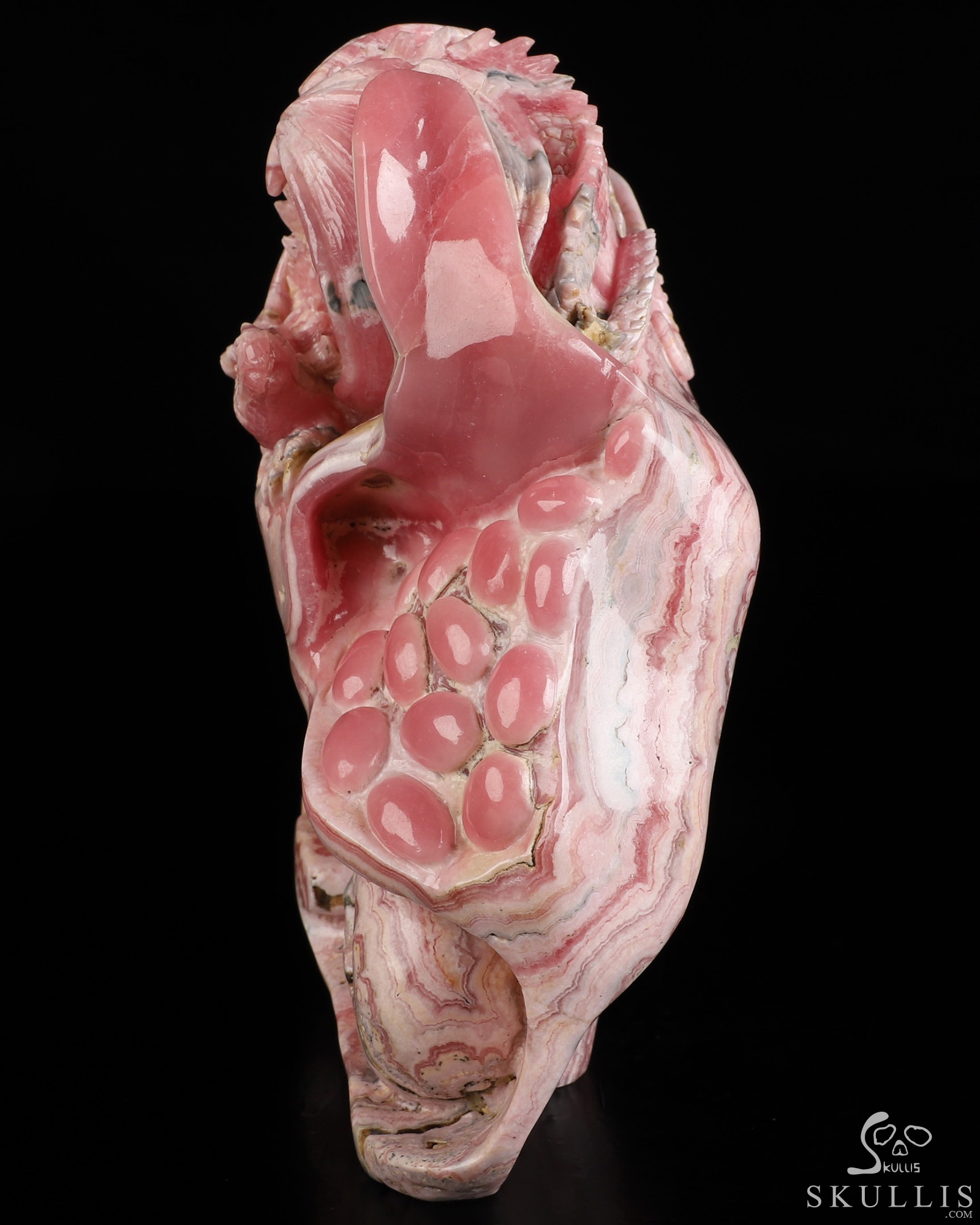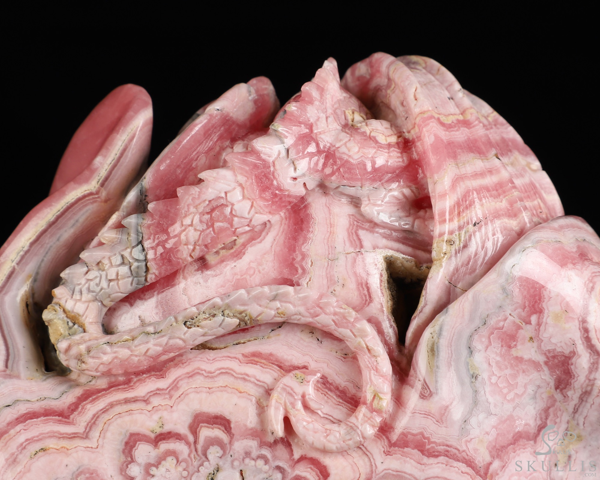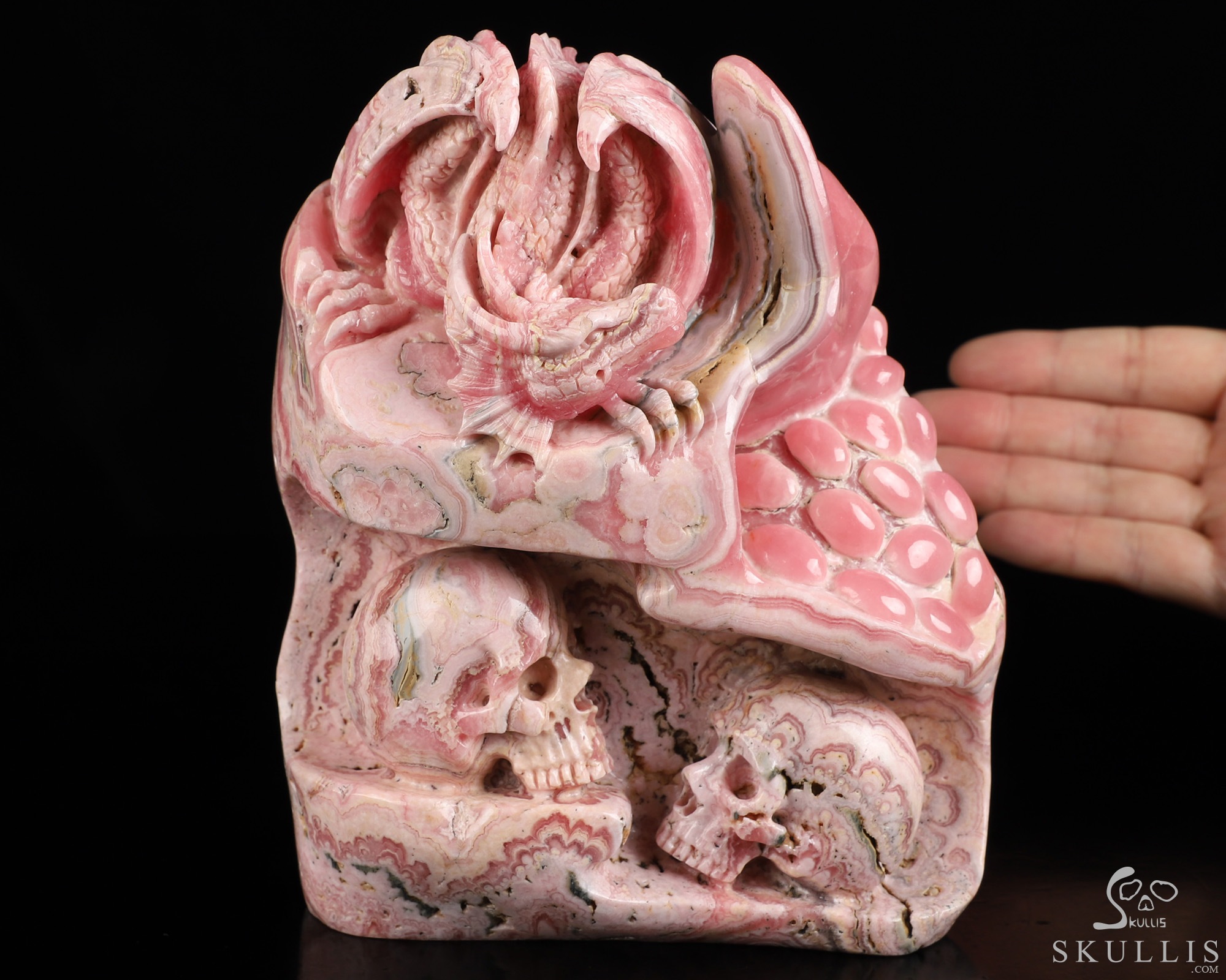 6.1" Rhodochrosite Hand Carved Crystal Skull and Dragon Fine Art Sculpture, Crystal Healing