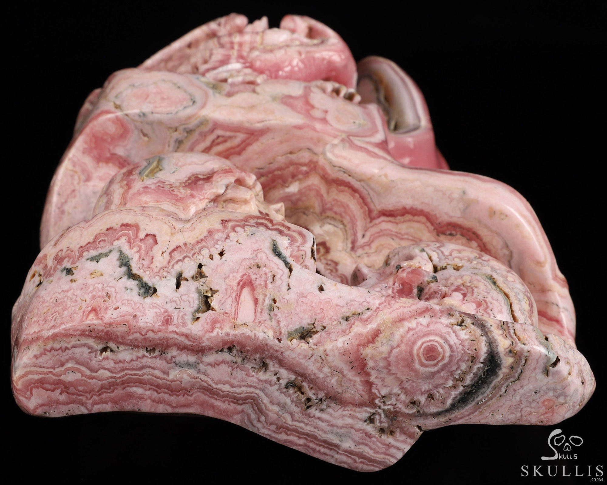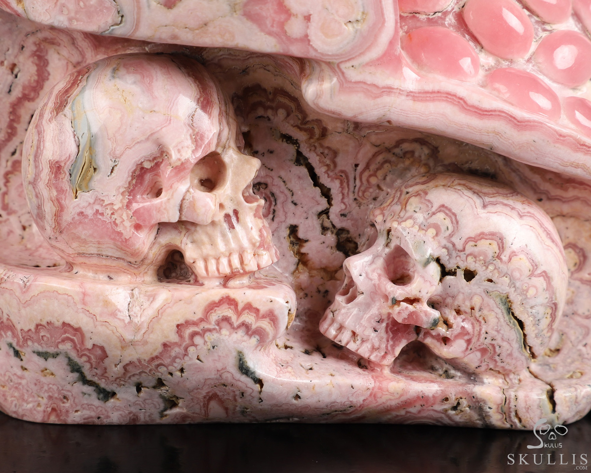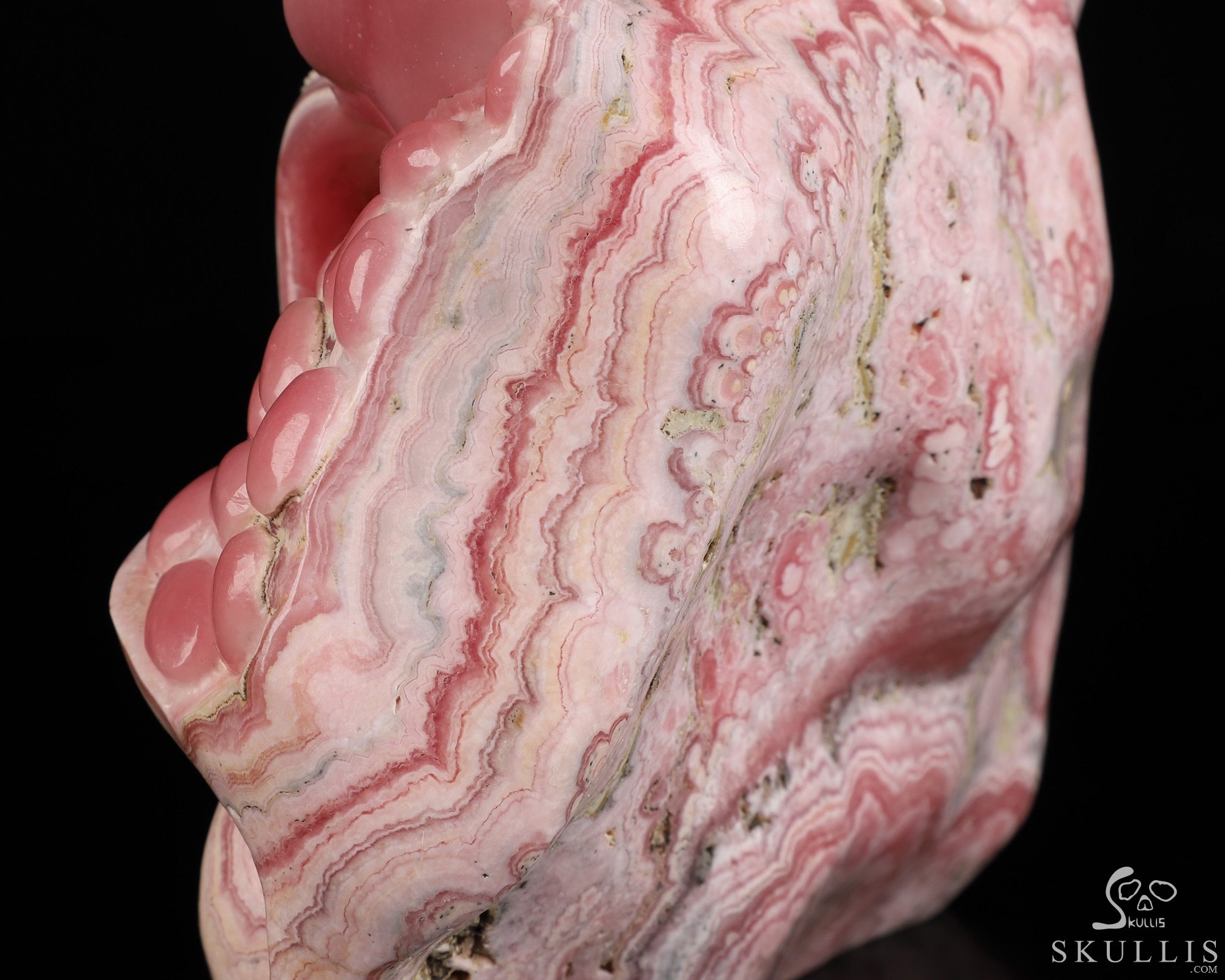 Rare Size Top Quality 5.1" Rhodochrosite Hand Carved Crystal Skull, Super Realistic, Crystal Healing