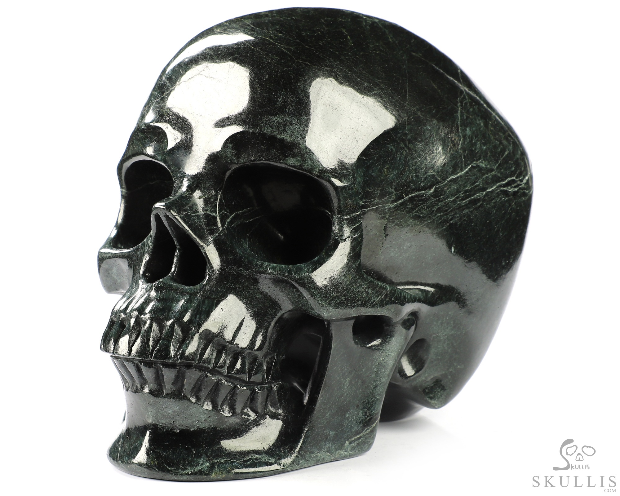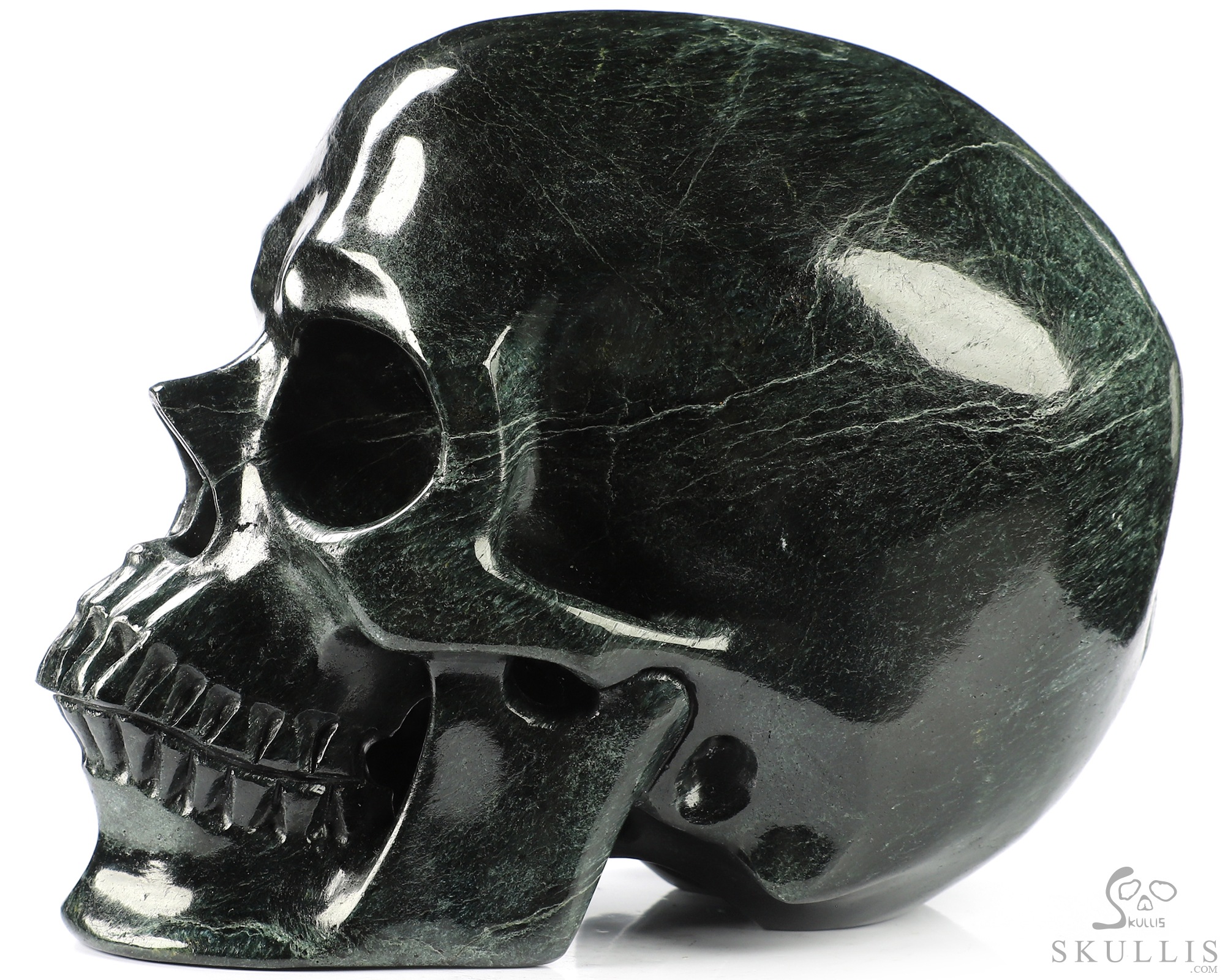 Gemstone Lifesized 6.9" Seraphinite Clinochlore Carved Crystal Skull,Super Realistic, Crystal Healing