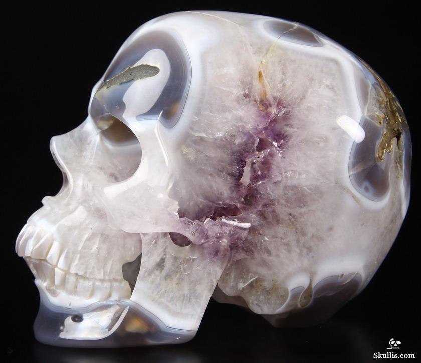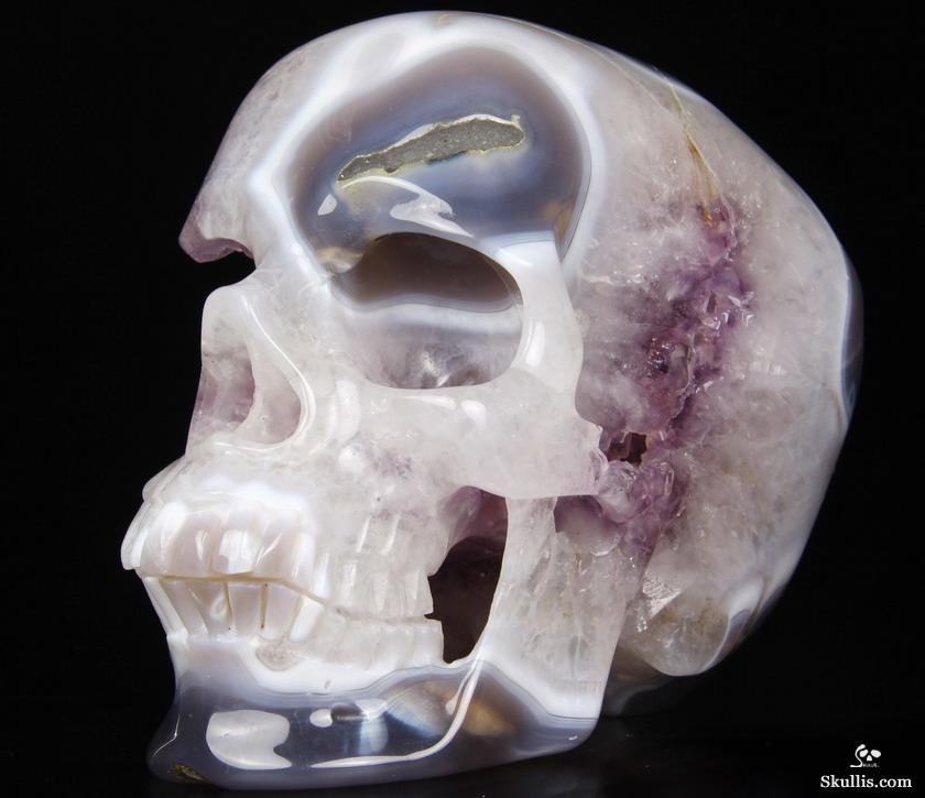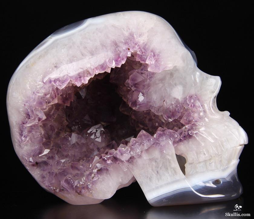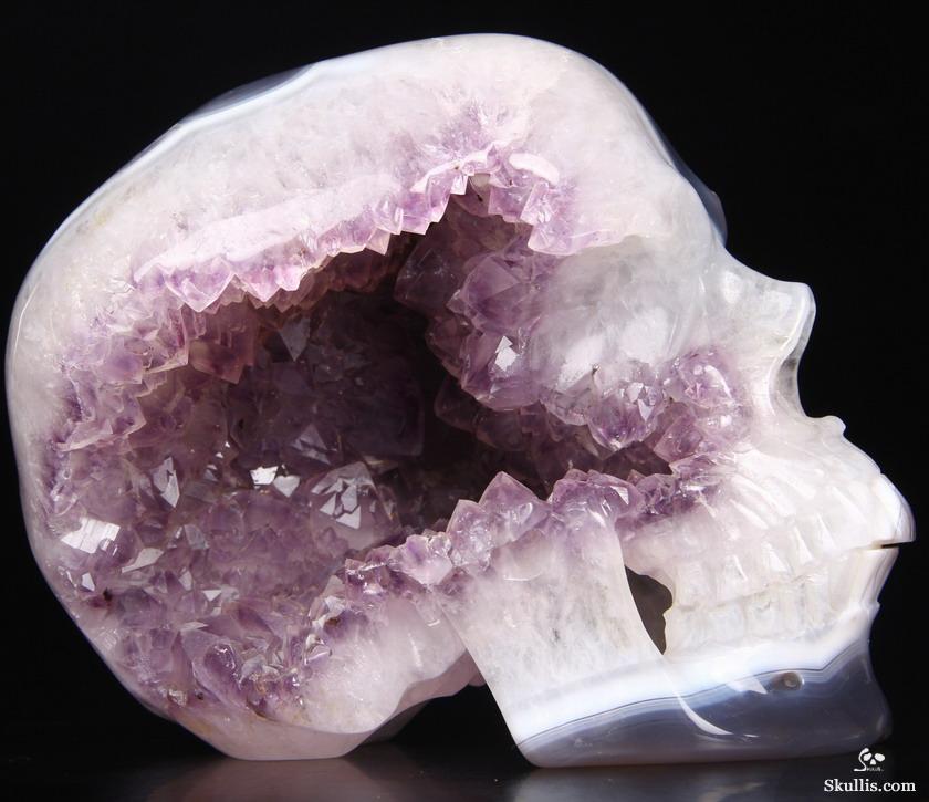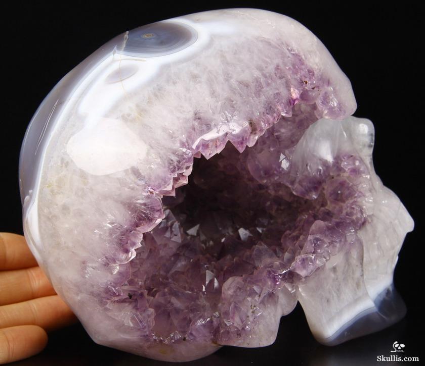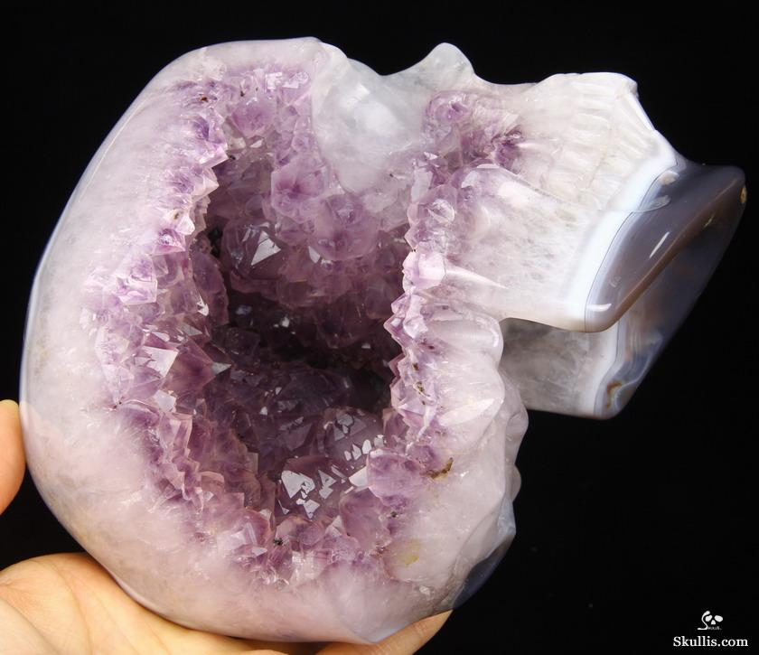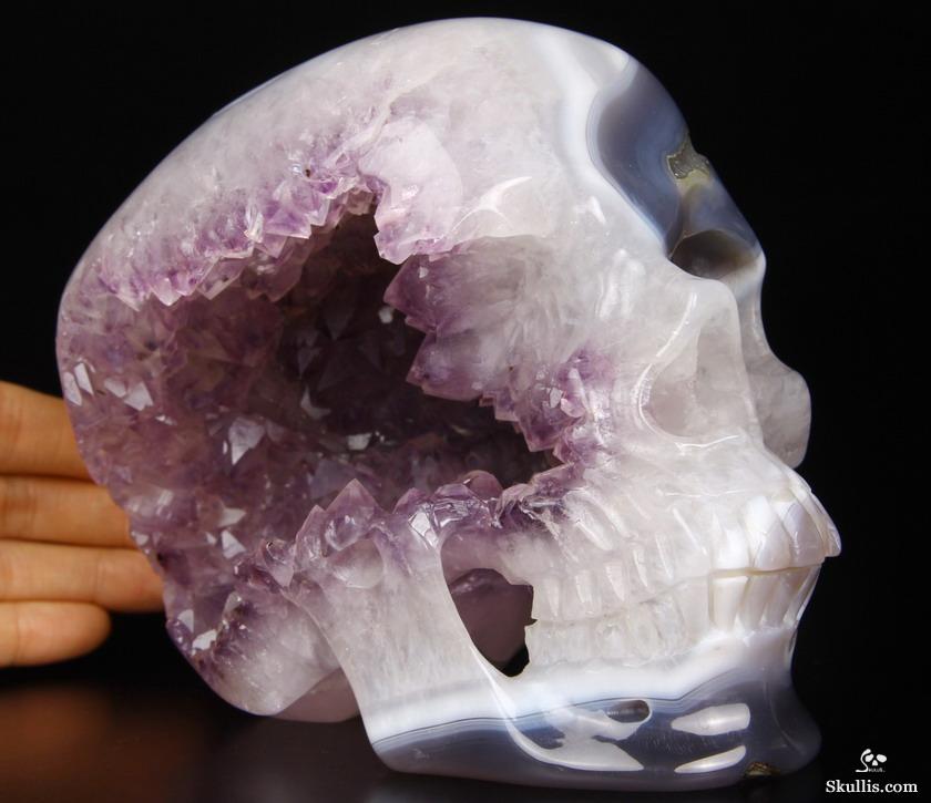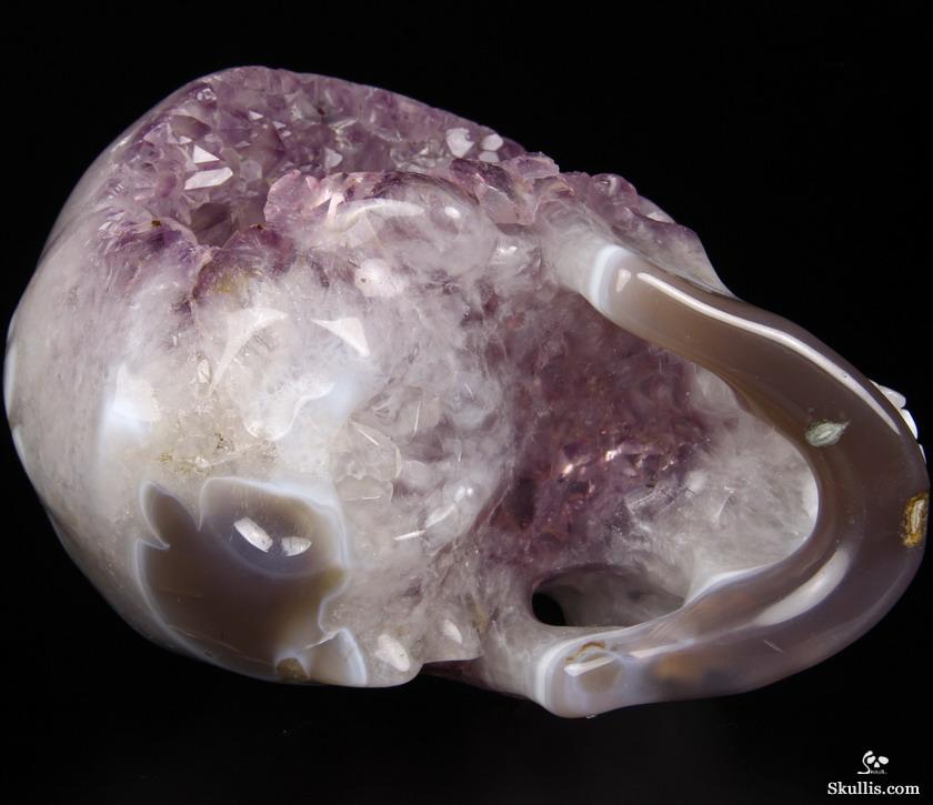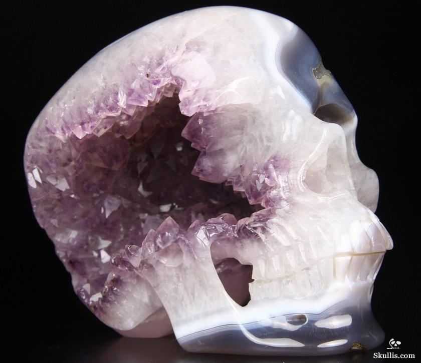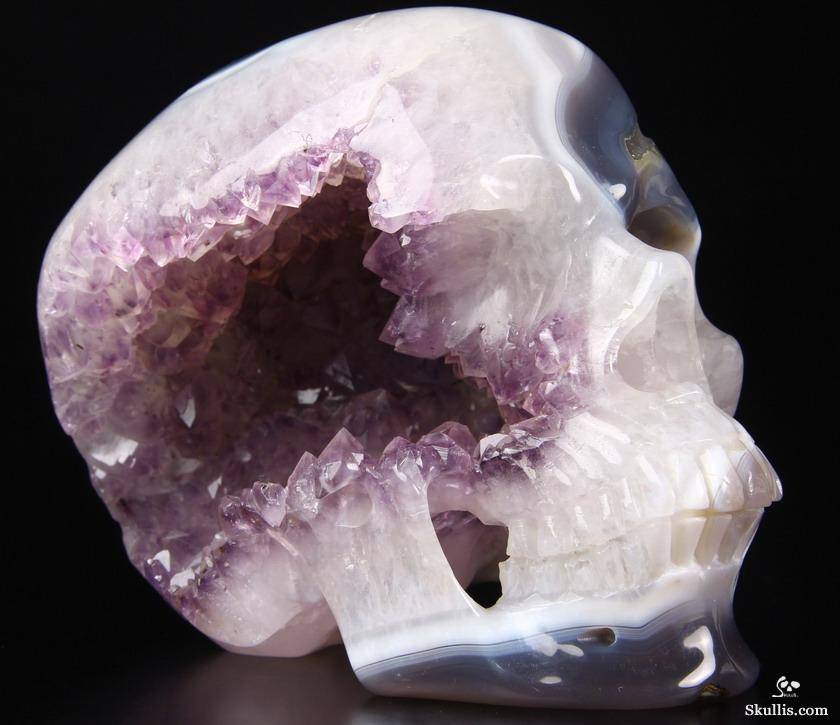 Amazing Lifesized 7.2" Amethyst Geode Agate Carved Crystal Skull Sculpture