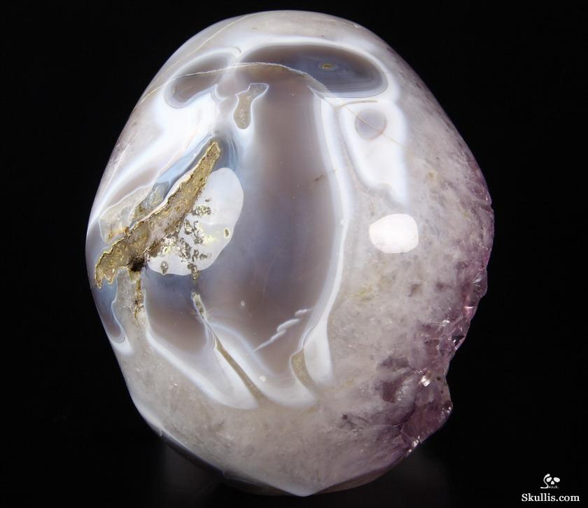 Lifesized 8.0" Amethyst Geode Agate Carved Crystal Skull with Owl Sculpture