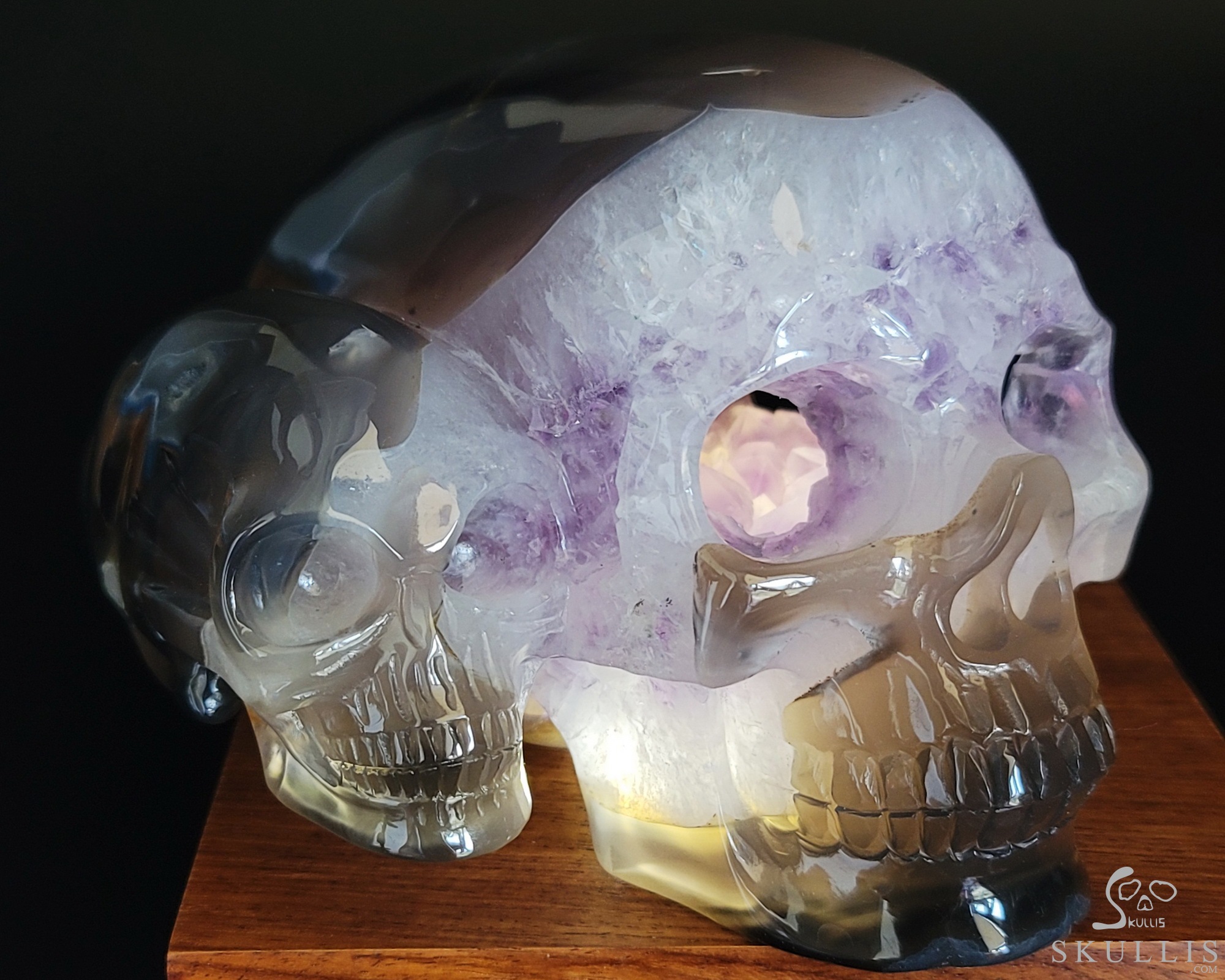 Giant 7.9" Agate Amethyst Geode Carved Crystal Skull, Realistic