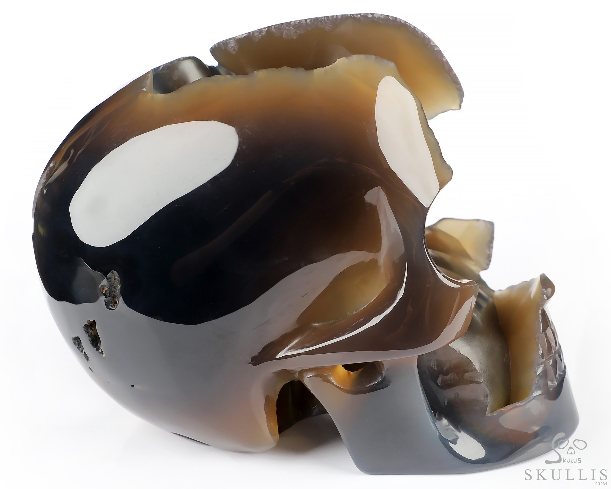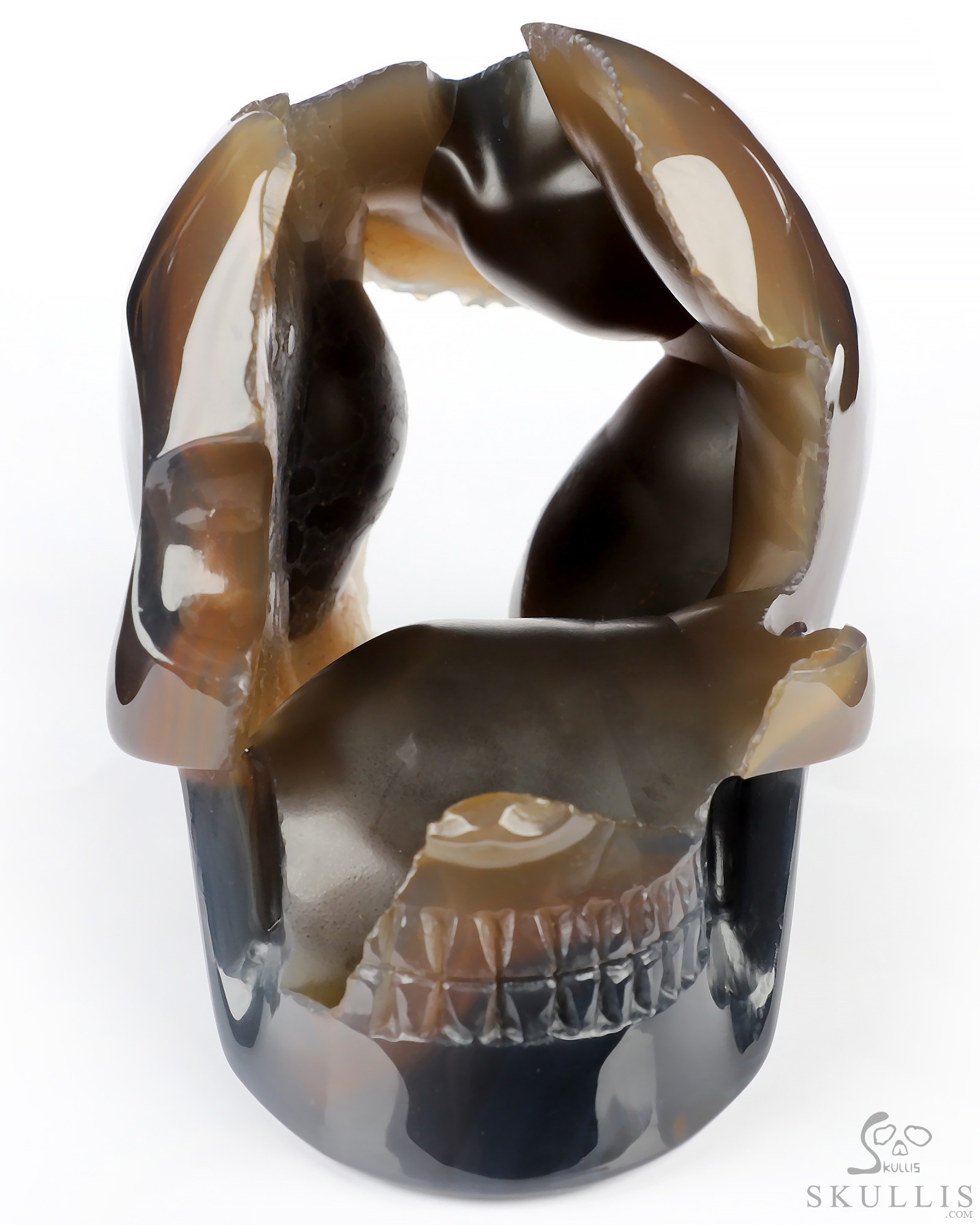 6.7" Premium Brazilian Agate Hand Carved Crystal Skull Fine Art Sculpture, Crystal Healing