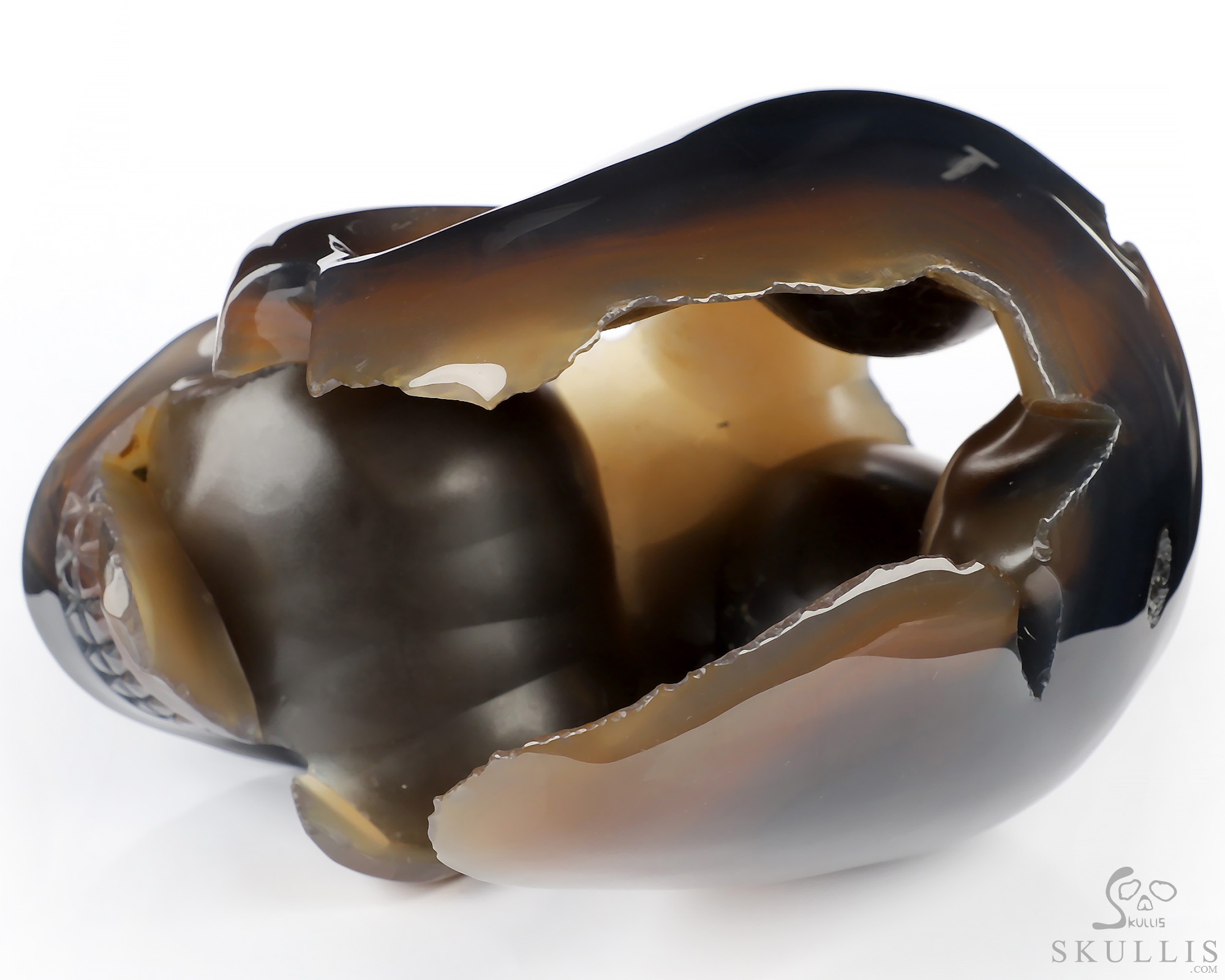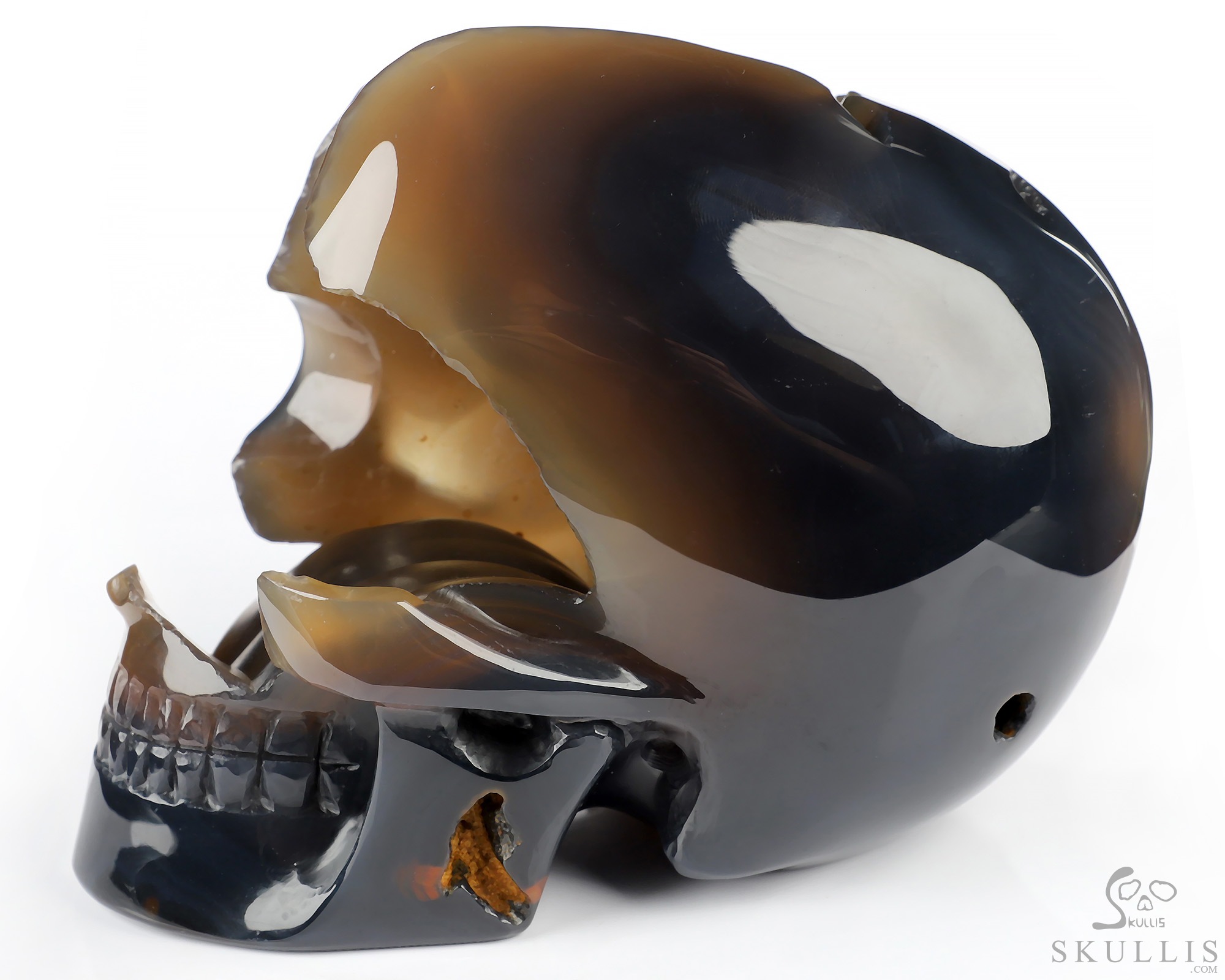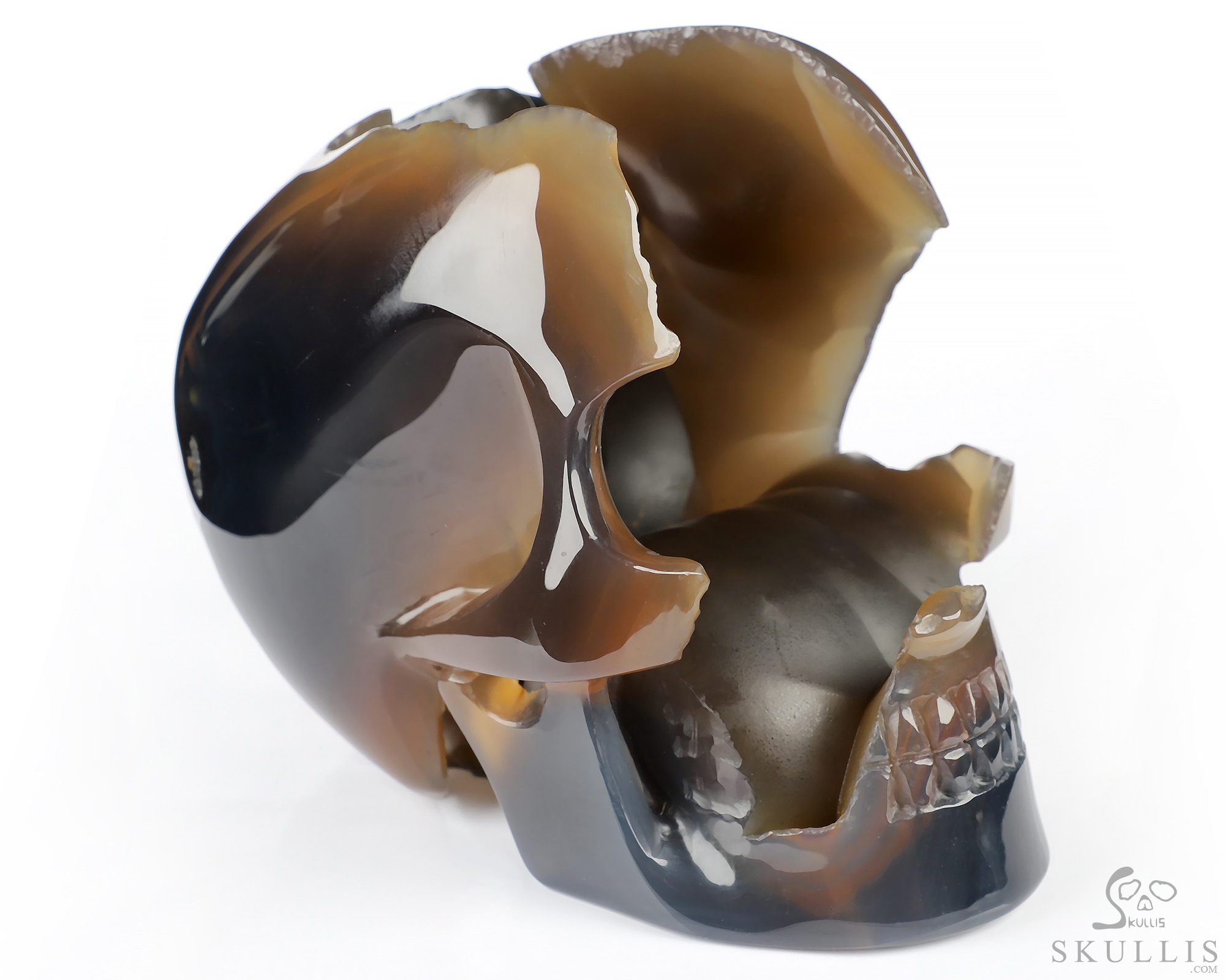You are looking at a Premium Brazilian Agate skull. The skull is 6.3 inches from front to back.