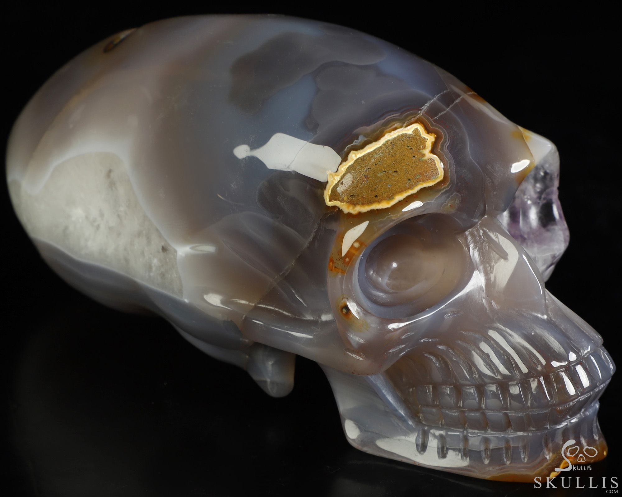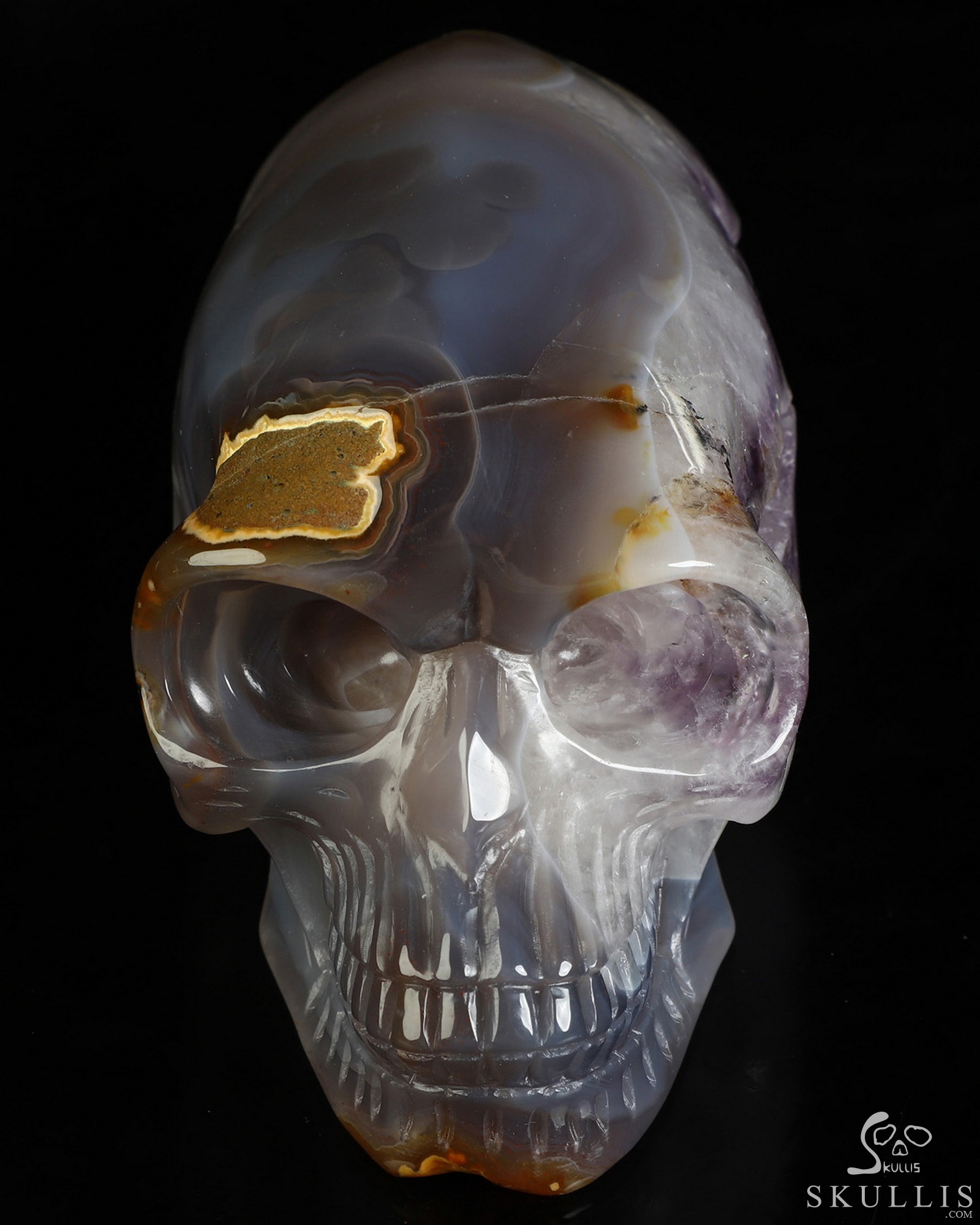 You are looking at a Premium Brazilian Agate skull. The skull is 6.3 inches from front to back.