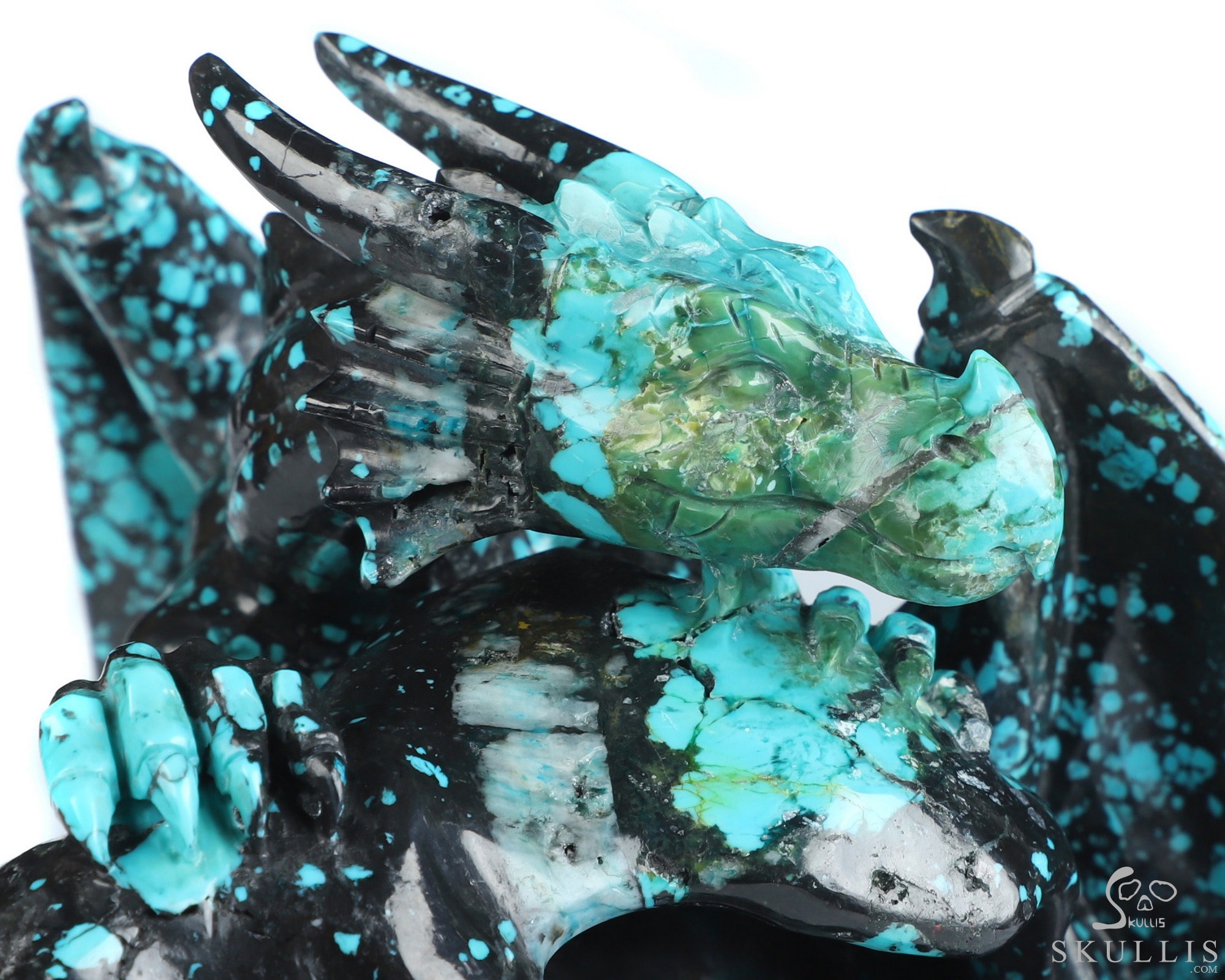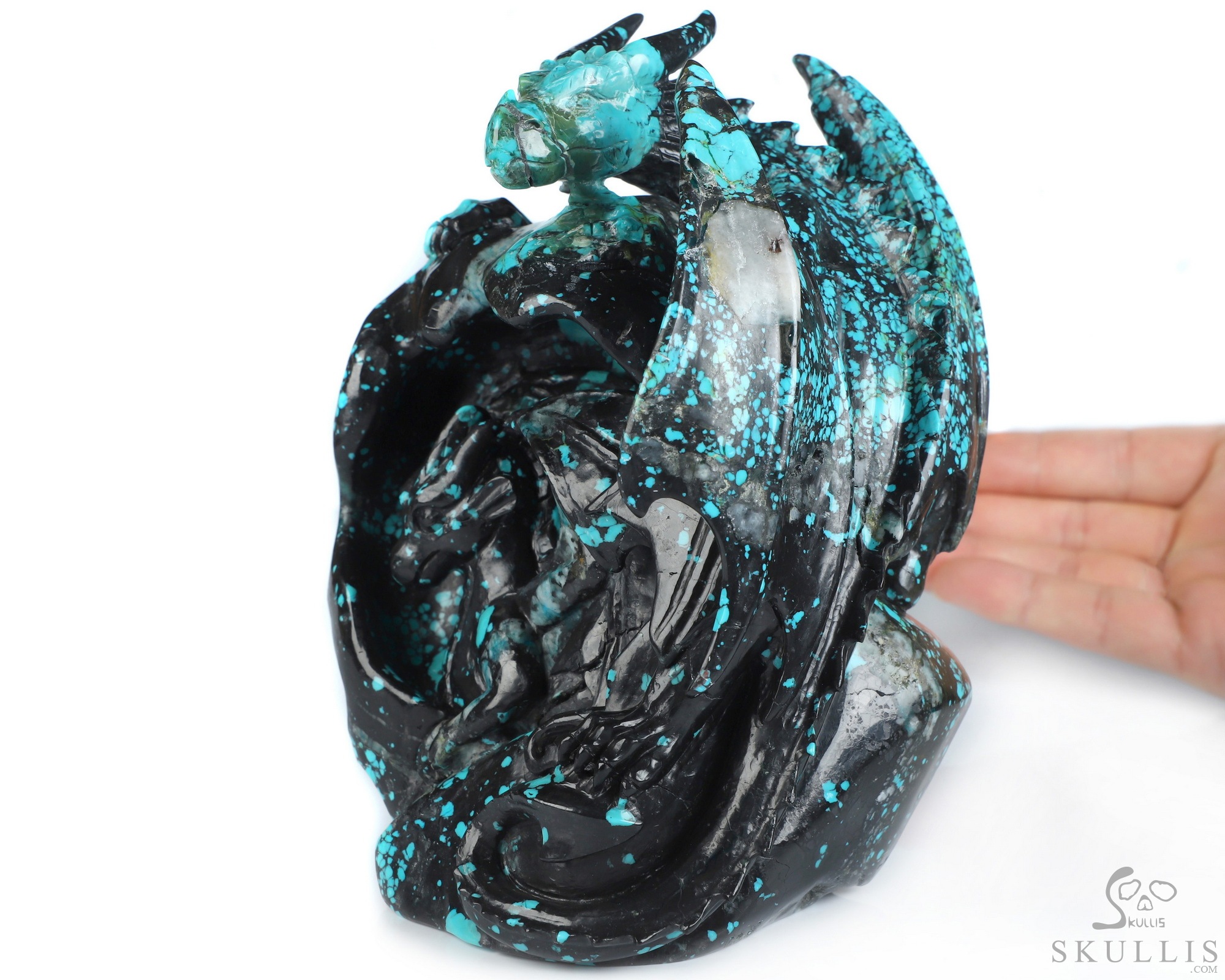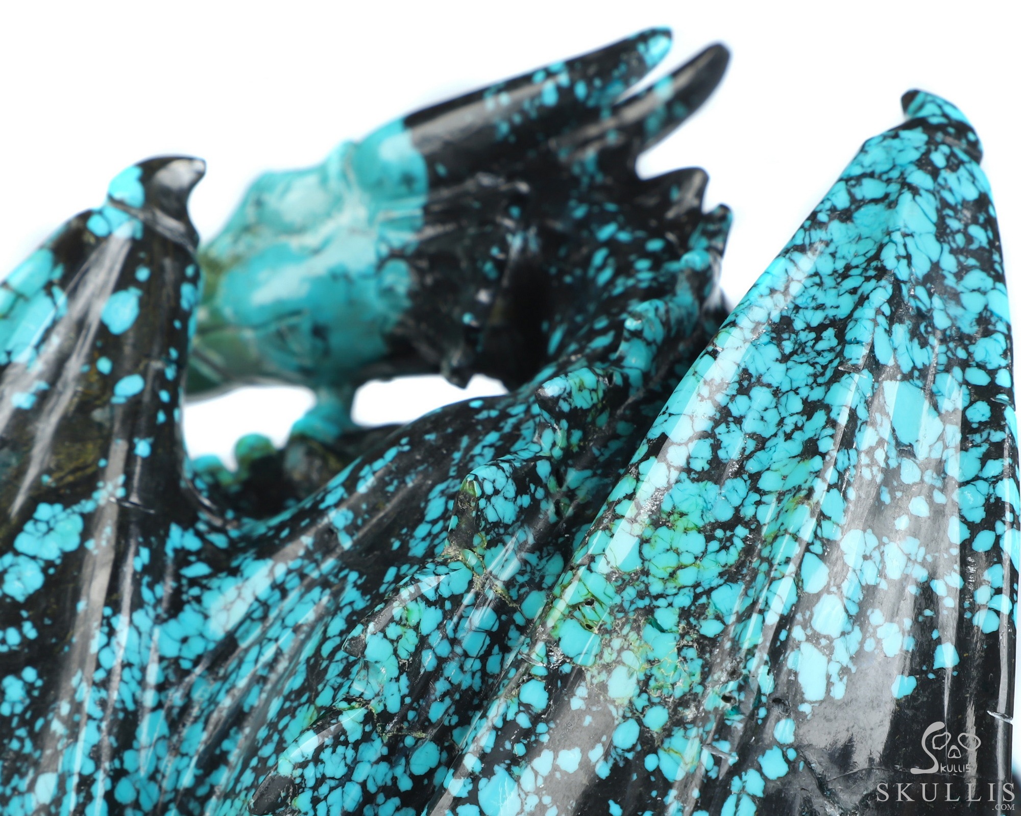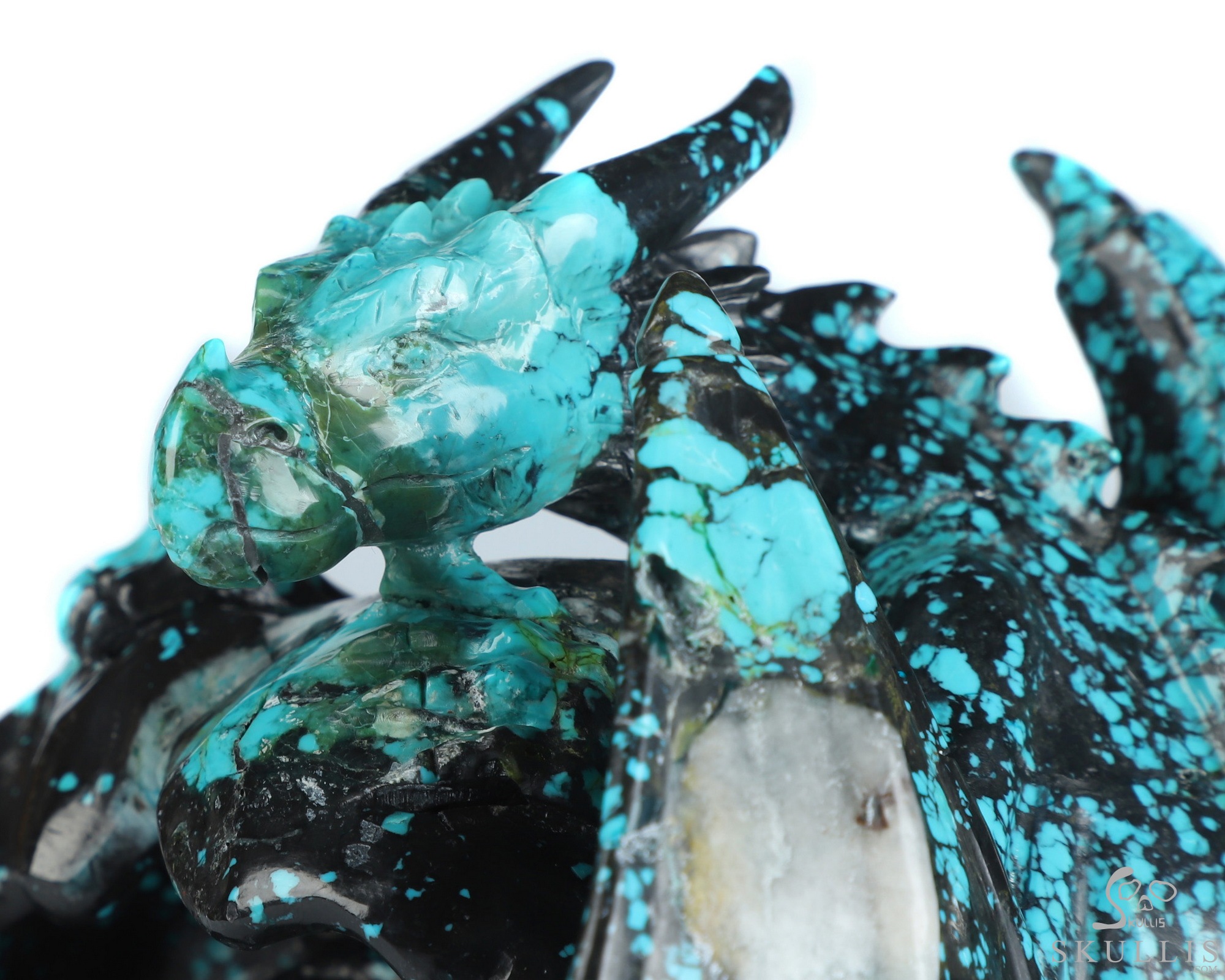 6.3" Turquoise Hand Carved Crystal Dragons Fine Art Sculpture, Crystal Healing