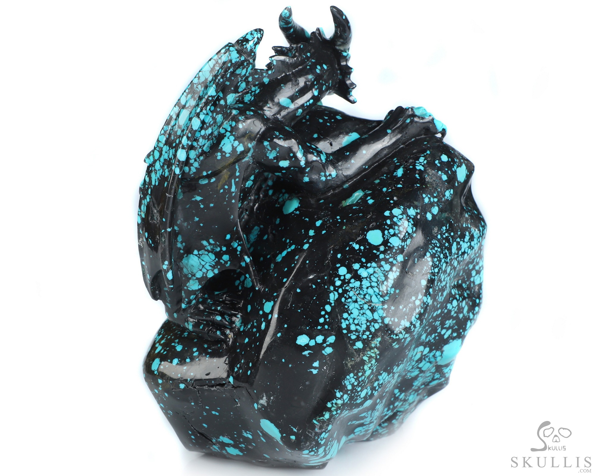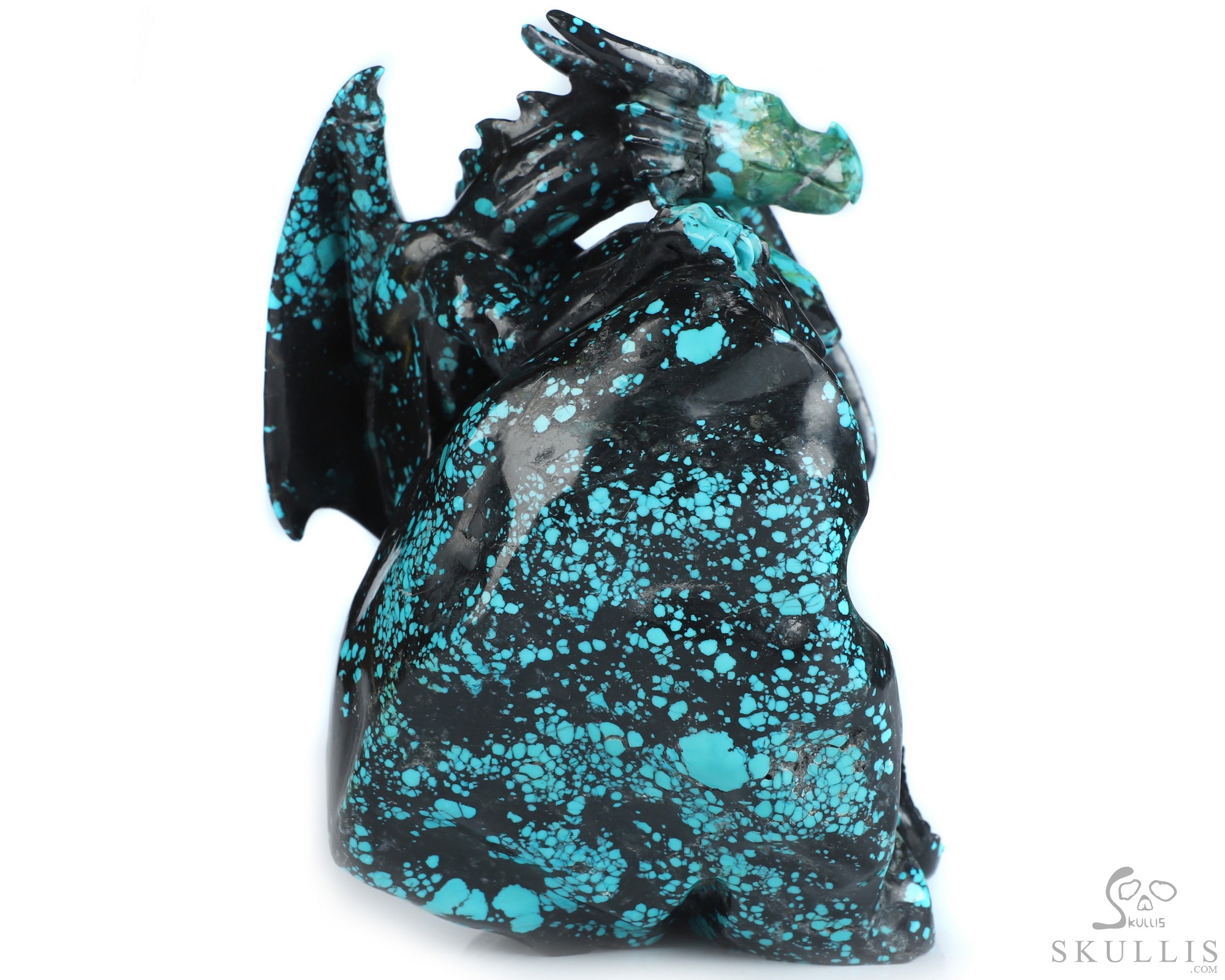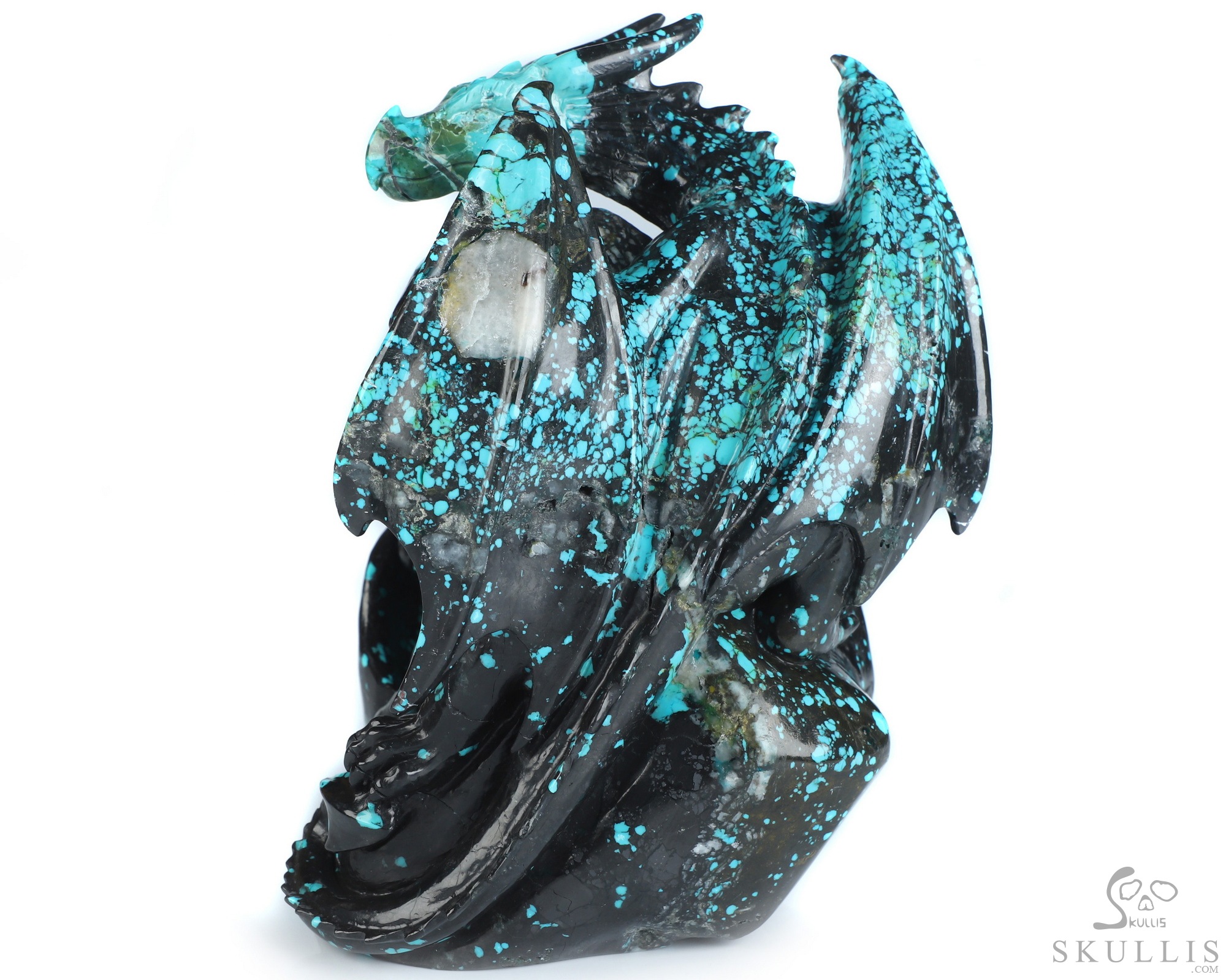 6.3" Turquoise Hand Carved Crystal Dragons Fine Art Sculpture, Crystal Healing