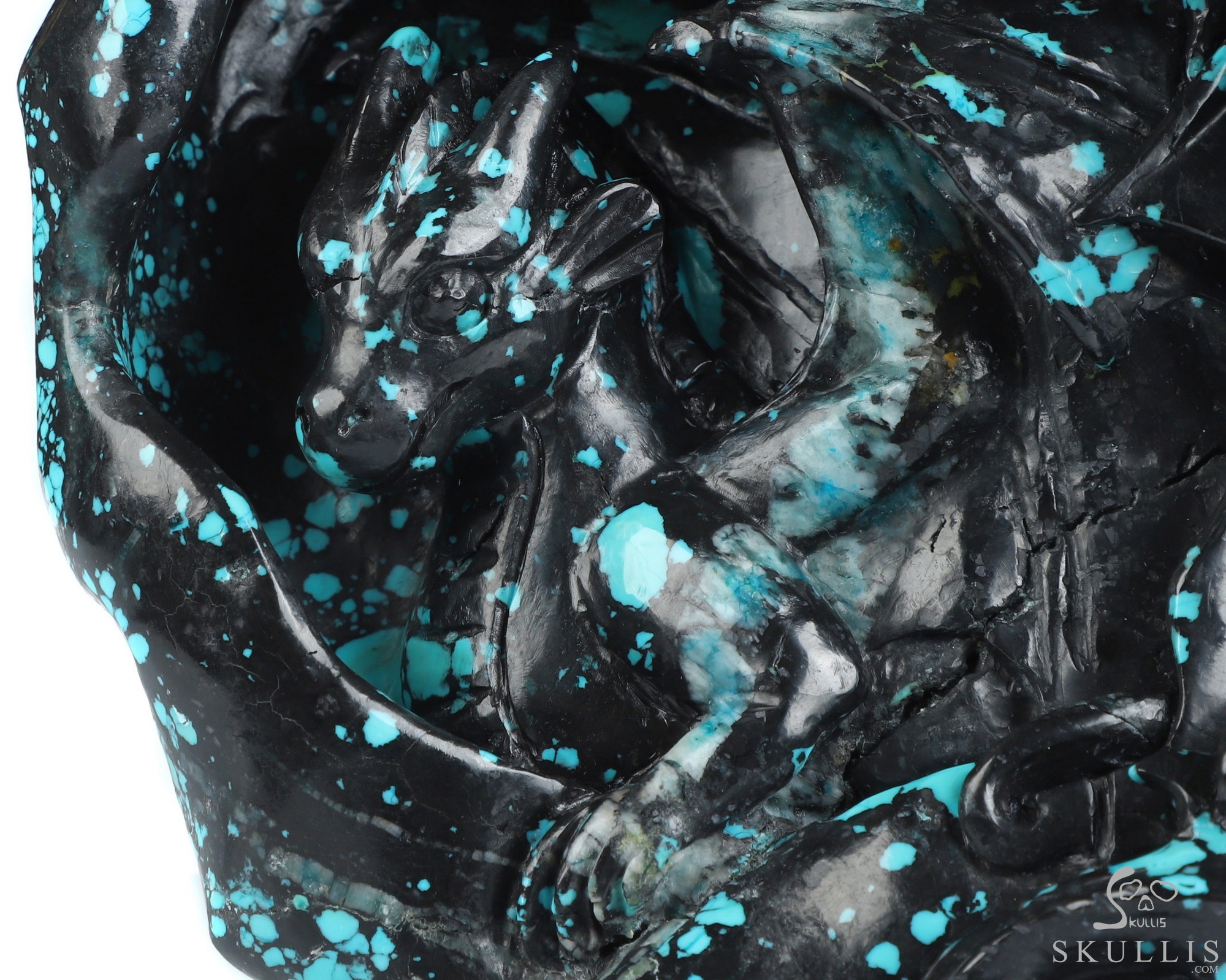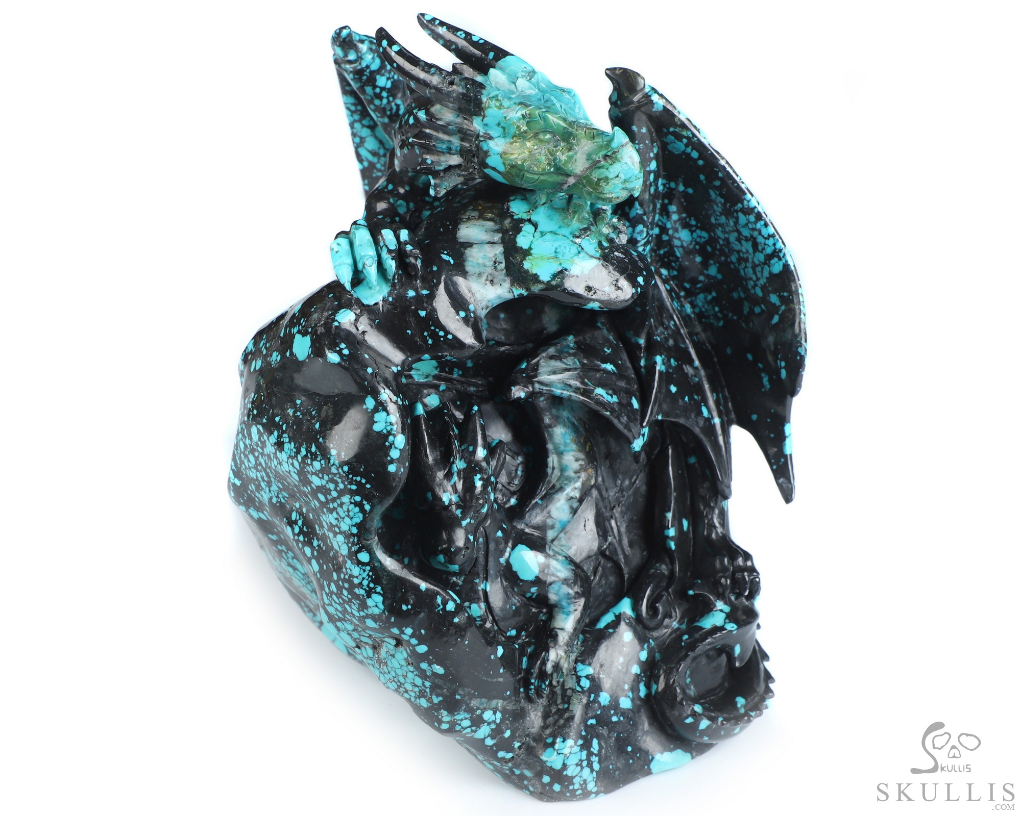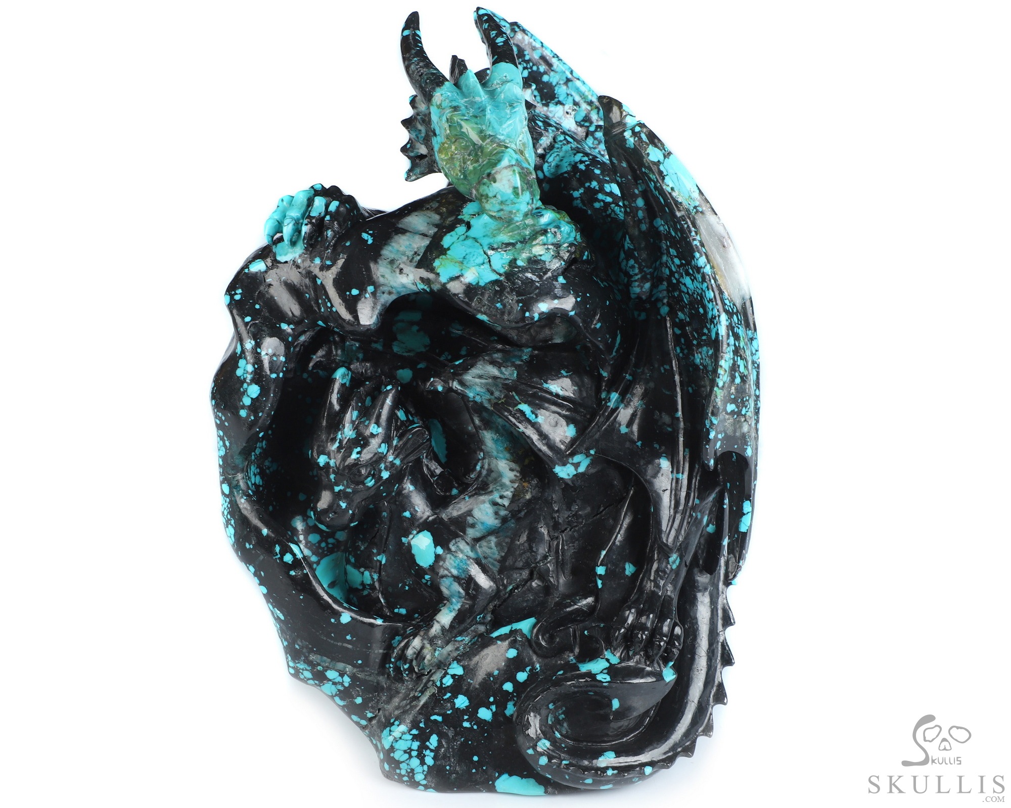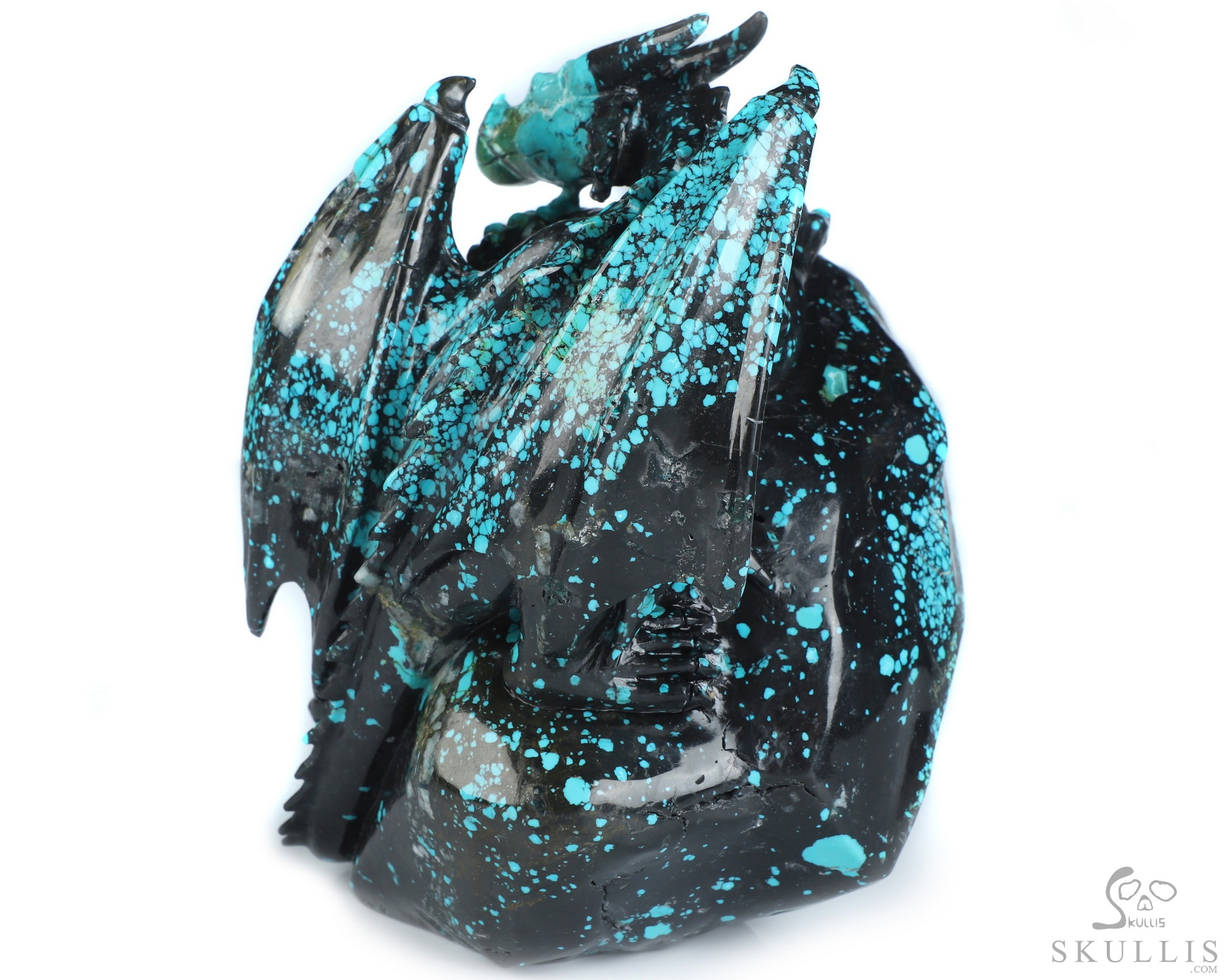 6.3" Turquoise Hand Carved Crystal Dragons Fine Art Sculpture, Crystal Healing