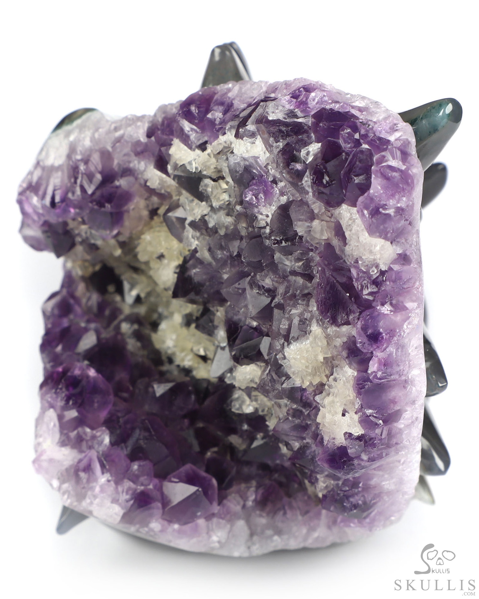 4.8" Agate Amethyst Geode Hand Carved Crystal Skull, Realistic, Crystal Healing