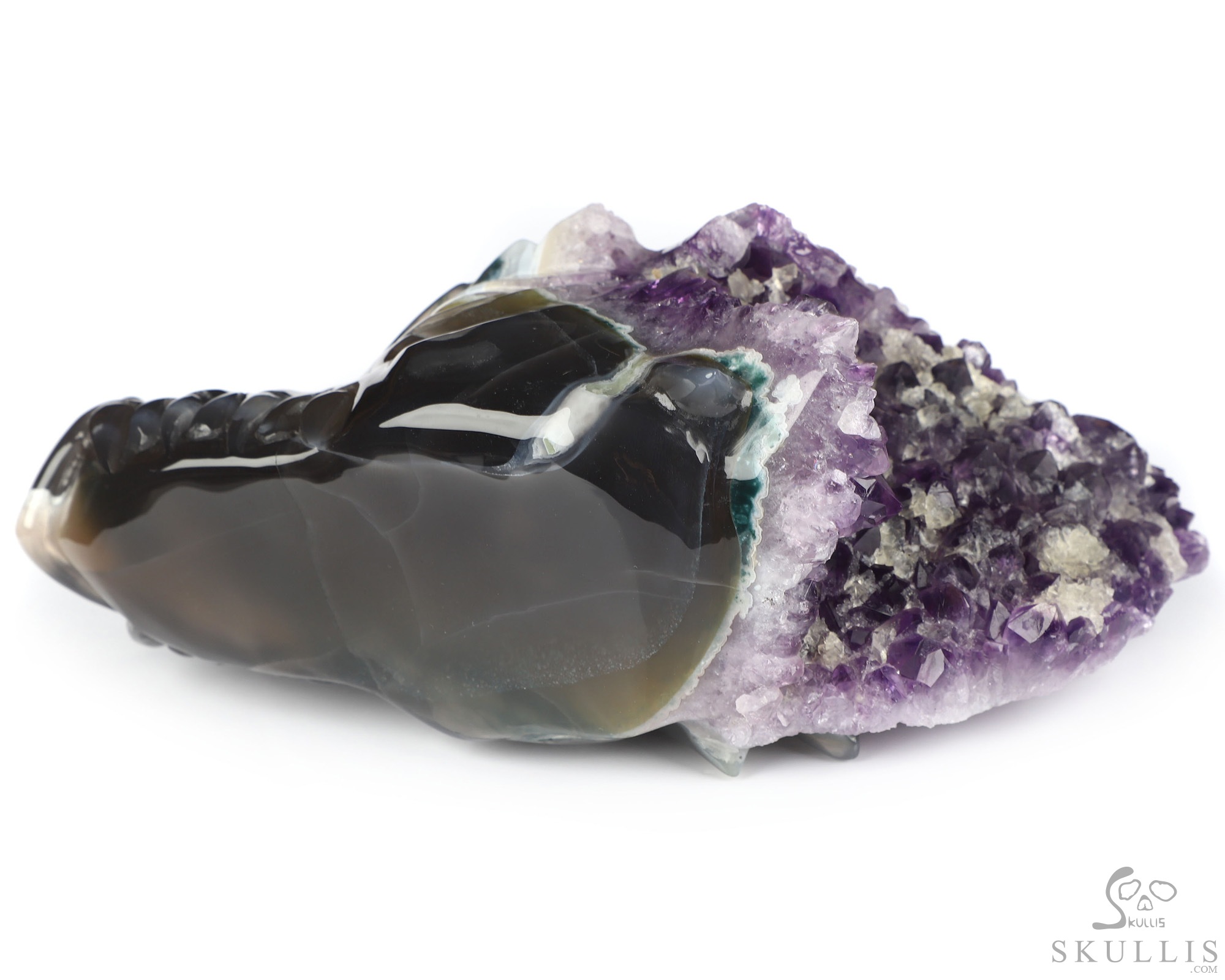 12.1" Agate Amethyst Geode Hand Carved Crystal Skull and Snail Sculpture, Crystal Healing