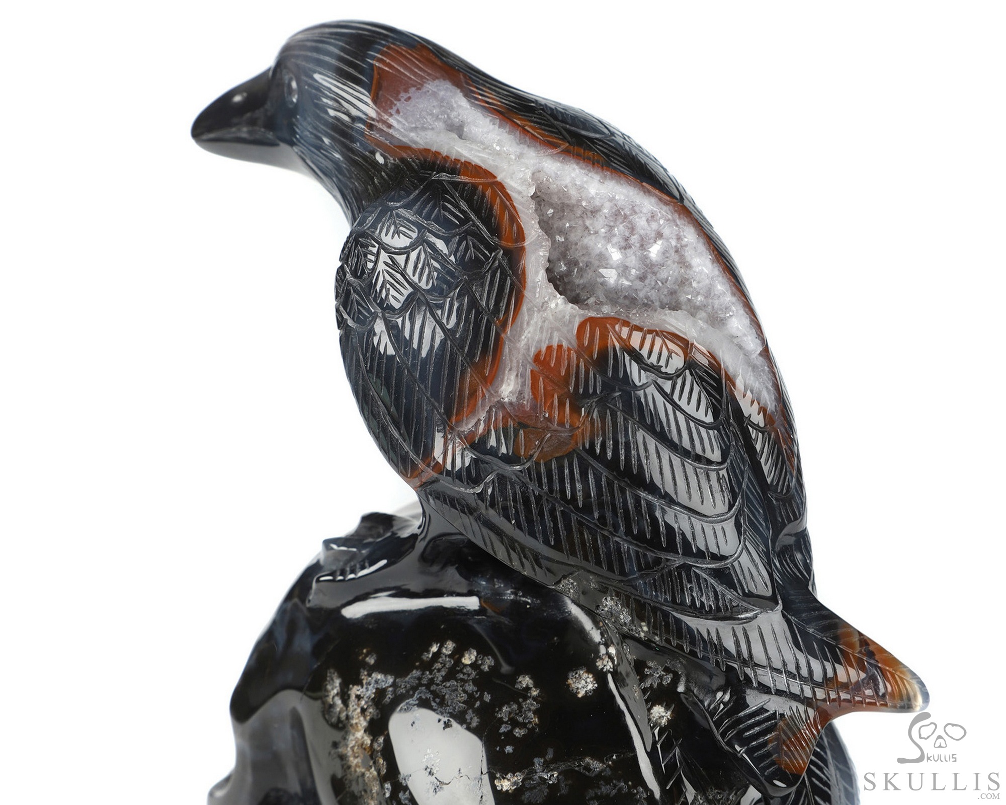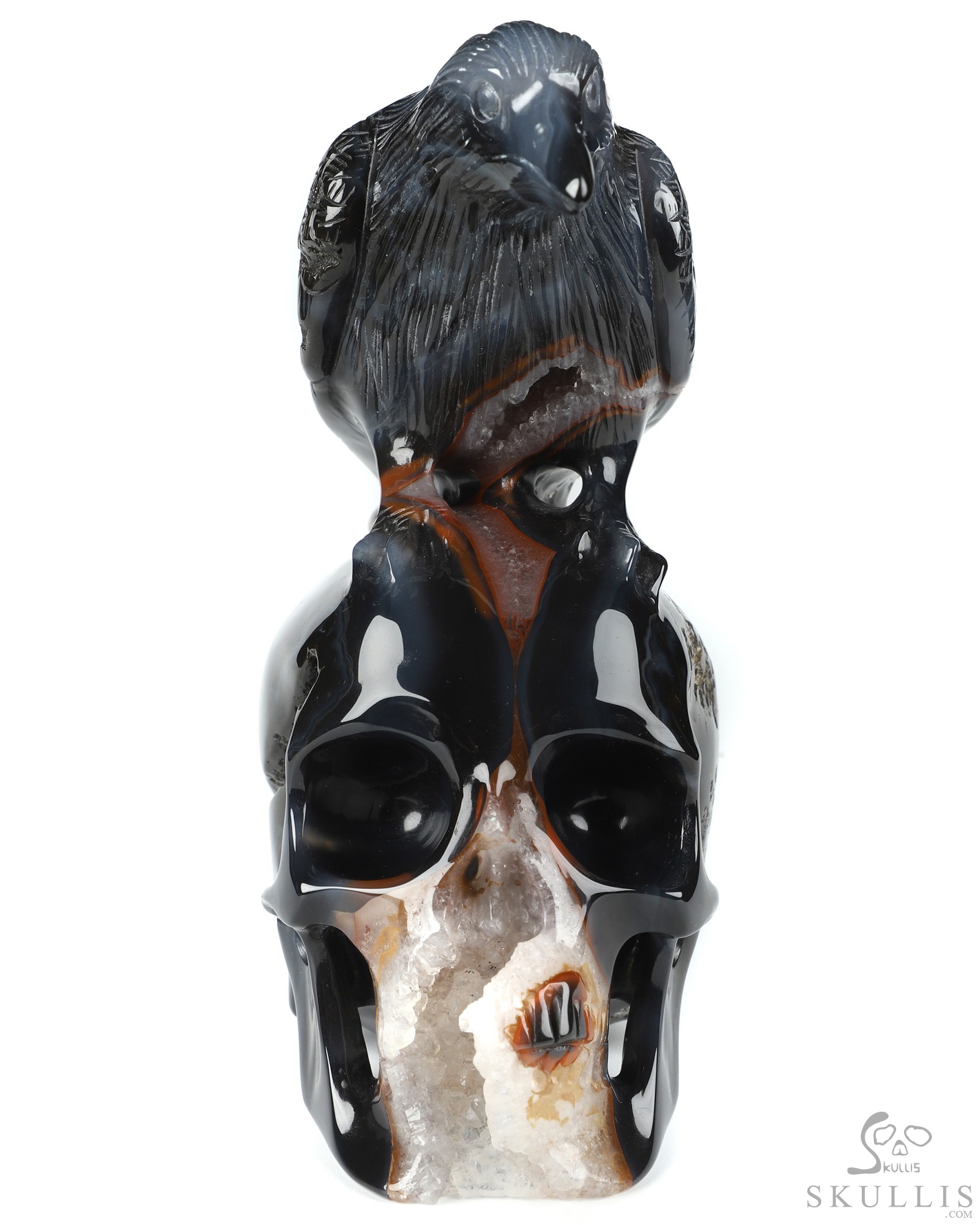 6.5" Premium Brazilian Agate Carved Crystal Skull & Raven Sculpture, Crystal Healing