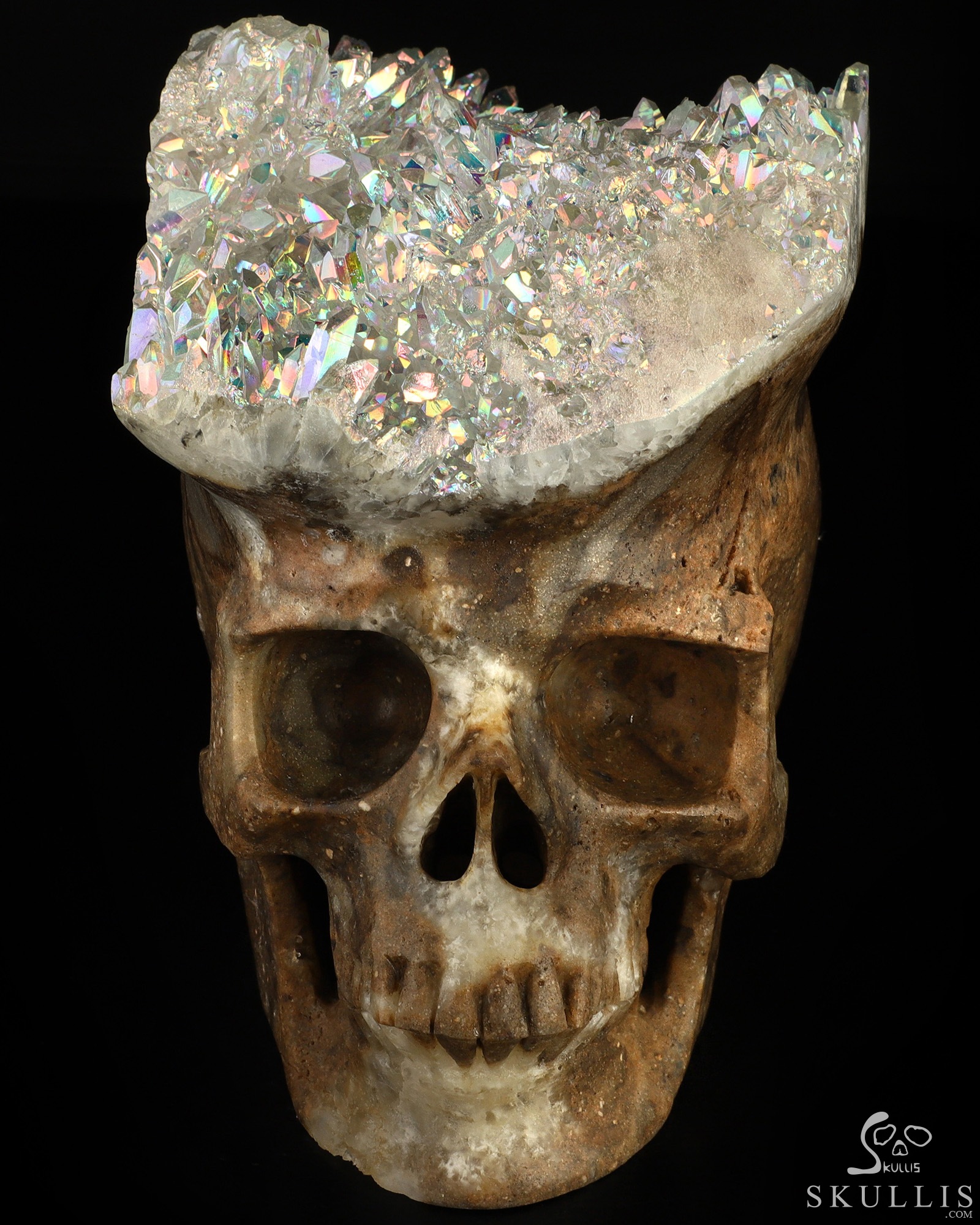 Lifesized 6.7" Rainbow Aura Quartz Druse Carved Crystal Skull, Super Realistic, Healing