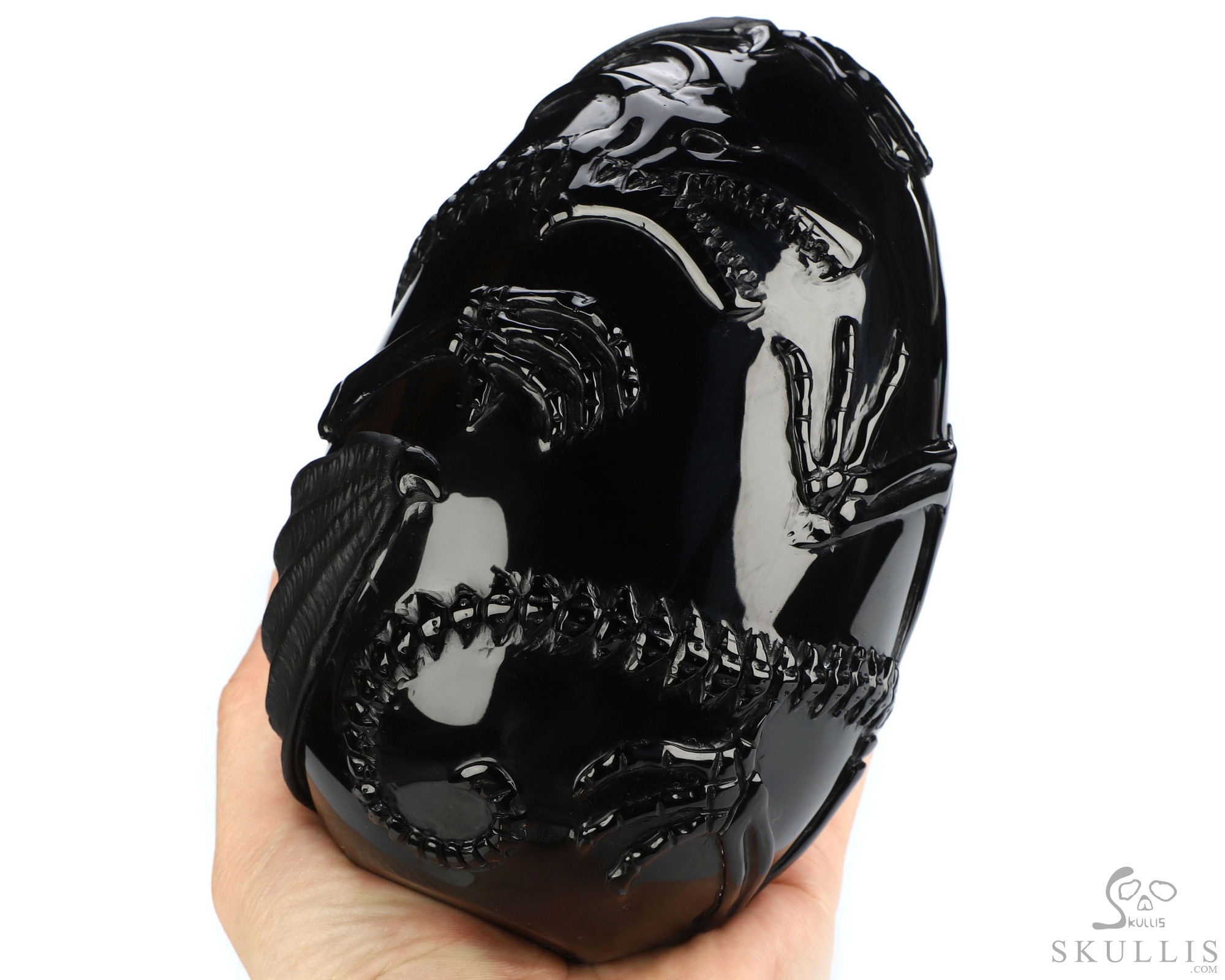Giant 8.3" Black Obsidian Carved Crystal Mask Skull Sculpture, Crystal Healing