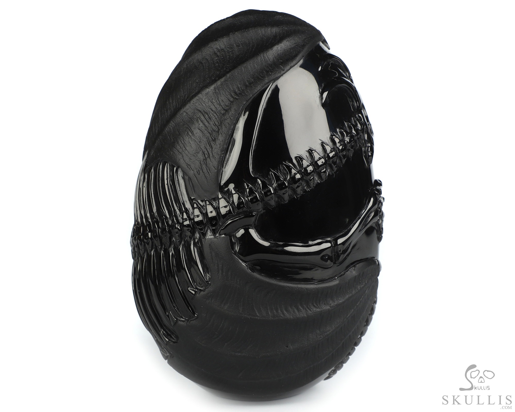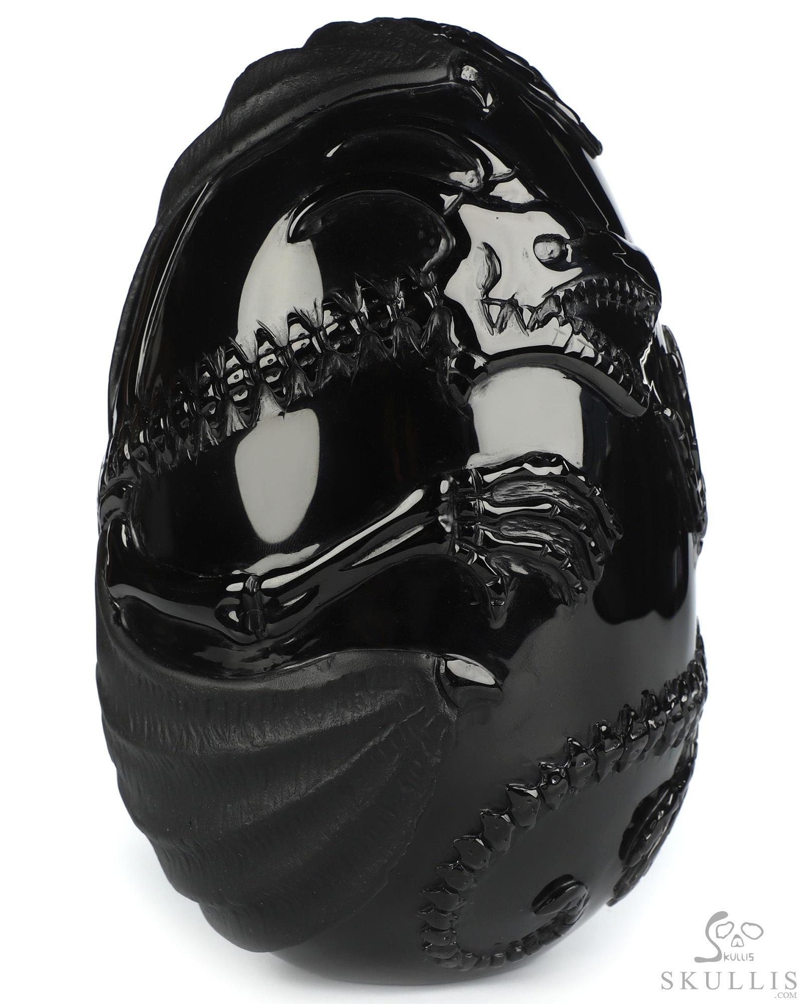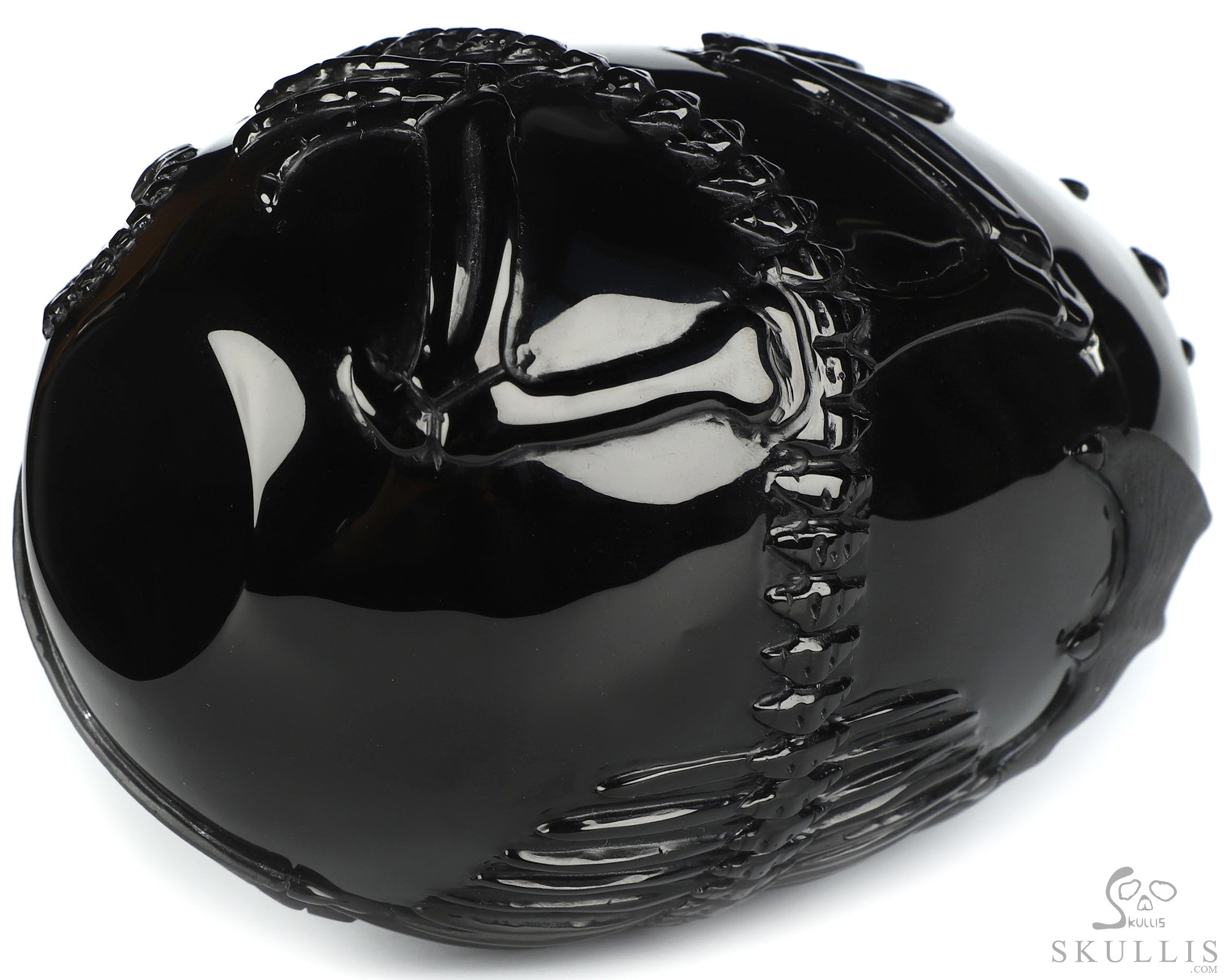 7.5" Black Obsidian Carved Crystal Skull with snail, Crystal Healing