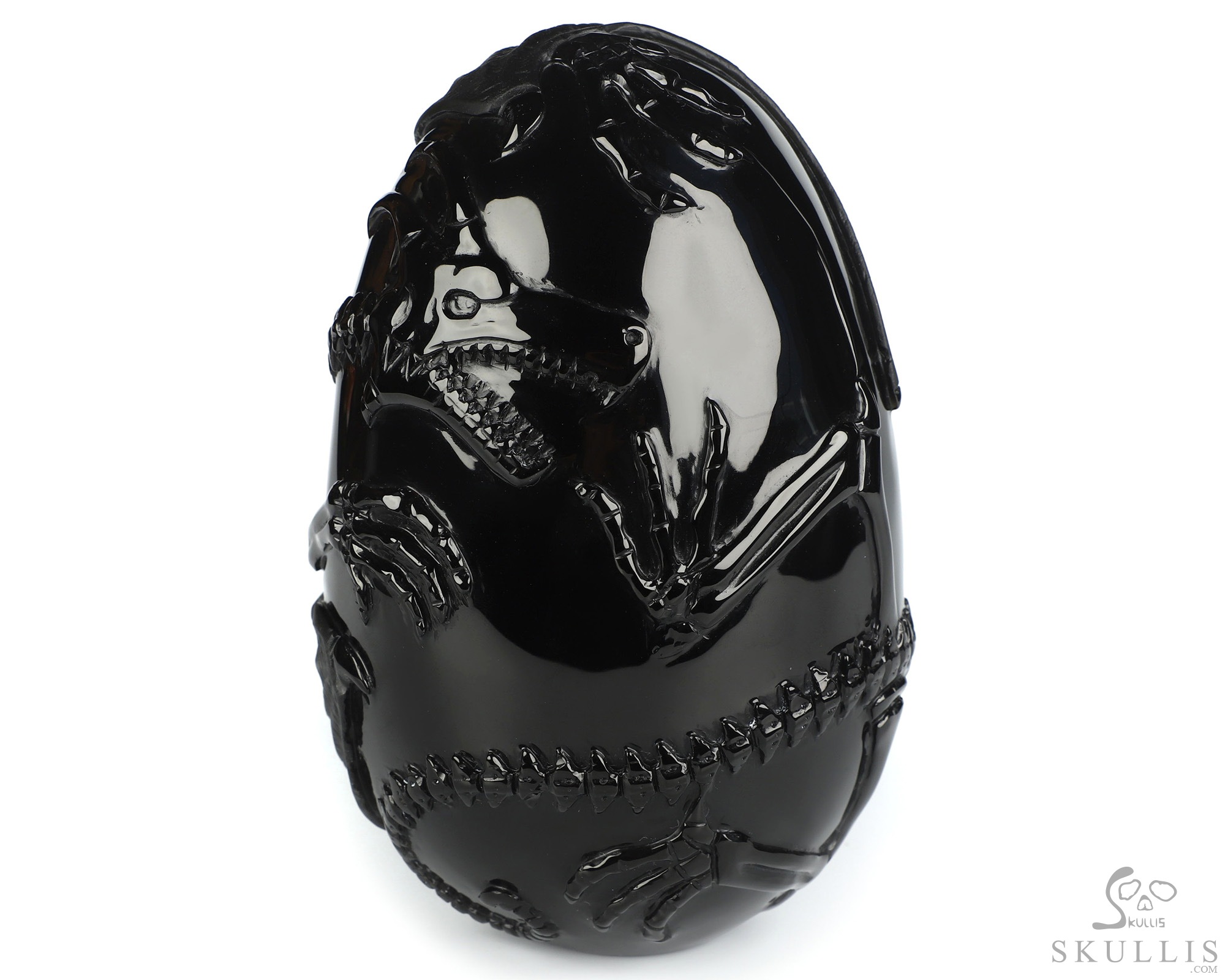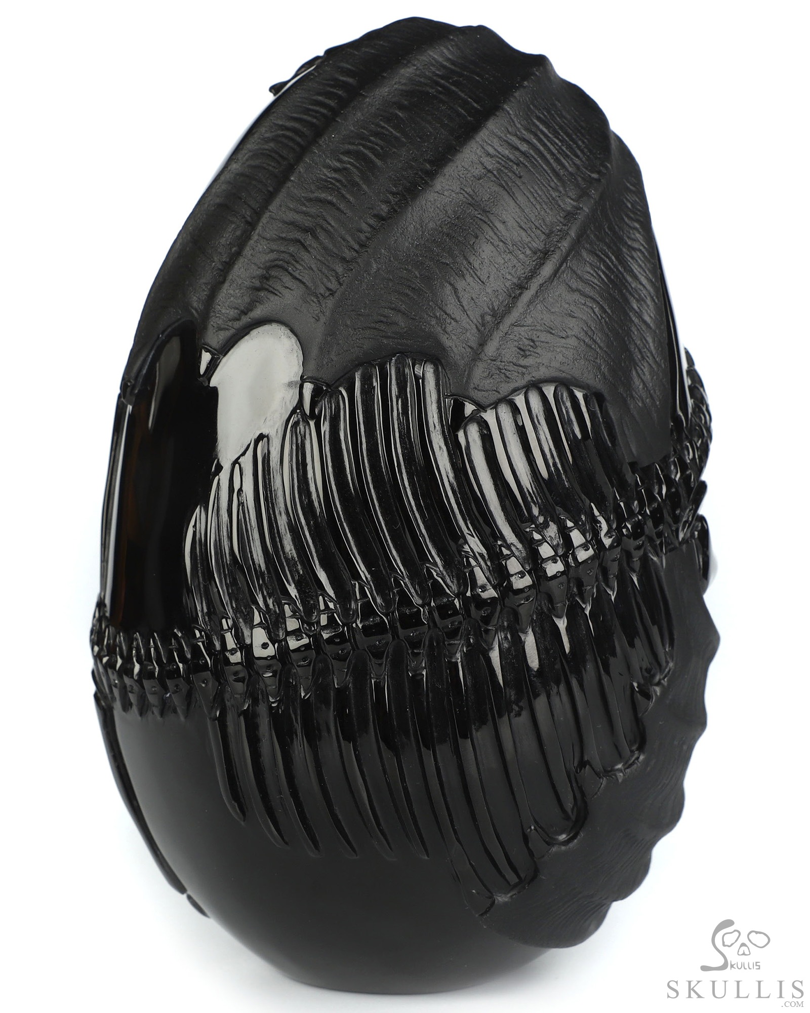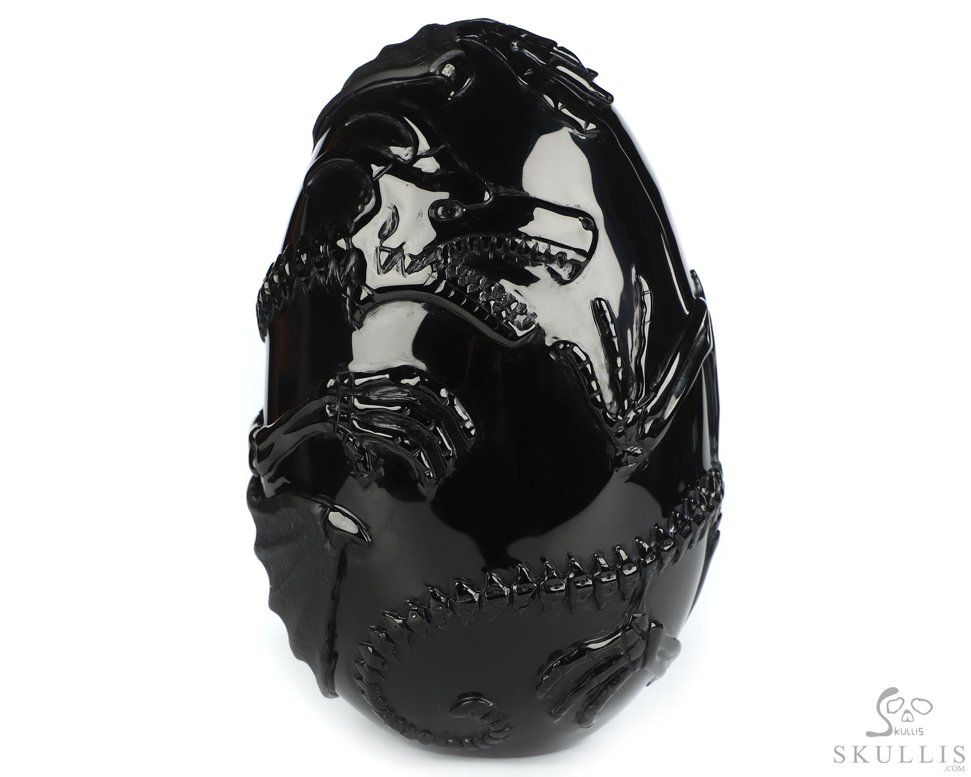 7.5" Black Obsidian Carved Crystal Skull with snail, Crystal Healing