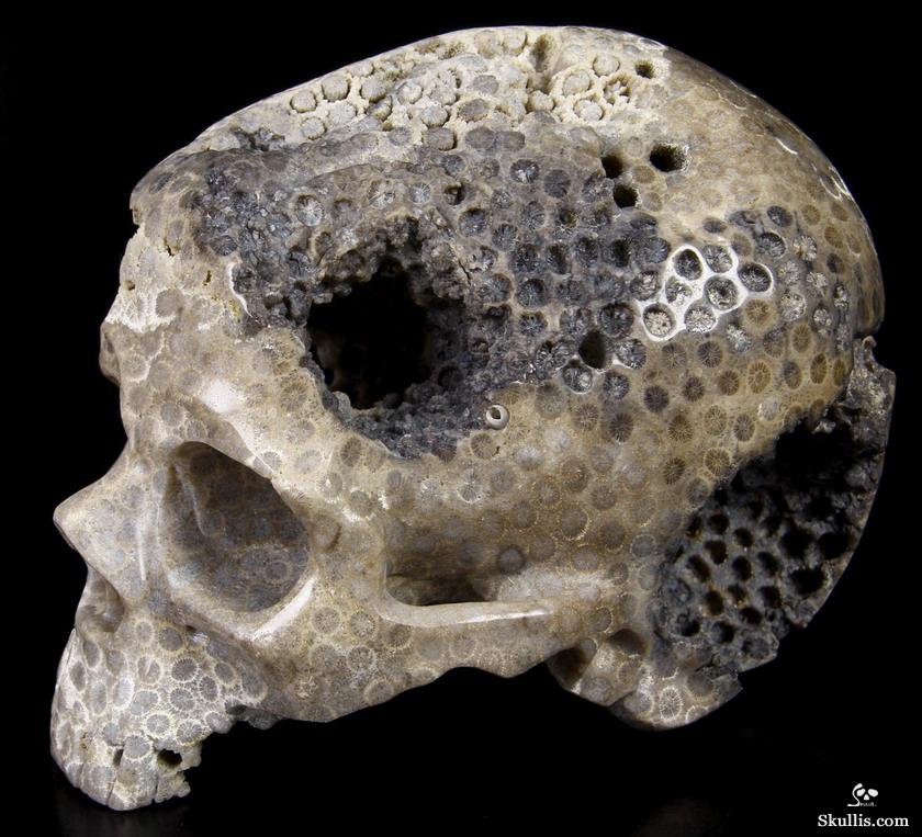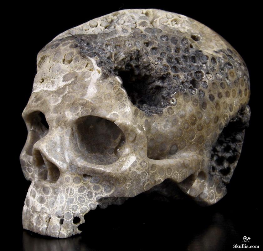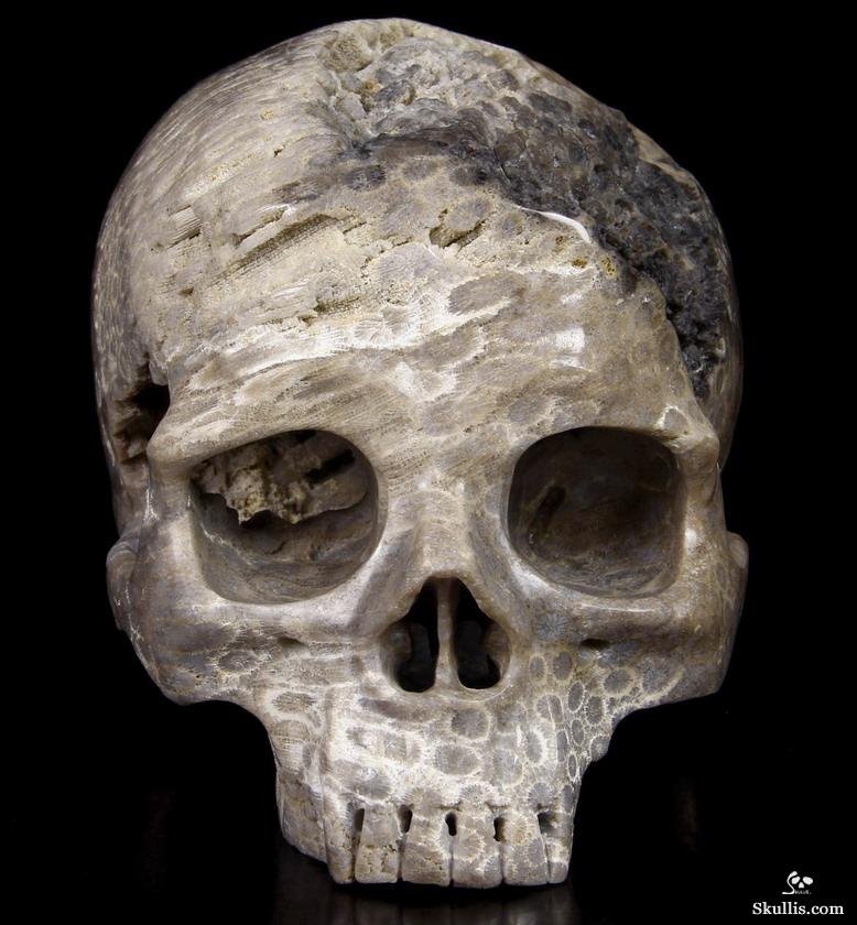 Lifesized 6.9" Coral Fossil Carved Crystal Skull,Super Realistic, Crystal Healing