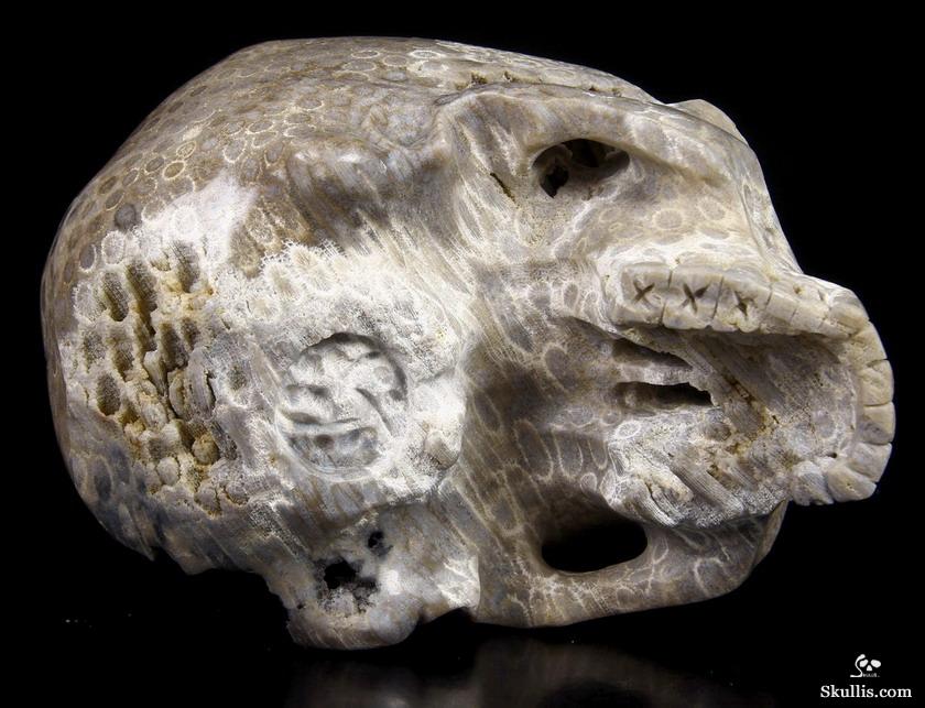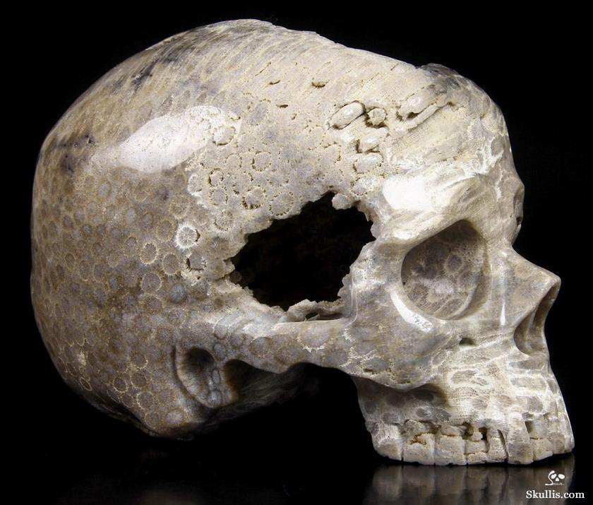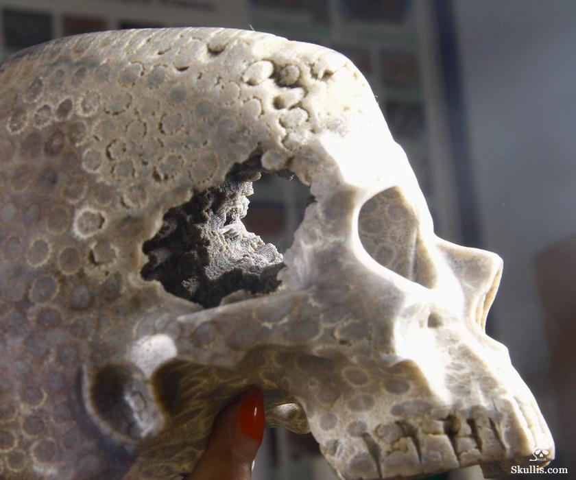 5.1" Coral Fossil Hand Carved Crystal Skull, Super Realistic, Crystal Healing