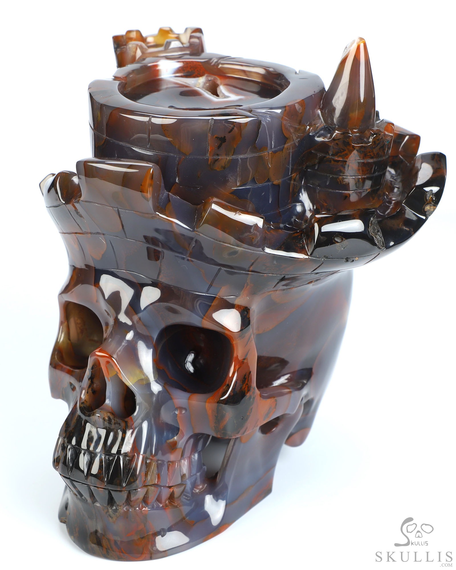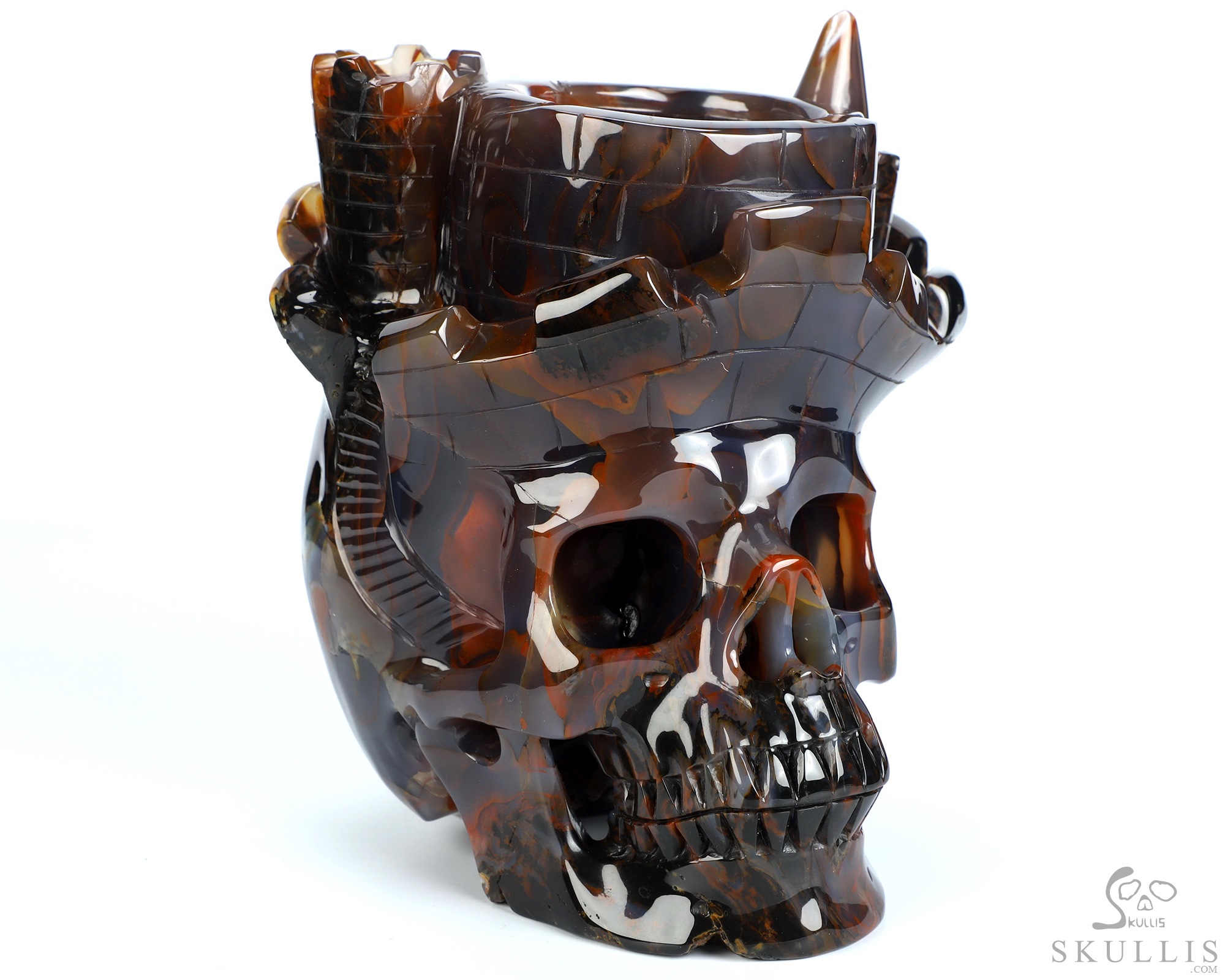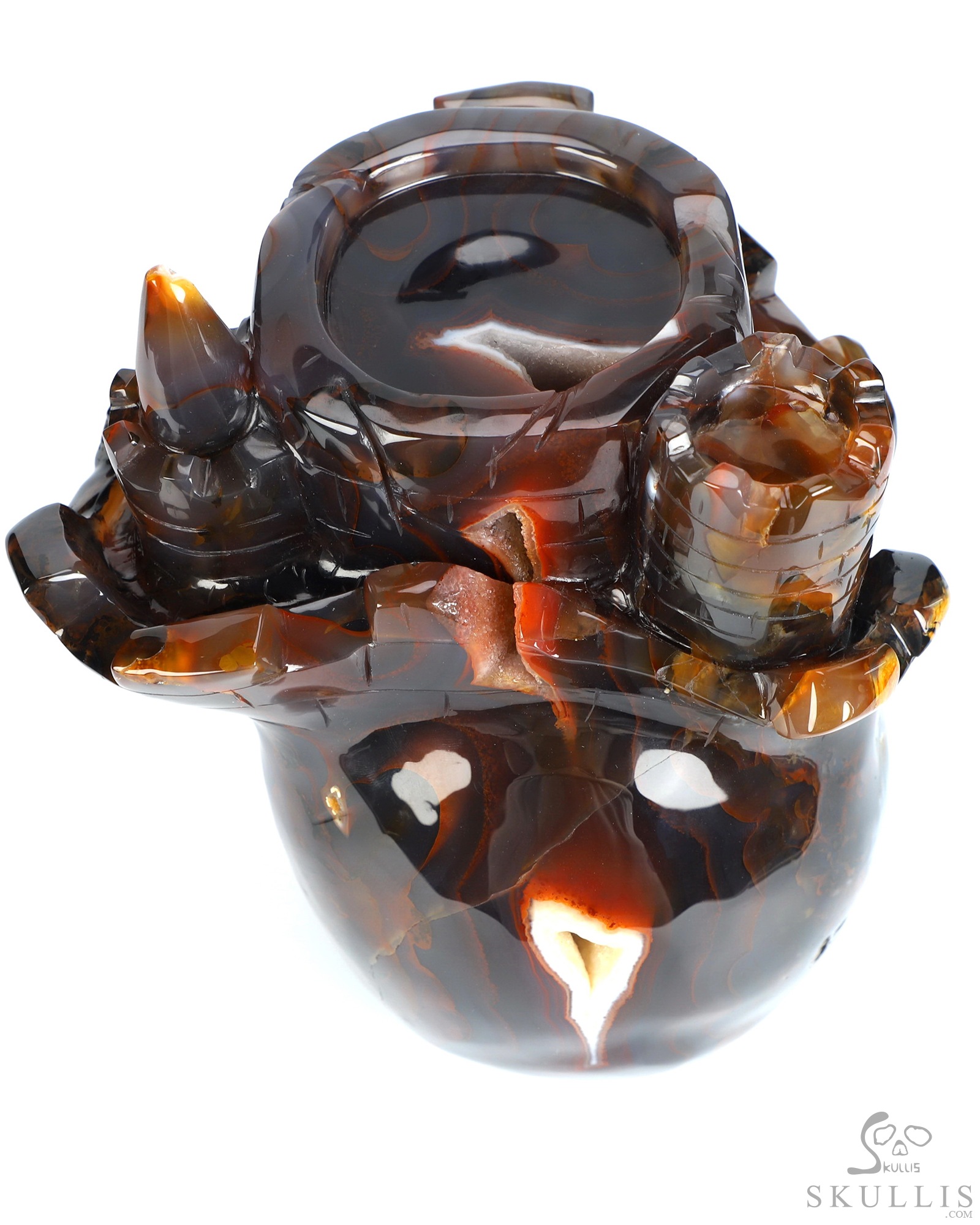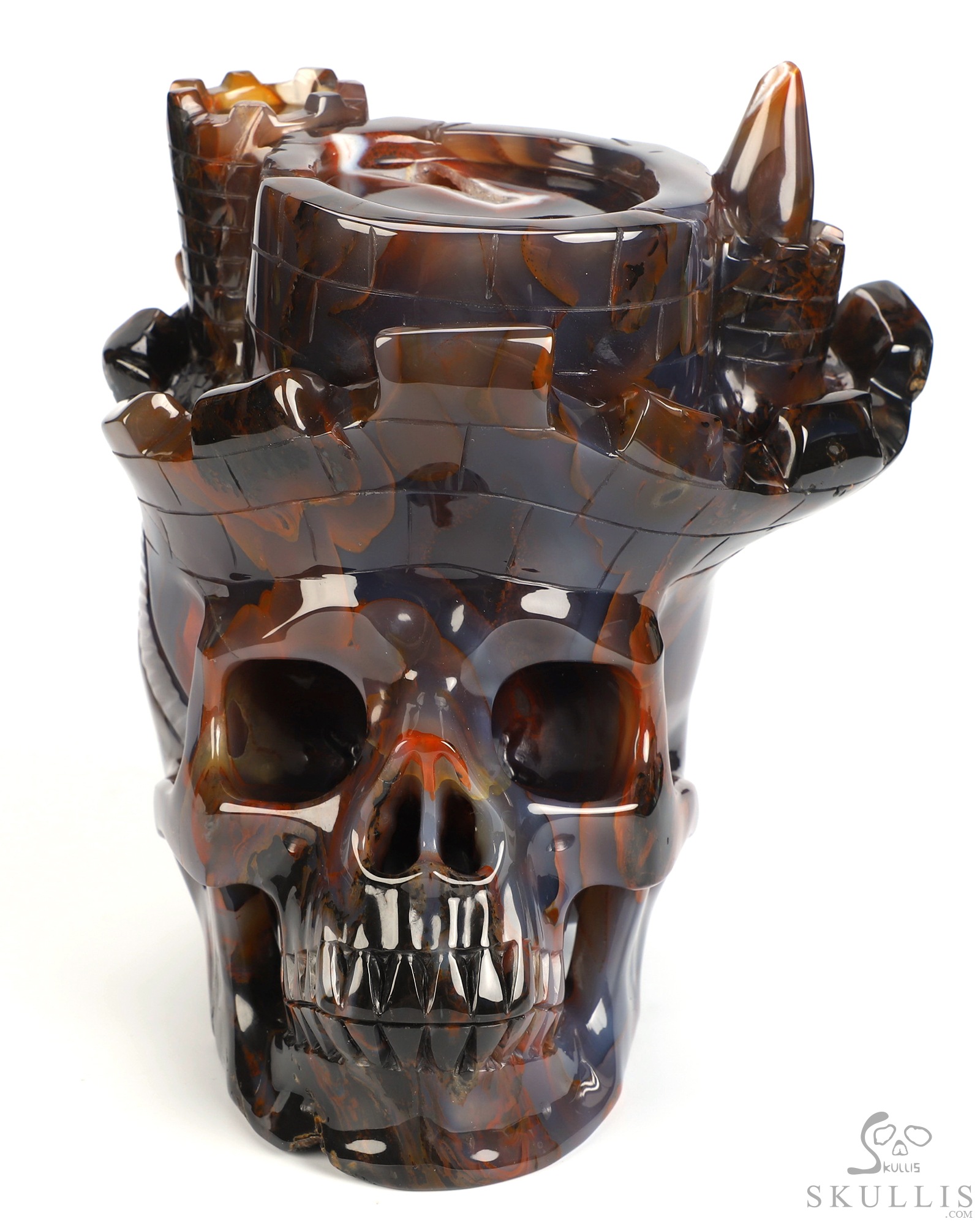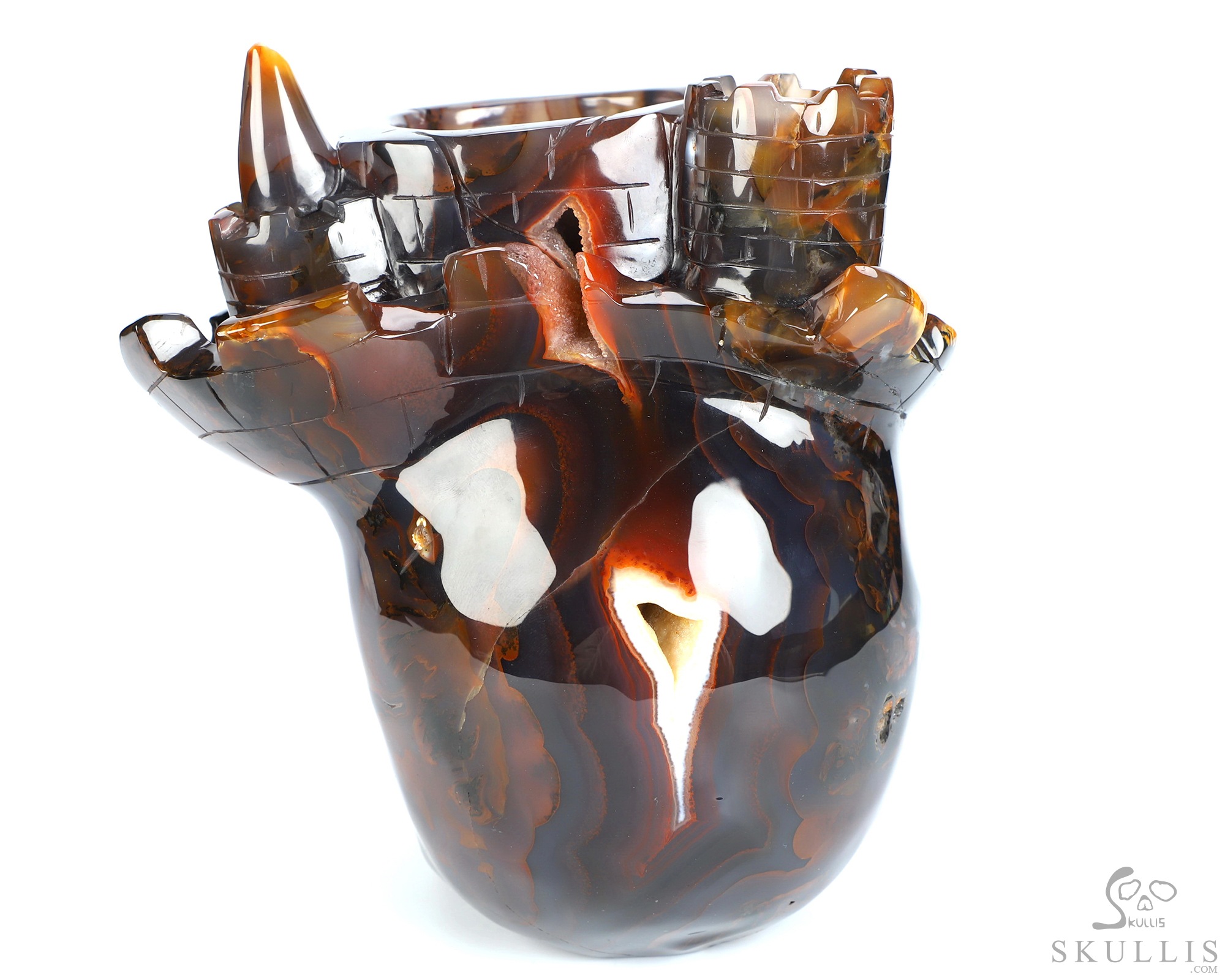 6.6" Premium Brazilian Agate Hand Carved Crystal Skull and Castle Fine Art Sculpture, Crystal Healing