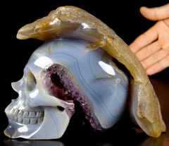 Nice Unique Huge 5.6" Agate Geode Carved Crystal Skull