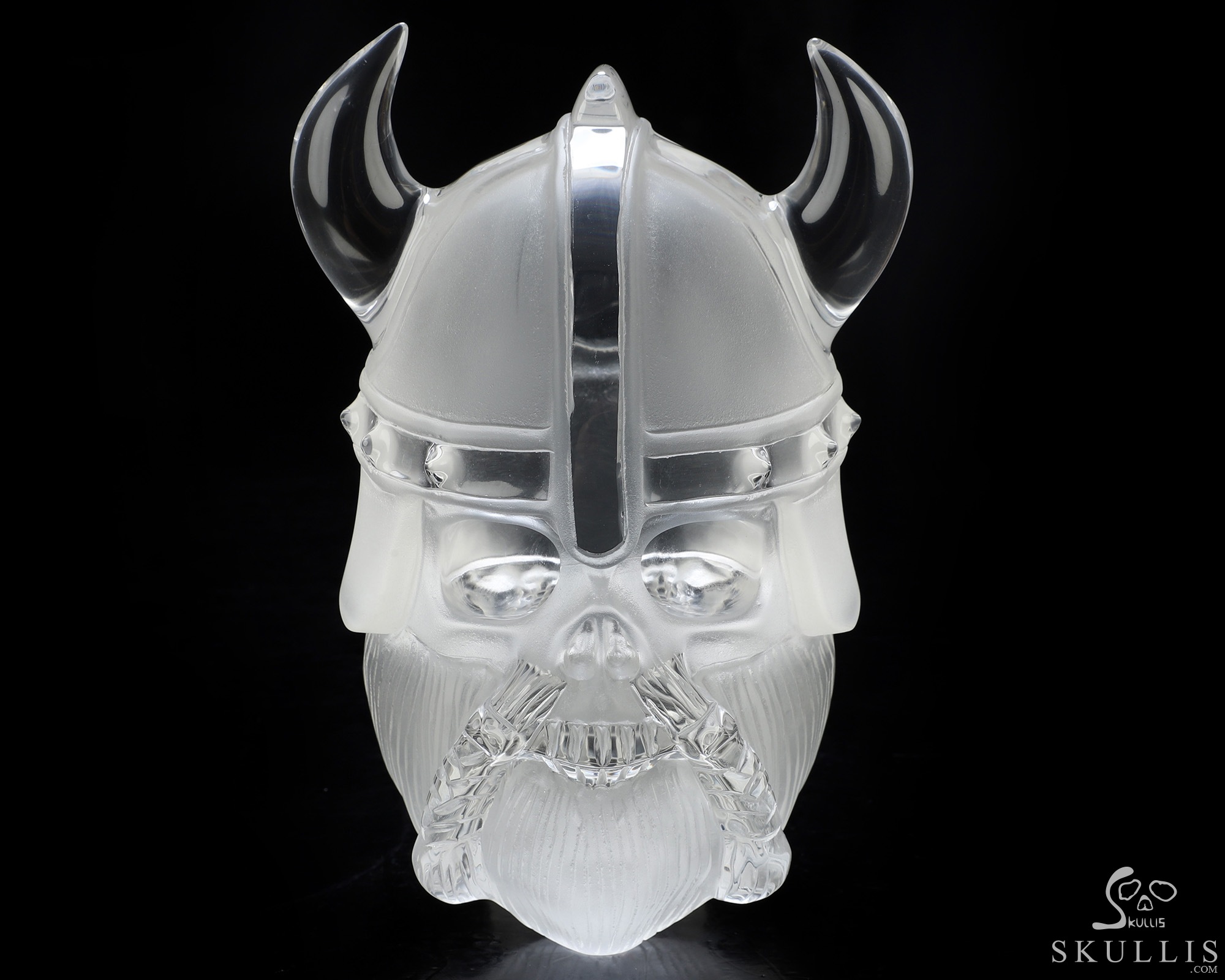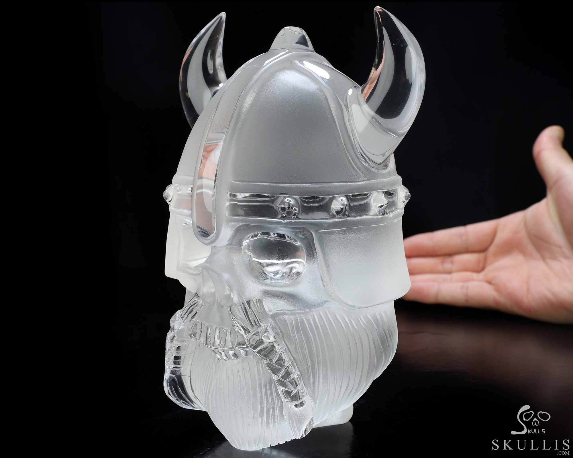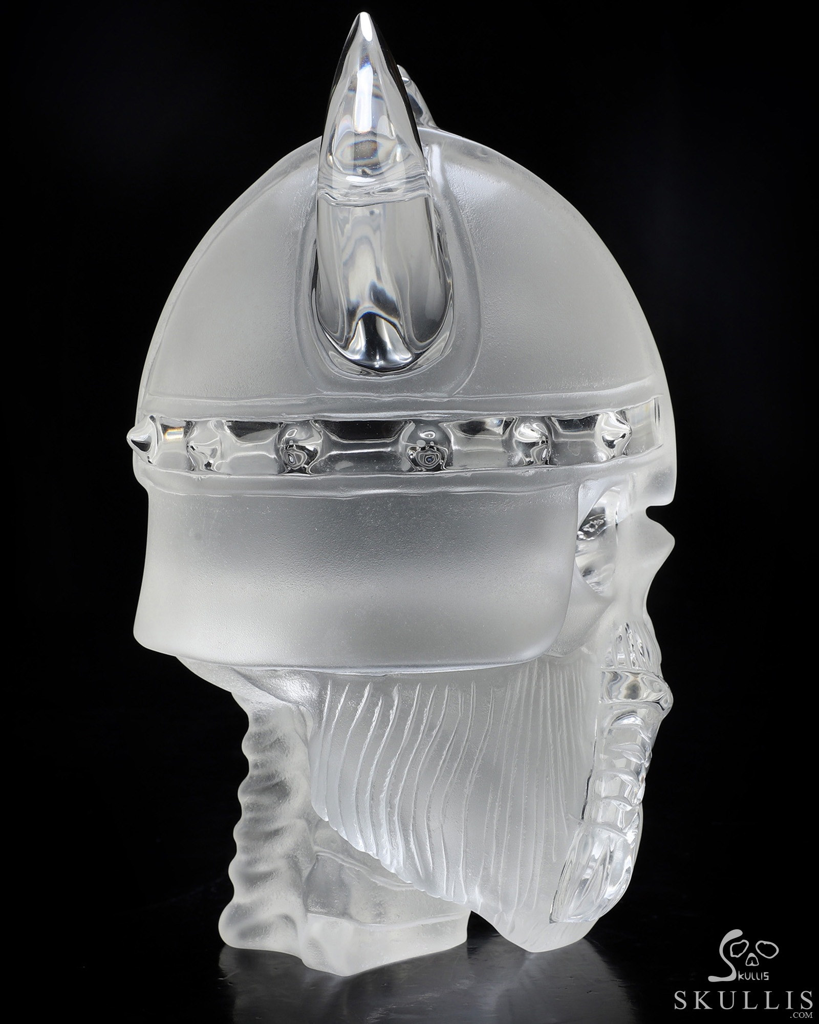 6.7" K9 Crystal Hand Carved Viking Crystal Skull Fine Art Sculpture, Crystal Healing