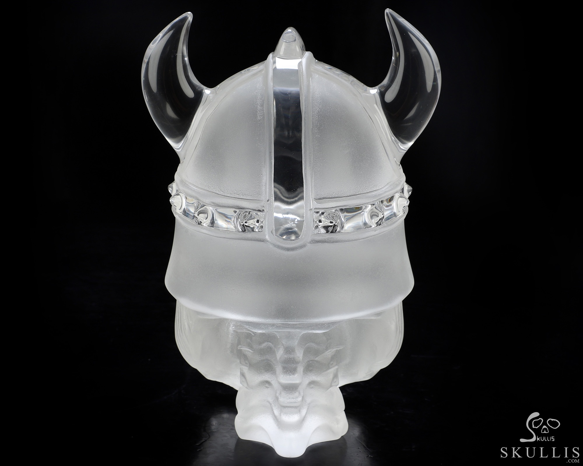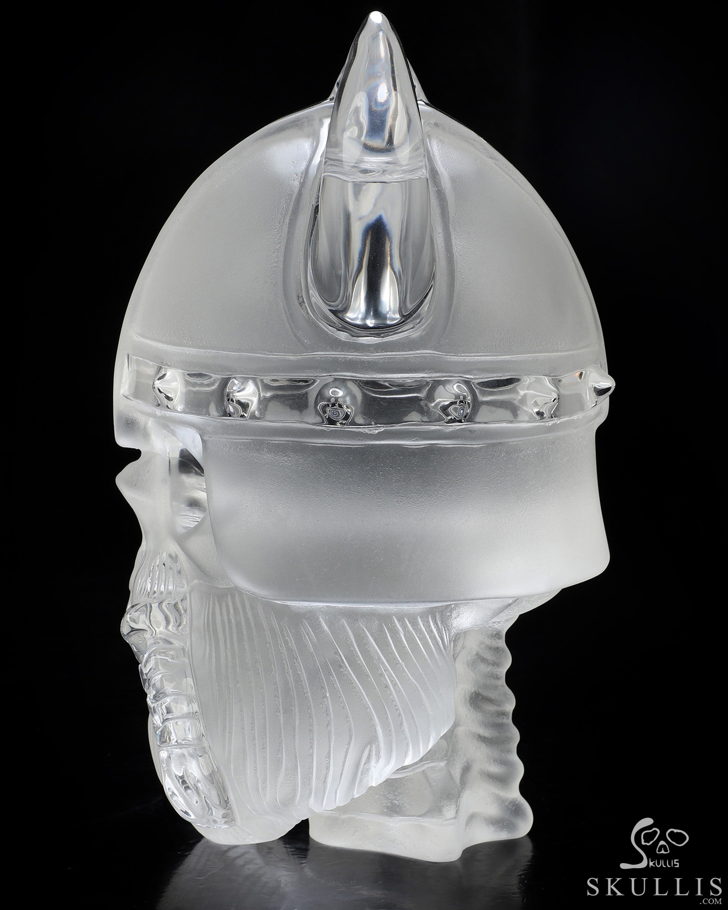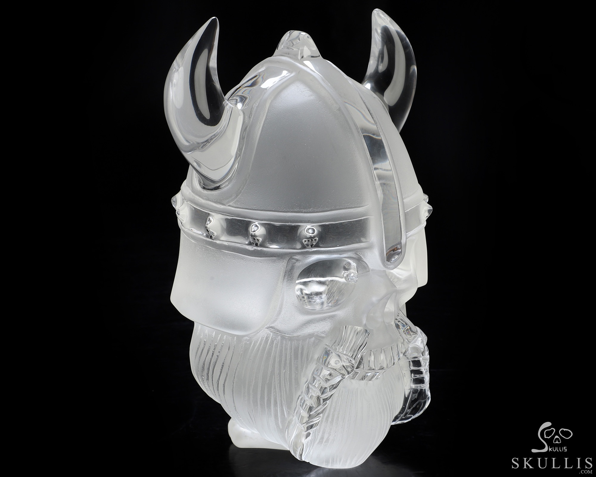 6.7" K9 Crystal Hand Carved Viking Crystal Skull Fine Art Sculpture, Crystal Healing