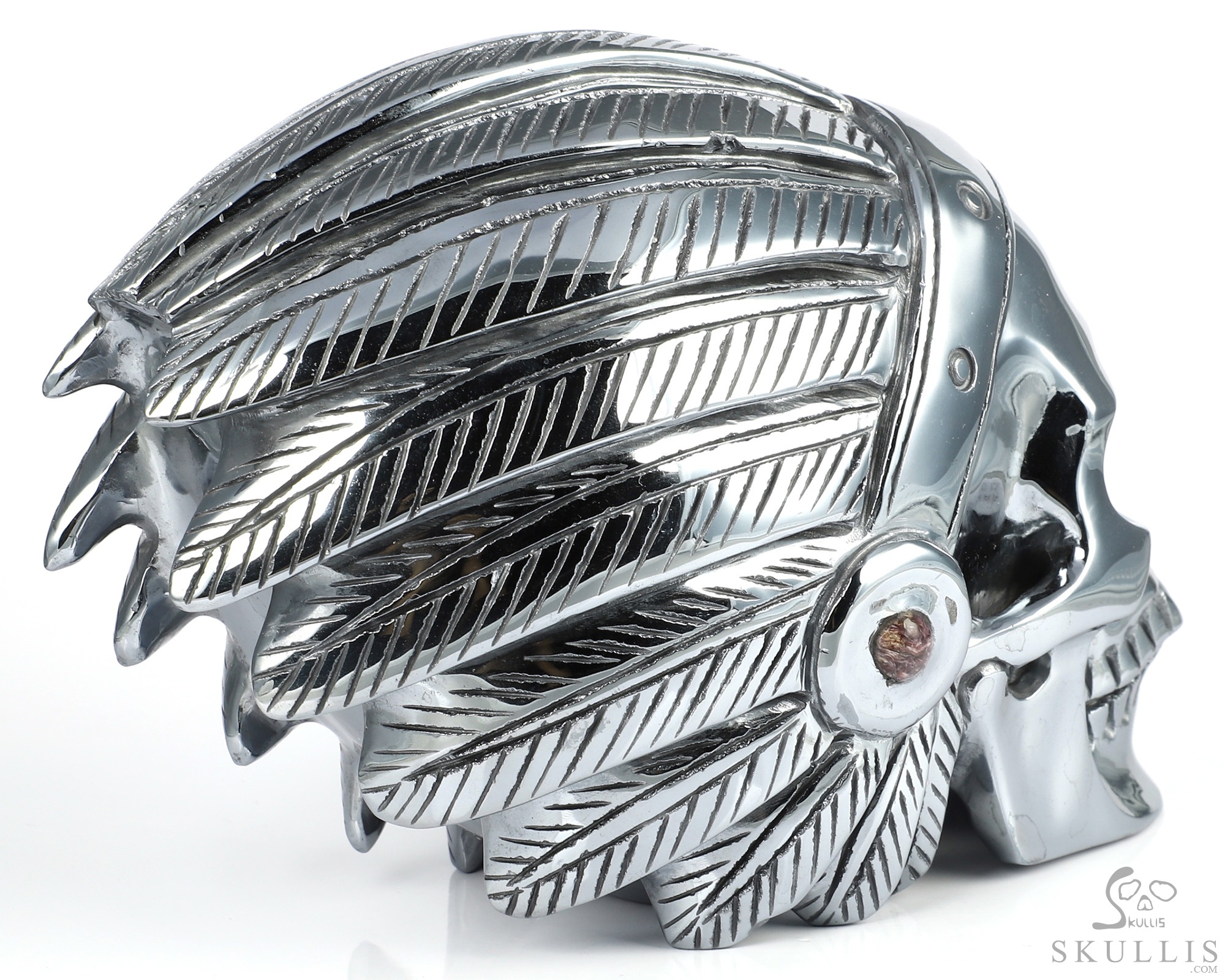 6.7" Tera-hertz Hand Carved Crystal Indian Skull Sculpture, Crystal Healing