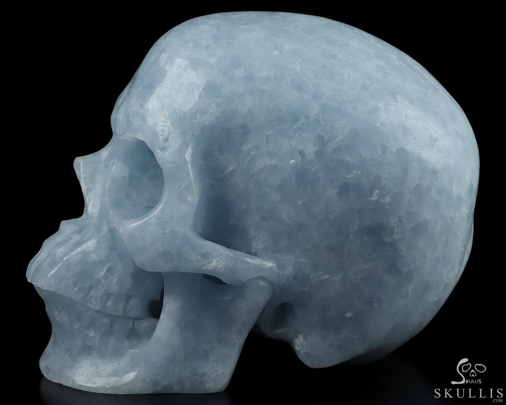 Lifesized 6.6" Blue Calcite Carved Crystal Skull,Super Realistic, Crystal Healing